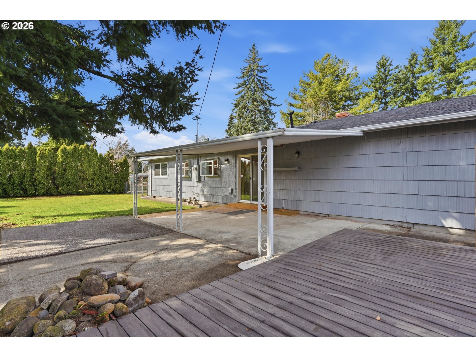 Cozy Corner Ranch Style Home: Discover the charm of this 3-bedroom, 1-bath ranch-style home, perfectly designed for easy one-level living. The warm living room features a wood-burning fireplace, creating an inviting, open flow into the dining and kitchen areas. Enjoy the convenience of a dedicated interior laundry room with washer/dryer hookups. Hardwood flooring beneath the carpets in the living room, hallway, and 3 bedrooms. Step outside to a private, fenced backyard featuring a covered patio and a nice-sized deck—the perfect setup for morning coffee or your first housewarming BBQ. Additional backyard tool shed for yard tools & equipment. Oversized garage with lots of built-in shelving, providing ample space for hobbies, projects, or extra storage. Additional amenities include new roof, new furnace and new stainless-steel dishwasher. Bathroom is fully remodeled with heated flooring. This opportunity awaits your creative vision-touches. Lots of potential for custom updates. A must see!!