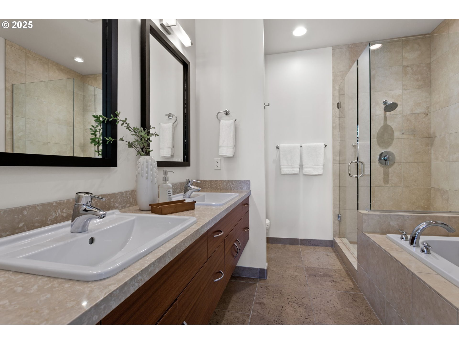 Welcome to 1688 NW Riverscape St., a meticulously updated townhouse nestled in the vibrant heart of NW Portland. This exceptional property offers a thoughtfully designed living space, featuring three spacious primary bedrooms, each with its own en-suite bathroom, and an additional half bath for guests.The freshly painted interiors, refinished hardwood floors and new carpet exude a sense of modern elegance and warmth. Enjoy the serene river views from the private patio off the primary bedroom, providing a perfect retreat for relaxation. The two-car garage offers ample storage and convenience. Situated in a walkable neighborhood, this home provides easy access to local amenities, dining, and entertainment. Experience the perfect blend of urban living and natural beauty in this remarkable residence.