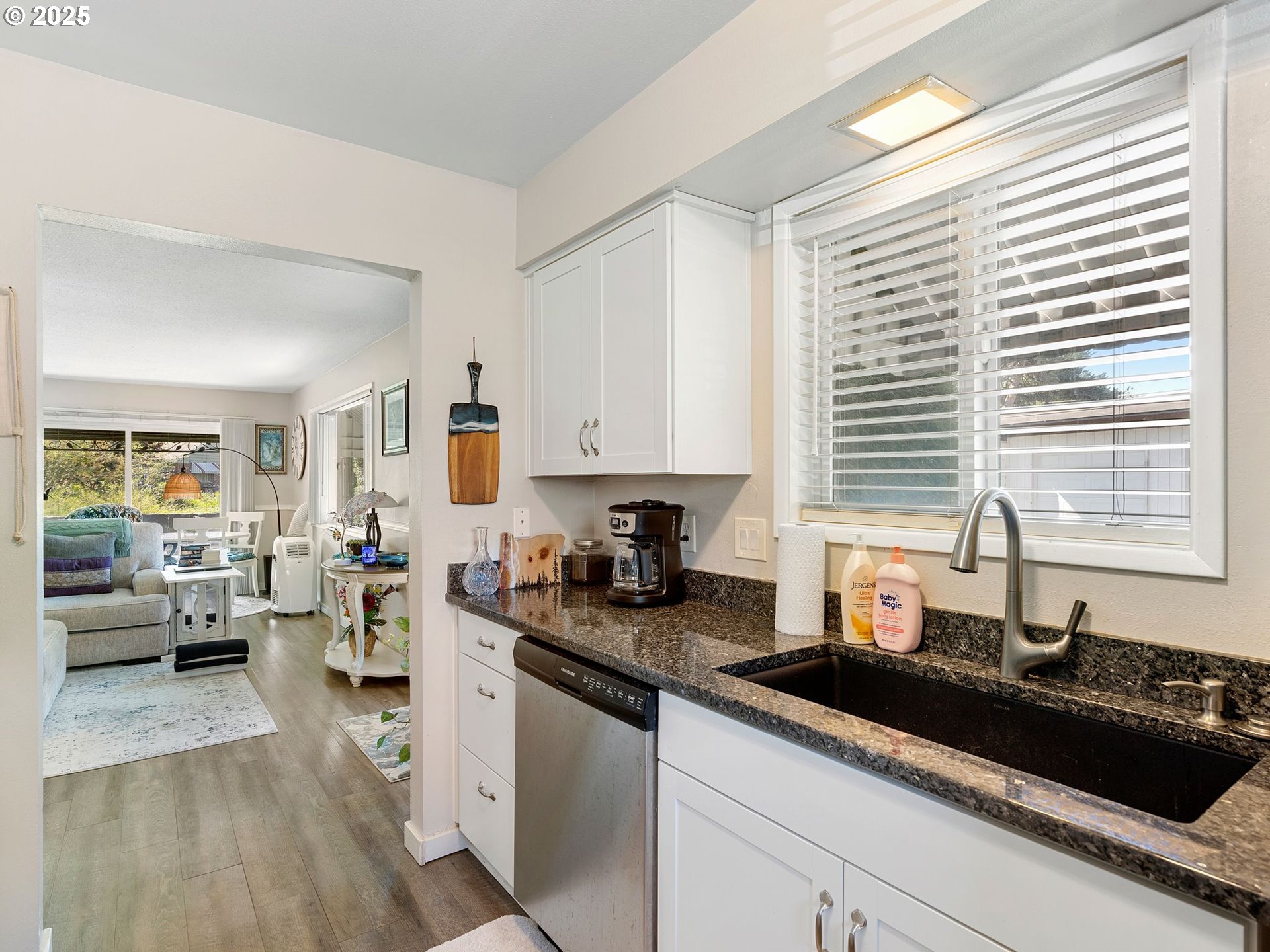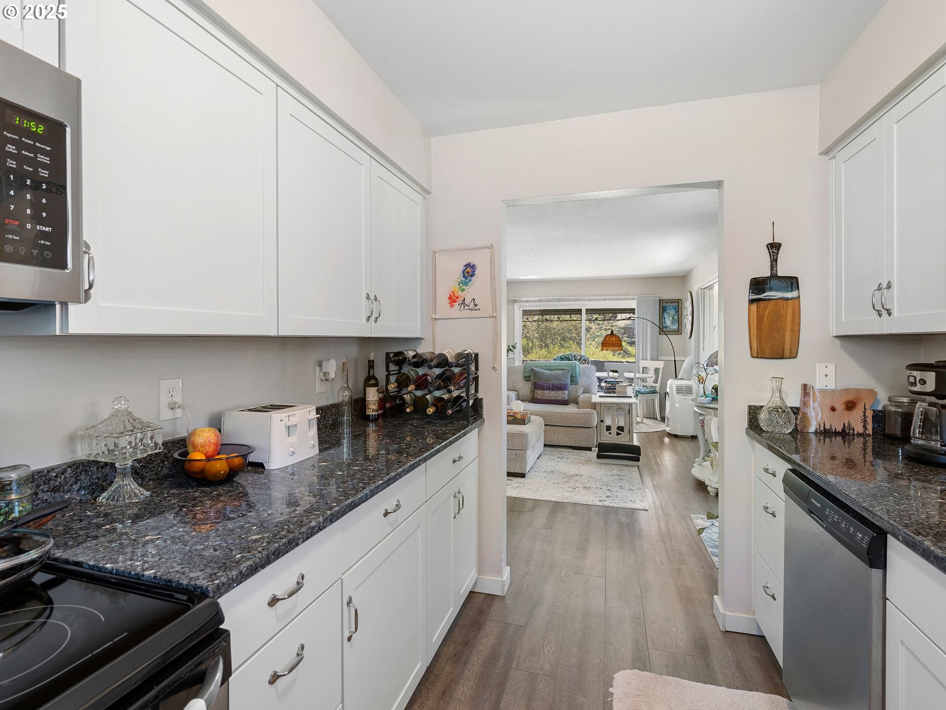 Welcome to effortless single-level living in this beautifully updated ground-floor end unit! Bathed in natural light and offering extra privacy, this home is truly move-in ready.Step inside and discover stylish, newer luxury vinyl plank flooring that flows seamlessly throughout the entire space. The fresh, contemporary interior paint provides a perfect backdrop for any decor. The heart of this home is the stunningly renovated kitchen, boasting gleaming granite countertops and ample cabinet space, making it a joy to cook and entertain in.The open-concept living and dining area connects directly to a private patio, extending your living space outdoors for morning coffee or evening relaxation. Enjoy the convenience of no stairs and easy access from your designated parking space.Live a low-maintenance lifestyle with the HOA covering water, sewer, garbage, exterior maintenance, and landscaping. Plus, enjoy fantastic community amenities, including a sparkling swimming pool and clubhouse.Ideally located with great access to the nearby golf course, parks, shopping, dining, and public transportation. Don’t miss this rare opportunity for an updated, accessible, and perfectly positioned home!