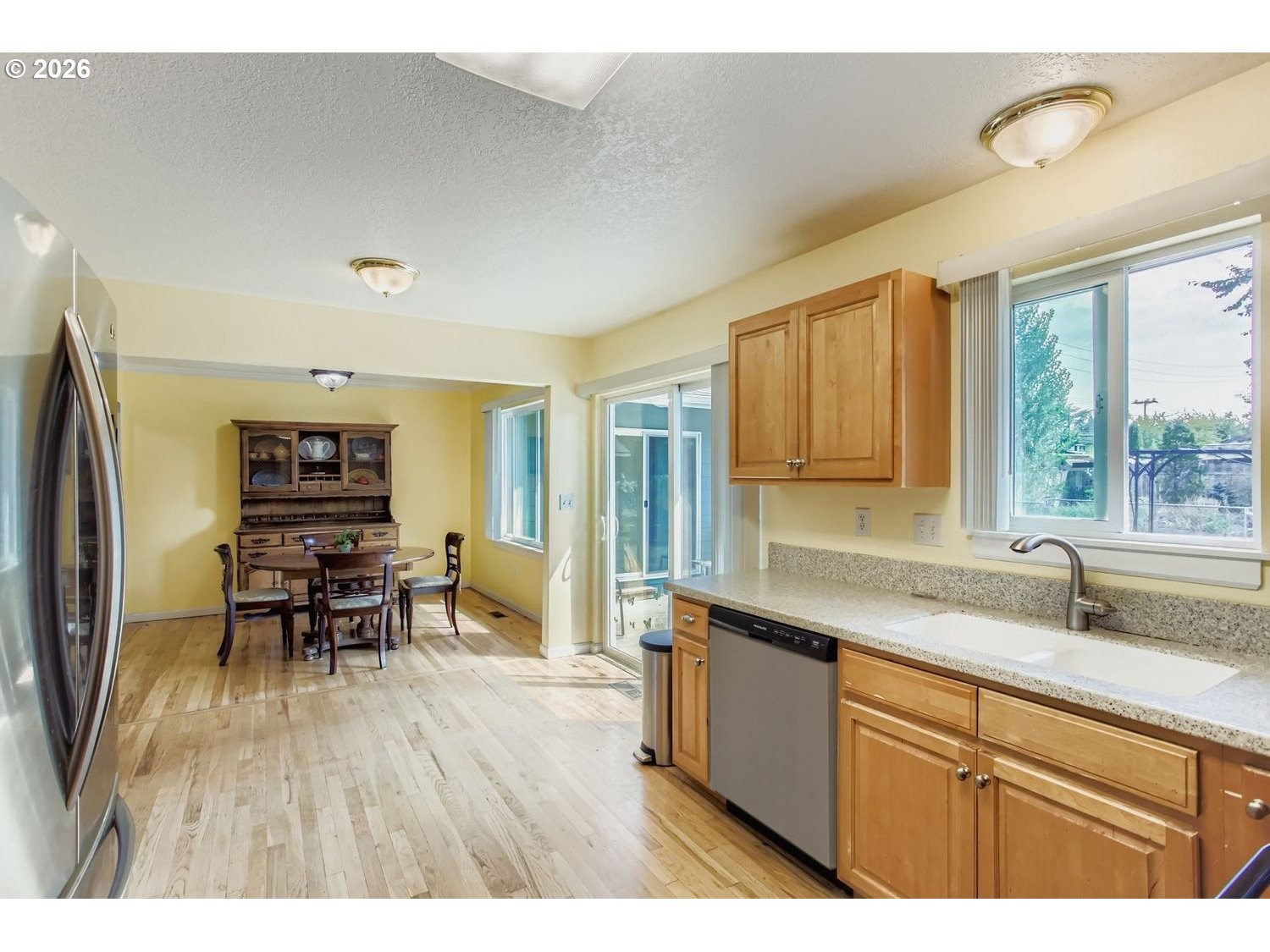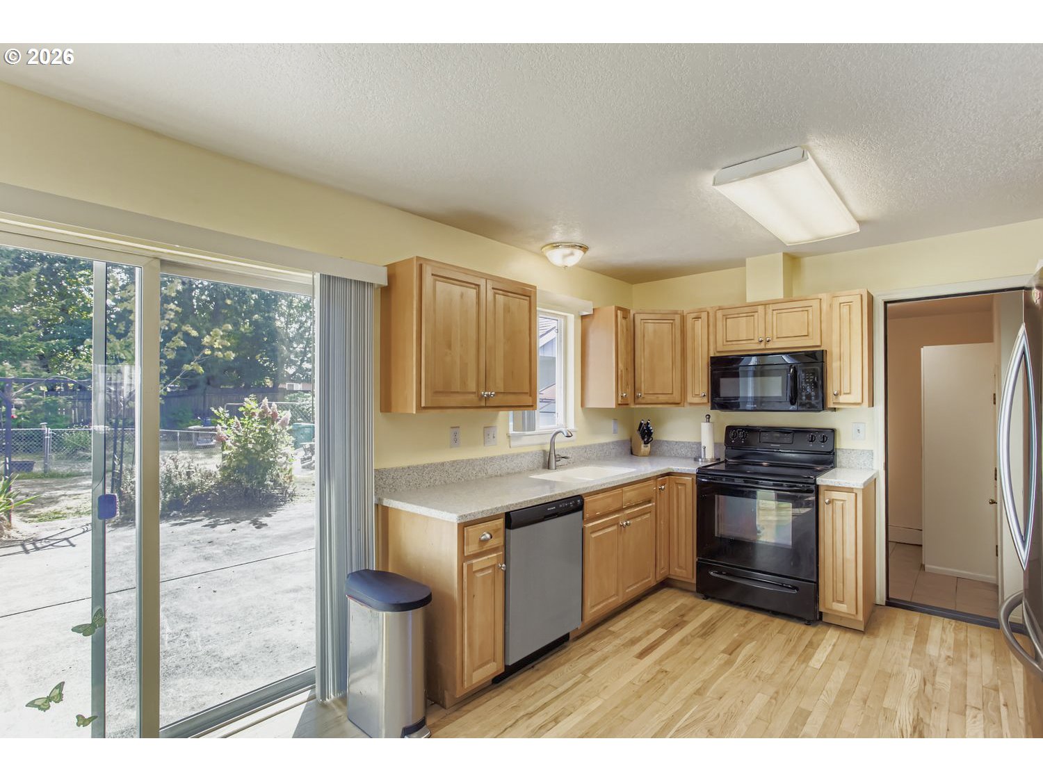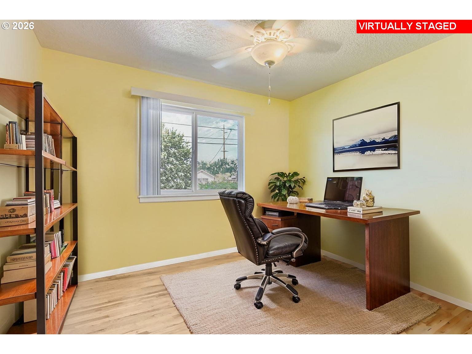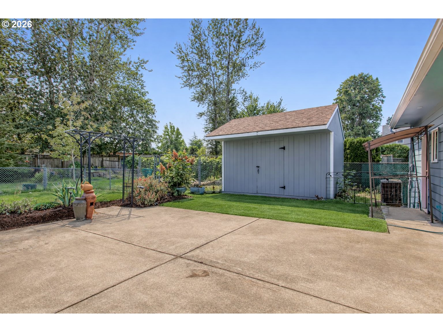 Welcome to this inviting 3-bedroom, 2.5-bathroom single level home that combines comfort and functionality in a highly livable layout. The open living room features a cozy gas fireplace and beautiful hardwood floors that extend throughout the home, adding warmth and character. The spacious primary suite includes a remodeled bathroom and a slider that opens directly to the backyard, creating a perfect retreat. The converted garage offers a versatile flex space, ideal for a home office, gym, or bonus room to suit your lifestyle. Outside, the fenced backyard is designed for enjoyment and convenience with a large patio,a storage shed, and plenty of room for outdoor activities. With thoughtful updates and flexible spaces both inside and out, this home is ready to fit your needs and provide a welcoming place to call your own.