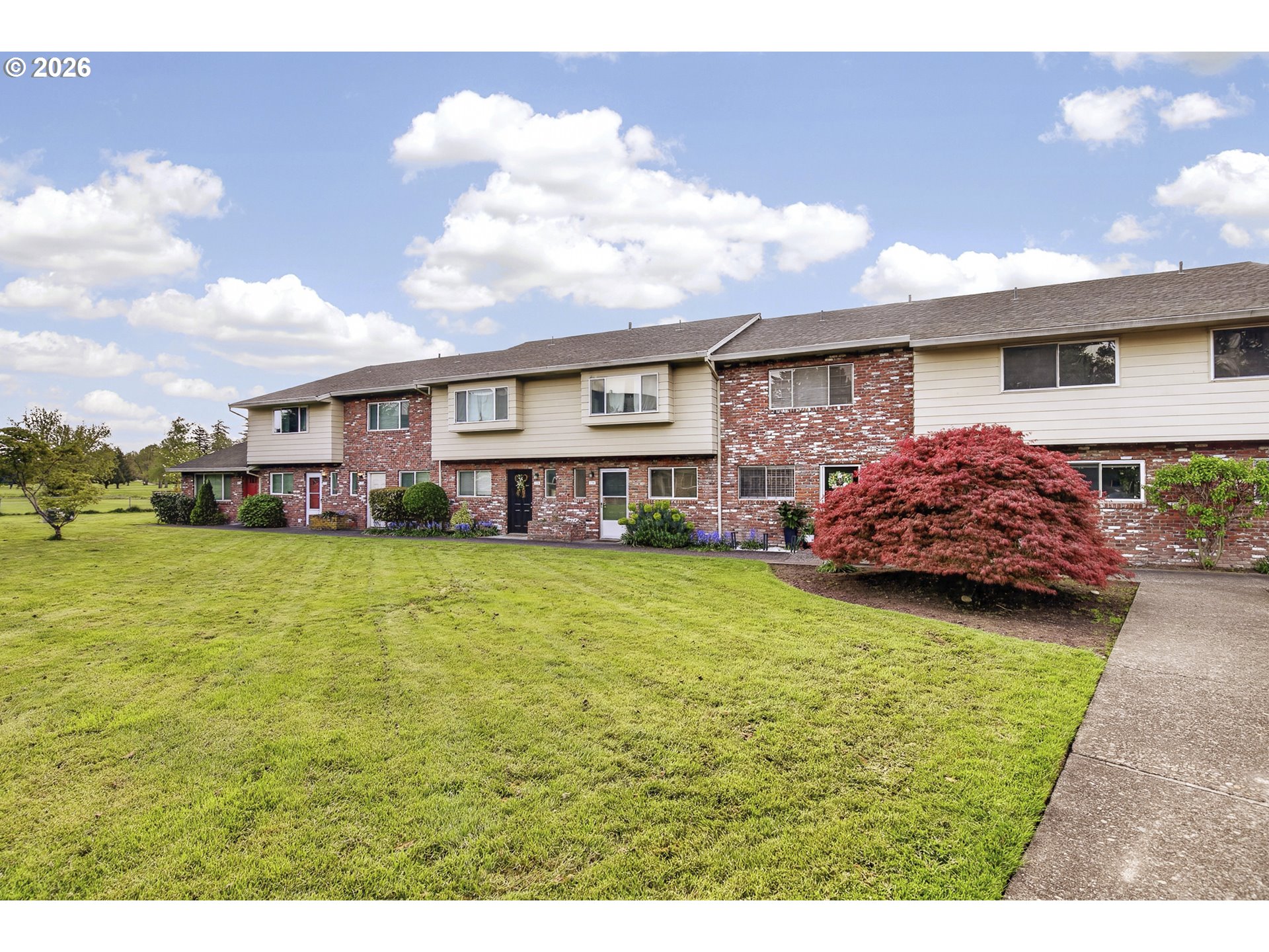 Well maintained beautiful townhouse in Country Club Estates. This 3 bedroom plus bonus 4th room backs up to the seasonal creek with views to the east of the Gresham Holf course. The primary room has a giant walk-in closet with window and its own private balcony while the other 2 bedrooms have ample storage and significant space. The main level has a patio off the living room and has a storage unit. There is a half bath on the main floor as well. This unit comes with all appliances, including the new dual washer/dryer combo unit! The HOA covers the rec room, the pool, flood insurance, water, sewer, garbage, ground maintenance and common areas.