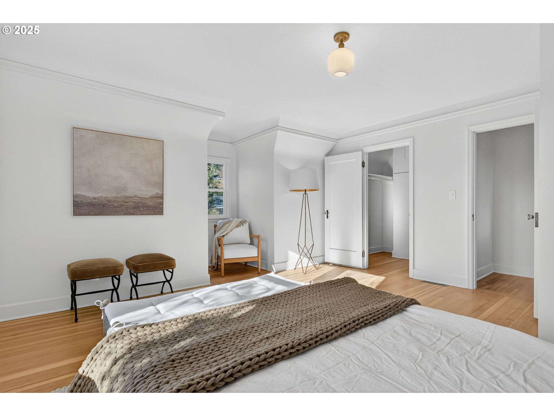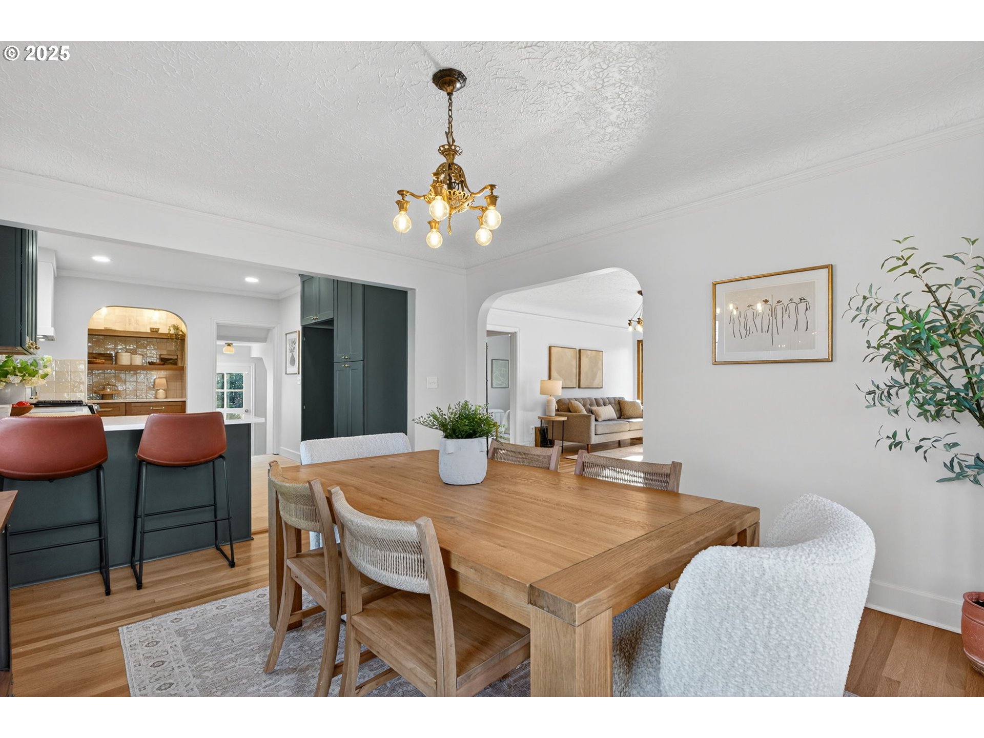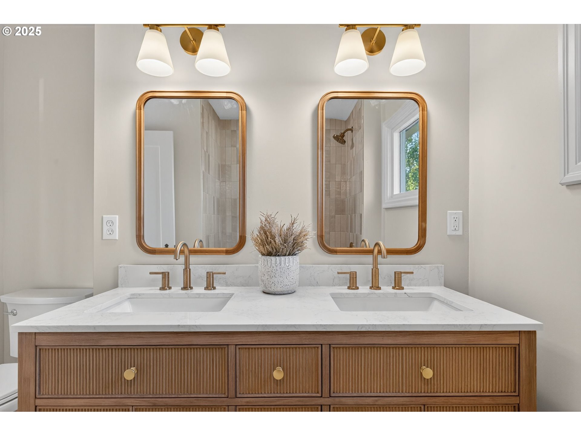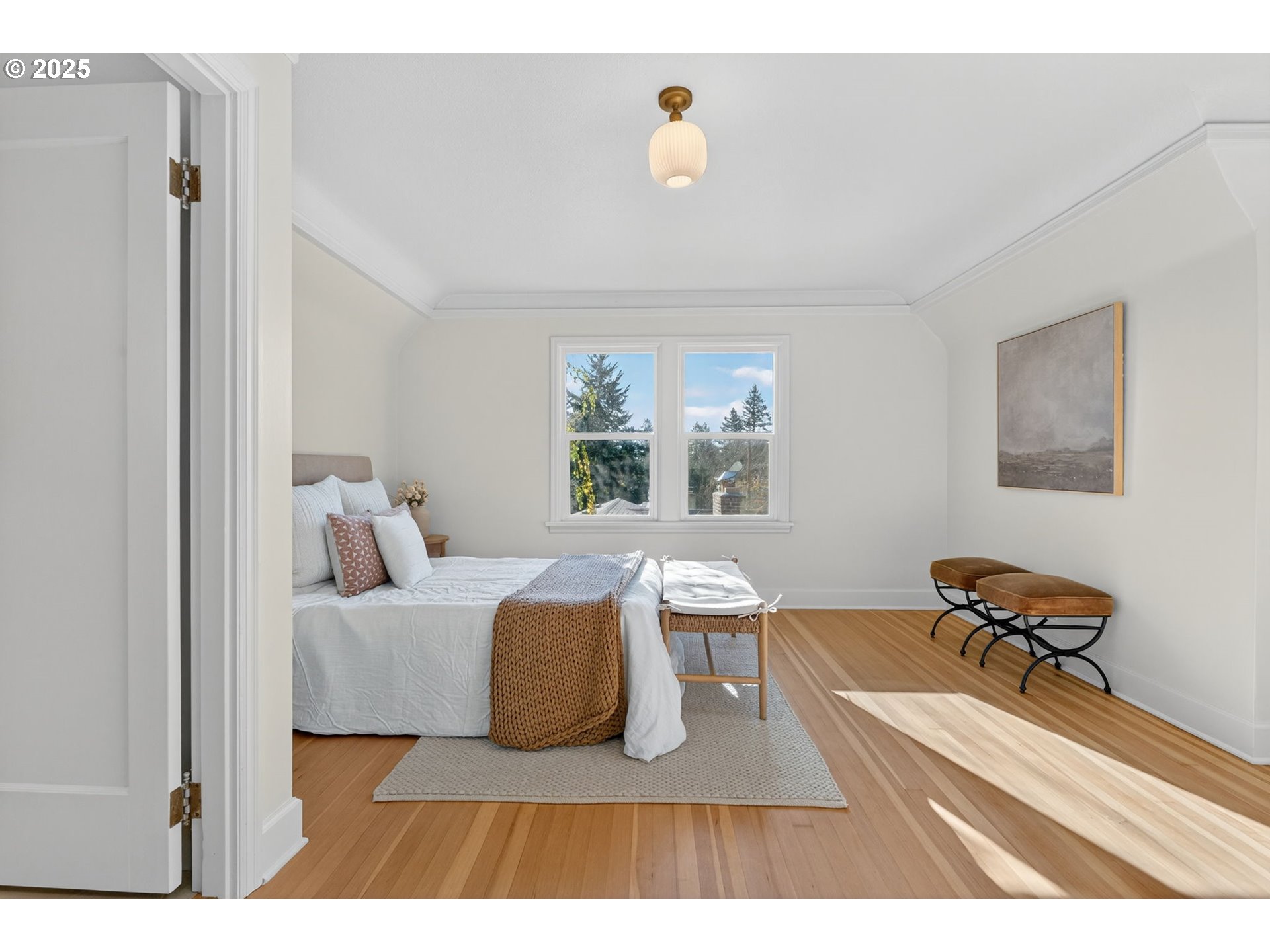 Stunningly remodeled Mt. Tabor Tudor blends modern amenities with original period details. Living room boasts a beautifully preserved fireplace, picture rail molding and wall of wooden windows that fill the space with natural light. Newly remodeled kitchen opens to expansive dining room with more period charm and peek-a-boo views of Mt. Tabor. Large kitchen with peninsula offers quartz countertops, gas stove with custom hood, Bedrosions designer tile, walk-in pantry with open shelving and an abundance of storage. Newly refinished oak and fir floors throughout with a full bedroom and bathroom on main floor. Upstairs features generously sized primary suite with large en-suite bathroom and walk-in closet. 3rd bedroom upstairs with adjoining bonus room that could be a great flex space/office. Full height unfinished basement allows for future expansion possibilities. Large corner lot with two car garage backing to highly rated Bridger Elementary. Conveniently positioned just blocks from iconic Mt. Tabor park, Montavilla shops, farmers market, cafes and restaurants. This is the one!