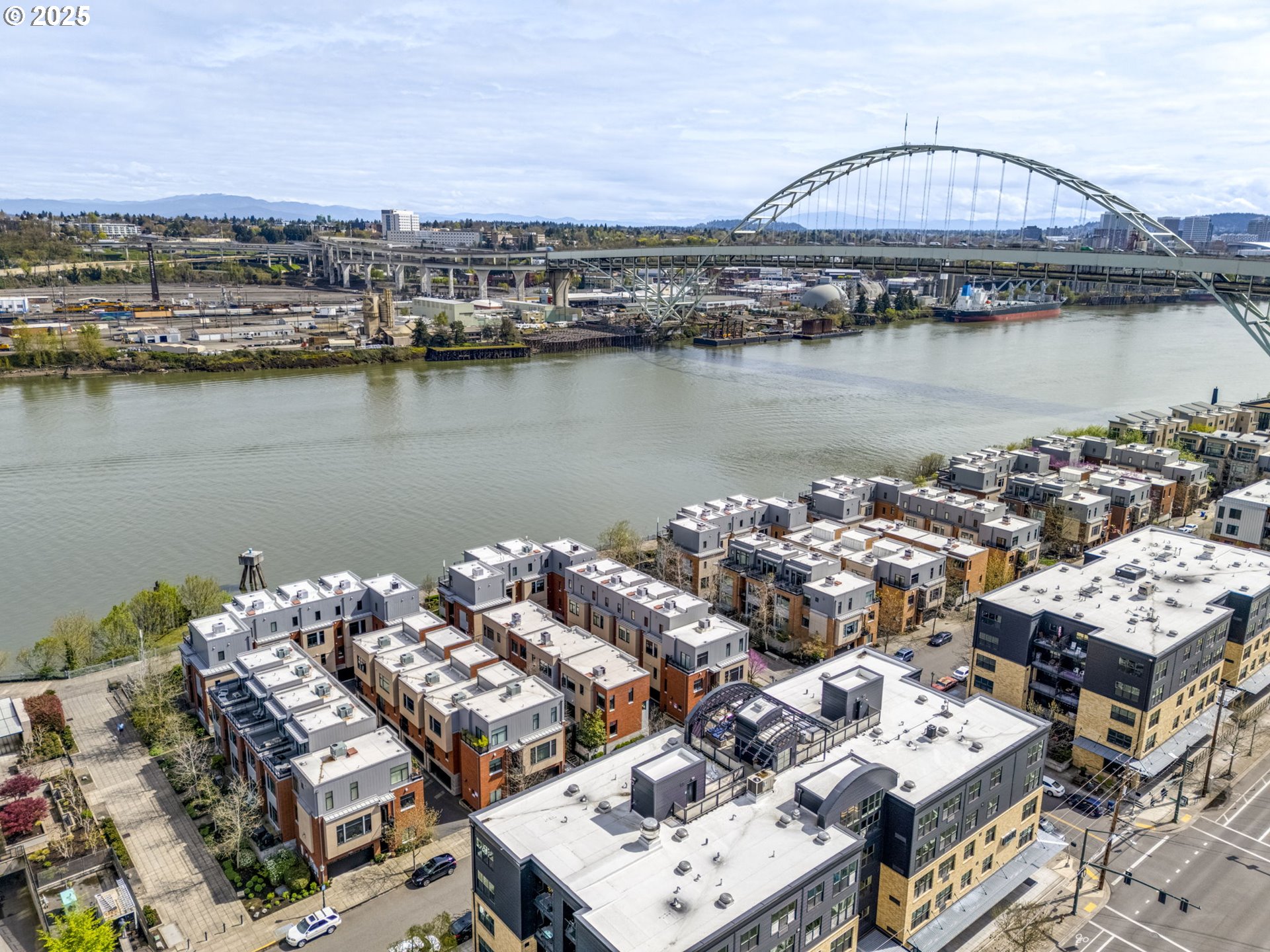Welcome to this exquisite waterfront townhome in the heart of Riverscape, where modern luxury meets breathtaking views of the Willamette River. This fresh and contemporary residence has been fully reimagined, boasting high-end finishes throughout and a spacious, open-concept floor plan designed to maximize natural light and the stunning river scenery.The main living area features walls of windows that flood the space with light, seamlessly connecting to the expansive outdoor patios. Perfect for entertaining or relaxing, you can enjoy the beauty of the river from every angle. The Chef's Kitchen is a true standout, offering top-tier appliances, sleek countertops, and a thoughtful design. The luxurious primary suite features a walk-in shower, a large walk-through closet, and, of course, panoramic views of the river through bright, expansive windows. The second guest suite is equally impressive, offering a private, spacious patio and more stunning views of the water.Additional highlights include a rare 2-car attached garage, fresh modern finishes, and an unbeatable location. Just a short distance from the Pearl District, you’re moments away from charming cafes, restaurants, and all that the vibrant area has to offer. [Home Energy Score = 7. HES Report at https://rpt.greenbuildingregistry.com/hes/OR10166881]