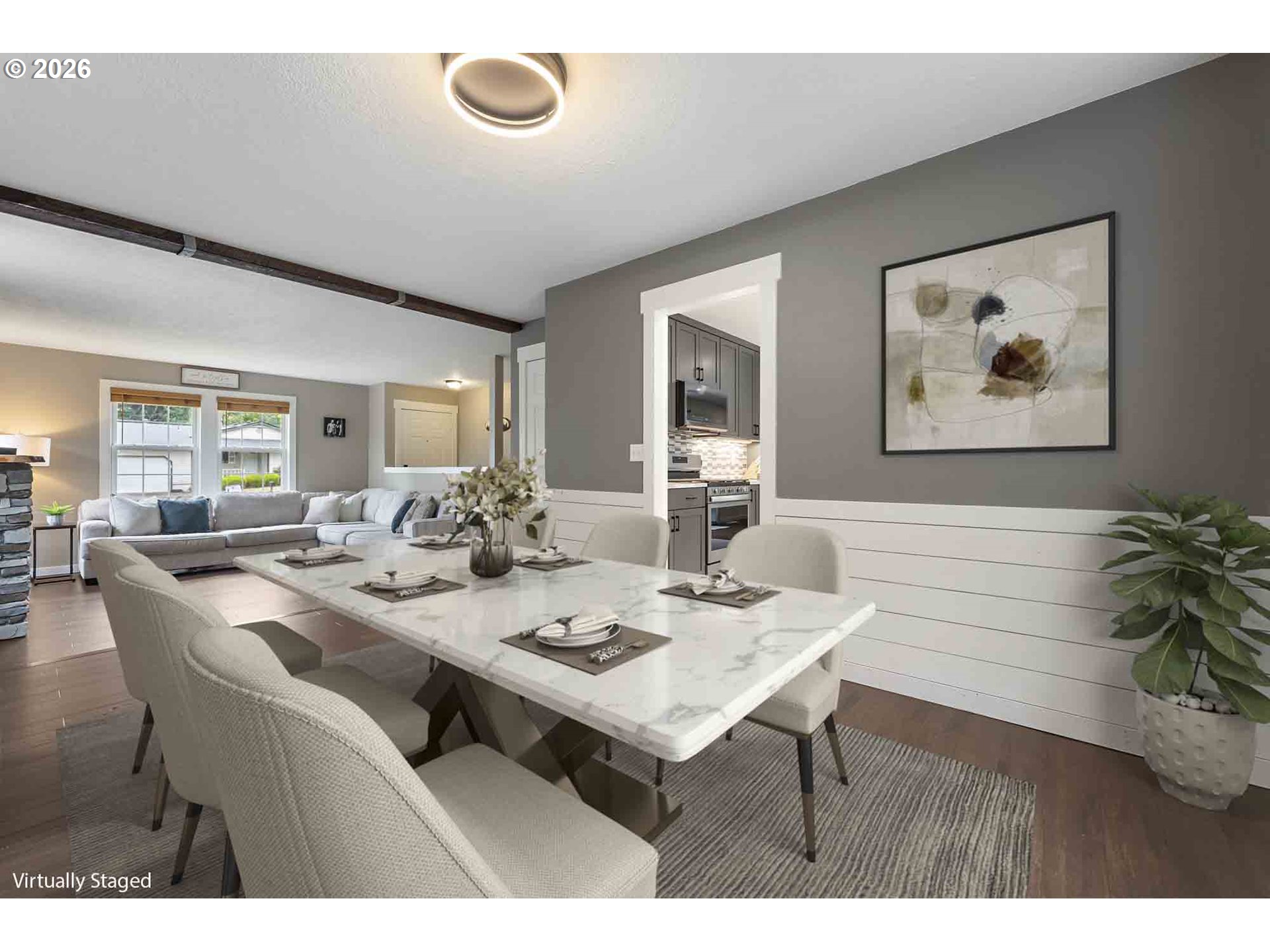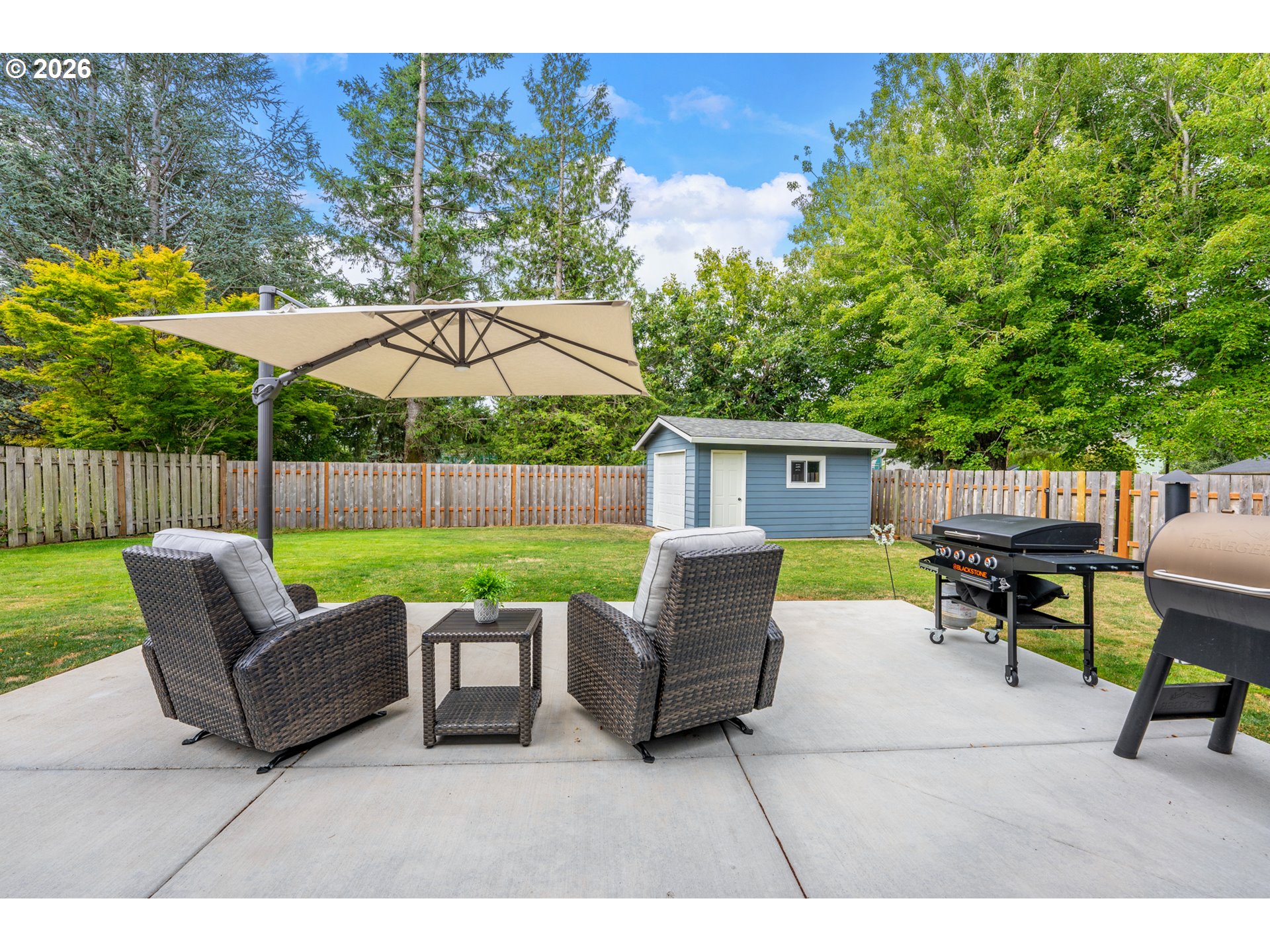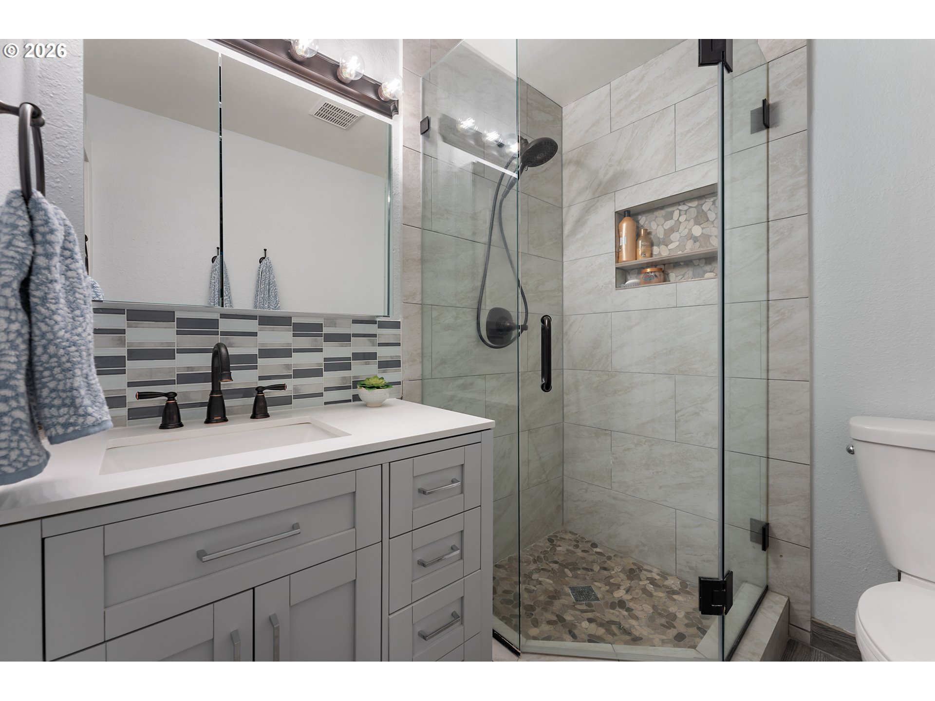 Sundrenched, Sweet Sanctuary in Secluded Sandee Palisades neighborhood sits on a gracious-sized lot abutting Lewellyn Park & steps to Beaver Creek Trails. The interior teems with updates including down-to-the-studs remodeled Kitchen including quartz countertops, tile backsplash, stainless appliances and Medallion cabinetry. Cozy up to the fireplace in the sunken living room and newer rich-hued flooring. The formal dining space with wainscoting provides plenty of room for holiday gathering. The adjacent family room is an ideal flex-space - whether a home office, informal eat area or casual hangout room. Step outside the sliding door to the private, fenced backyard - a perfect place for entertaining, challenging your friends to croquet or having a quiet dinner. The detached shed is an ideal flex-space for a workshop or detached home office. For rest, the primary suite on the main floor is ideal for aging in place. Upstairs, two ample bedrooms offer plenty of closet space as well as a loft for a secondary TV area or play space. For a tennis match or spending hours at the playground, Lewellyn Park is literally next door. For those interested in nature, take the Beaver Creek Trail to spot some fauna. Don't miss - nearby quaint downtown Troutdale, coveted Columbia Park, proximity to the Sandy River, McMenamins Edgefield resort, Sugar Pine drive-in, Troutdale Station or the outlet mall! This location provides easy access to the Gorge or Mount Hood Community College! Boom!