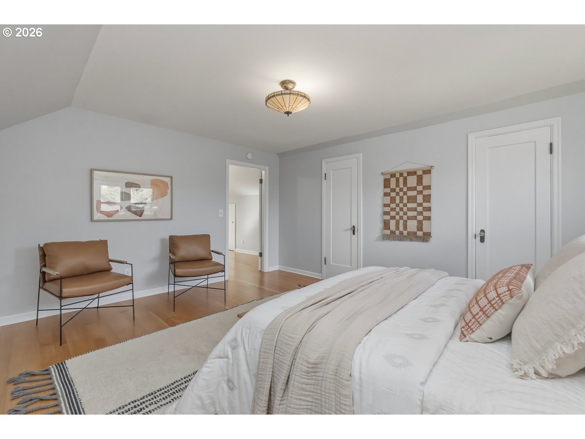 (503) 893-8874Tudor to die for! 1938 Rose City Queen with stately finishes and a gracious floor plan.Stunning architecturally, mechanically sound, and aesthetically exceptional, this home is bigger than it looks and has had only three owners. Step into the sweeping living room which can accommodate two separate seating areas and features leaded glass windows, original mantel, and vintage wall sconces with hanging ornaments. Raise a glass in the large formal dining room, perfect for toasts and celebrations. The kitchen has been fully updated with quartz countertops, tile backsplash, lots of wood cabinets, stainless appliances, gas stove, and a built-in bench in the eating area. The large central hallway on the main floor includes two built-in cabinets for linens and sundries. The very large main floor bedroom has a long doubled doored closet and more than enough room for a king size bed. The second main floor bedroom features sliding glass doors to the back deck and a cedar closet. There’s plenty of storage in the main floor bathroom which has tile on the floor, counters, and tub surround. The upper level displays radiant fir floors and a light filled landing large enough for an office or library. The spacious upstairs bedroom has a deep closet with double doors and vintage lights. The lower level is fully finished and includes a very large room perfect for games, karaoke, or just hanging out with friends. Also on the lower level is a generous bedroom (may be non-conforming), a big bathroom with tile shower, and a laundry room large enough to accommodate a crafts space. This exceptional home is full of secrets and surprises. Discover the hidden wine cellar, vintage hardware, and antique light fixtures. Recent upgrades include the roof, furnace, AC, hot water heater, and insulation. Fenced yard, garage for storage only, exterior 240-volt outlet for quick EV charging, and so much more! [Home Energy Score = 4. HES Report at https://rpt.greenbuildingregistry.com/hes/OR10244237]