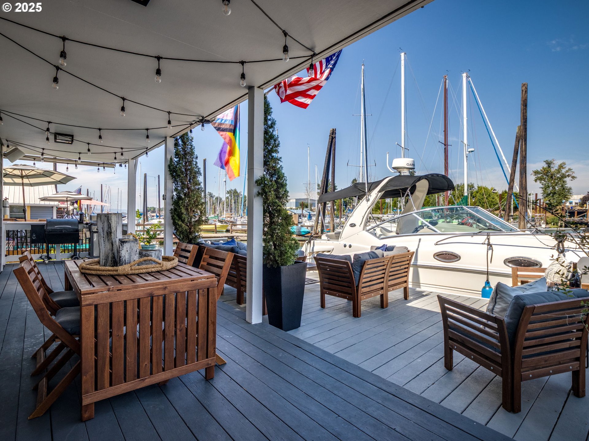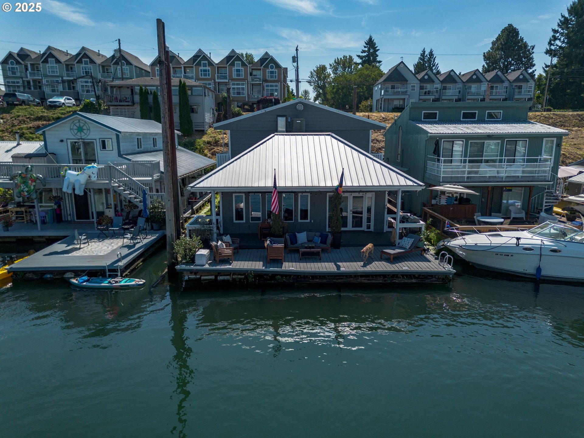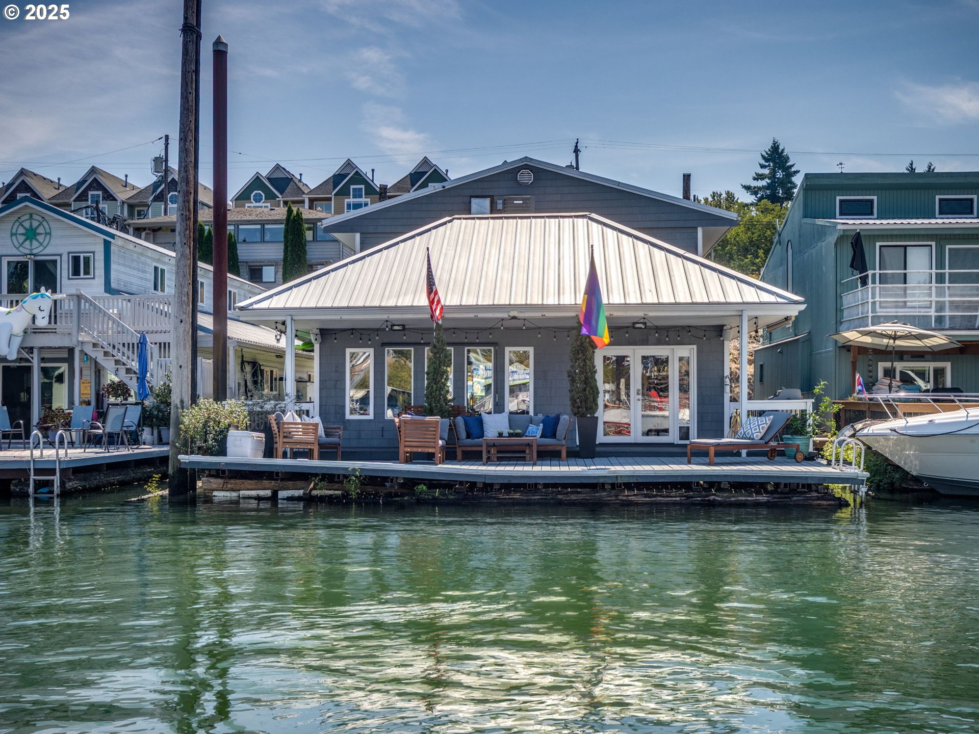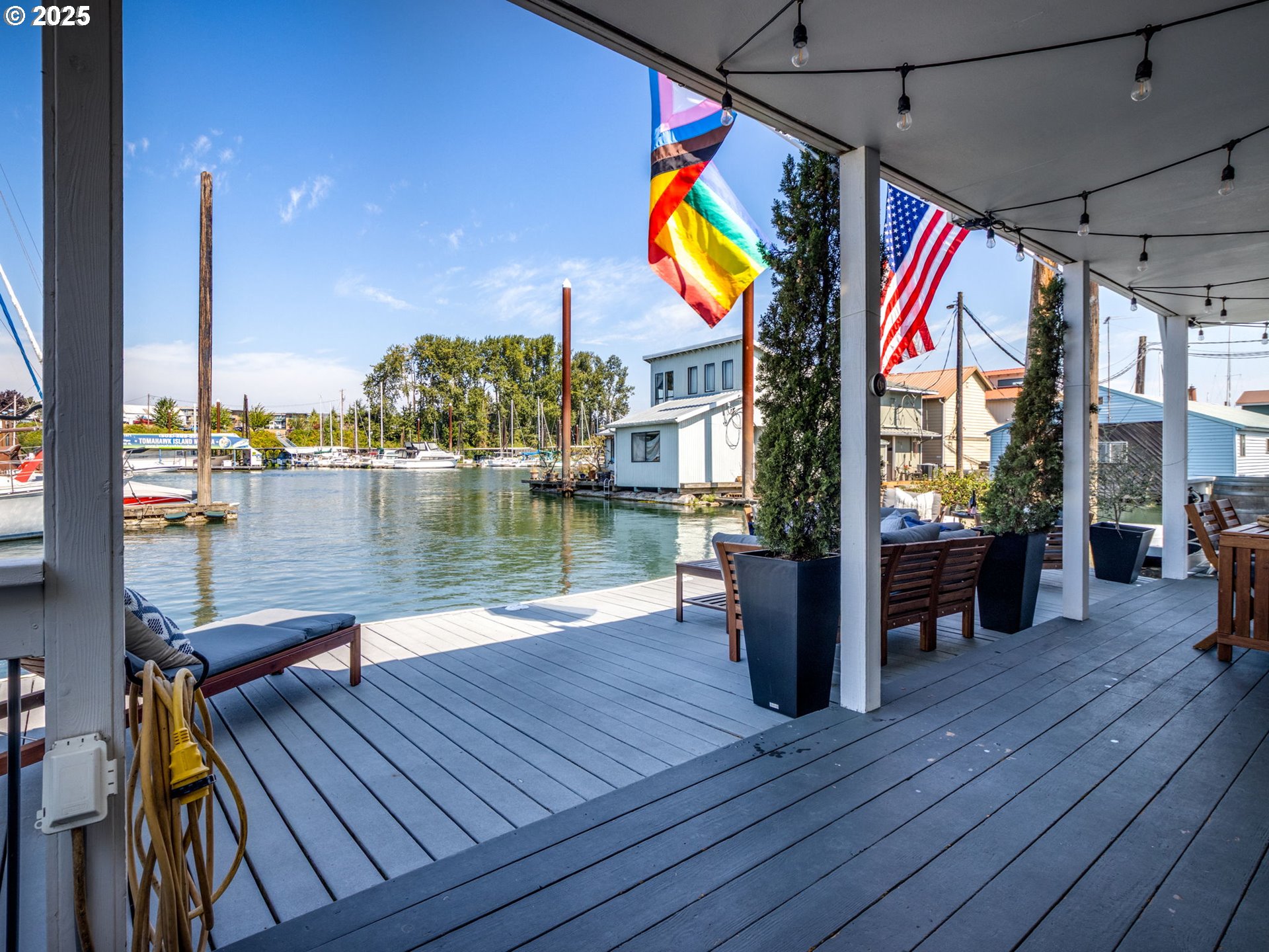 (503) 893-8874Live in Paradise on a floating home. 1st FLOOR PRIMARY BEDROOM AND BATHROOM. Updated, remodeled and charming. Lots of storage. 2 decks. 3 bedrooms, 2 full baths. Great kitchen for cooking and entertaining with granite countertops, lots of cabinets and counter space, kitchen eat-in bar with seating for 4 stools; Front loading washer full-size washer and dryer. Rare end-corner slip with open view across the river to see the fun at The Island Cafe. The views of sunrise and sunsets are magical. Located in the tight-knit Bridgeton neighborhood, where neighbors can know each other and residents can host "Soup Nights" at each others' floating homes or the landed-homes on the street. Golf and yacht clubs down the street; near shopping and restaurants. Extra storage in valued exterior closet. Lots of room to sit on deck with friends to entertain; in winter watch the Christmas Ships parades up close and in summer watch the boat activity and the new Smile Boat Parade. Watch river otters, beaver, ducks, herons and the occasional sea lion. Fishing off the dock is ok. With a 36' wide dock, you can dock your boat, jetski, paddle boards and canoe at your front doorstep. Bike routes closeby. Grassy field on Bridgeton is a favorite people-gathering and dog-gathering (on leash) space. Enjoy some Paradise on the river with lots to do and see or just sit and enjoy the view! 2 owner parking spaces near east ramp.Furniture and tvs are negotiable.