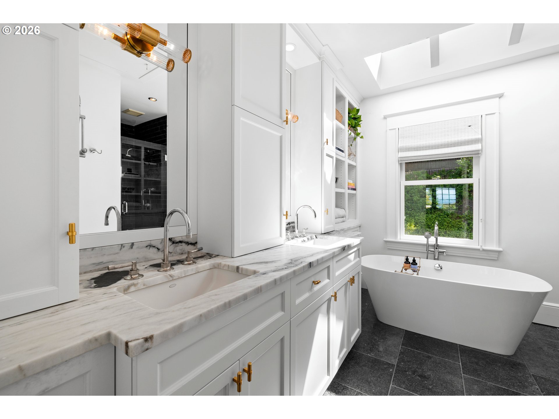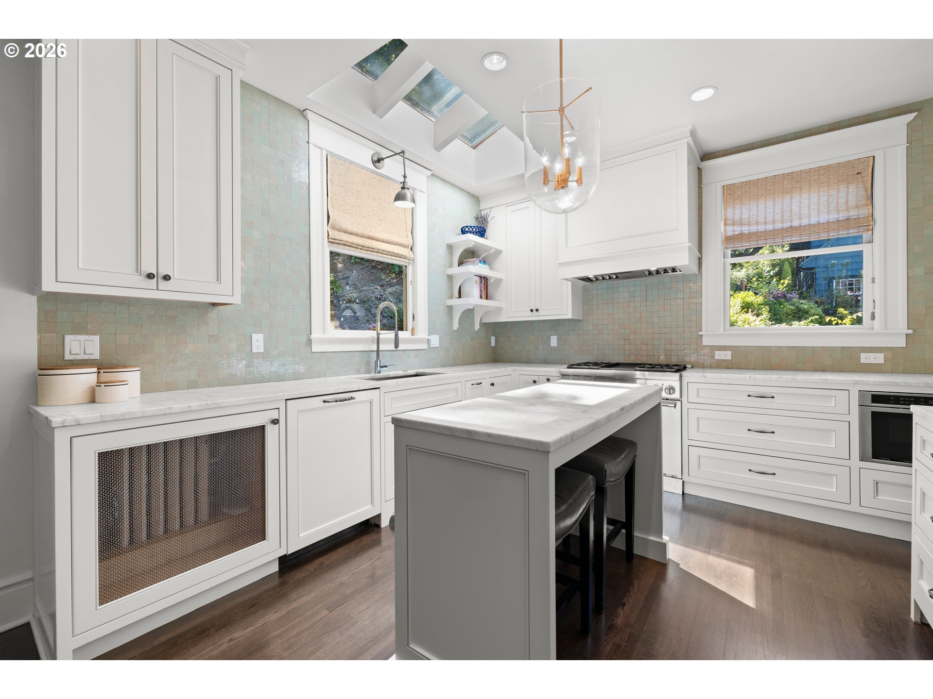 (503) 893-8874Stunning, fully remodeled and thoughtfully upgraded with designer touches, this exceptional home sits atop a coveted street in Portland Heights, combining modern amenities with timeless charm while offering expansive living spaces, excellent storage, and sweeping city and mountain views from both levels.A welcoming entry opens to a light-filled main floor. The living room features scenic views, a gas fireplace, hardwood floors, and custom built-ins. The kitchen is a true showpiece with custom cabinetry, Calacatta marble countertops, Thermador appliances, designer tile, and elevated lighting and hardware. The layout is ideal for both daily living and entertaining, with an attached butler’s pantry and beverage center for a bar or coffee station.The primary suite offers a spa-like bath with a walk-in shower, freestanding tub, custom cabinetry, and curated finishes. A generous walk-in closet provides ample, well-designed storage, while a private balcony captures the views. Two additional upstairs bedrooms feature built-in closets and share a fully remodeled Jack and Jill bath.A main-level office can function as a fourth bedroom and is complemented by a stylish half bath with a converted antique dresser vanity.Designer lighting, Rohl fixtures, and Ann Sacks tile are featured throughout, reflecting the home’s connection to its former owner, Ann Sacks.The finished basement adds flexibility with a bonus room, wine bar, gym area, workshop, and abundant storage throughout.Extensive structural and system upgrades provide peace of mind. Exterior improvements include an updated roof, Hardiplank siding, updated windows, and a reimagined backyard with new concrete, landscaping, an outdoor kitchen, and space for entertaining, including a projector setup for summer movie nights.Private and tucked away, yet close to neighborhood amenities including a top-rated elementary school and local café. A rare opportunity in one of Portland’s most desirable neighborhoods