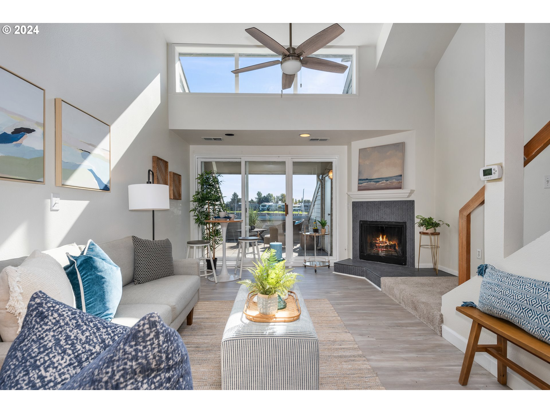 This is the best buy at Columbia Point! Great location, NO HOA Special Assessments, Newer carpet, newer furnace 2024, New hot water heater 2026, new LOV flooring, fireplace surround plus a new skylight. Light and bright with a lovely patio overlooking the bay with MT Hood views. Large Picture window in the kitchen and all appliances included. Vaulted living room with ceiling fan and wood burning fireplace. South facing, just a short walk to the pool and the walking path around the bay. Minutes to the Vancouver waterfront. Local Island restaurants - Island Cafe, Three Sheets, the new Pal's plus Angelinas. Shopping on the west side of the island, close to the airport, golf and yacht clubs. Deeded Parking Space #27. Stagging has been removed from the condo. Easy to show. Hayden Island Portland's waterfront community. Time to make a move perfect for downsizing or a summer get-a-way. Bring your boat - moorage space available for rent at Columbia Crossings