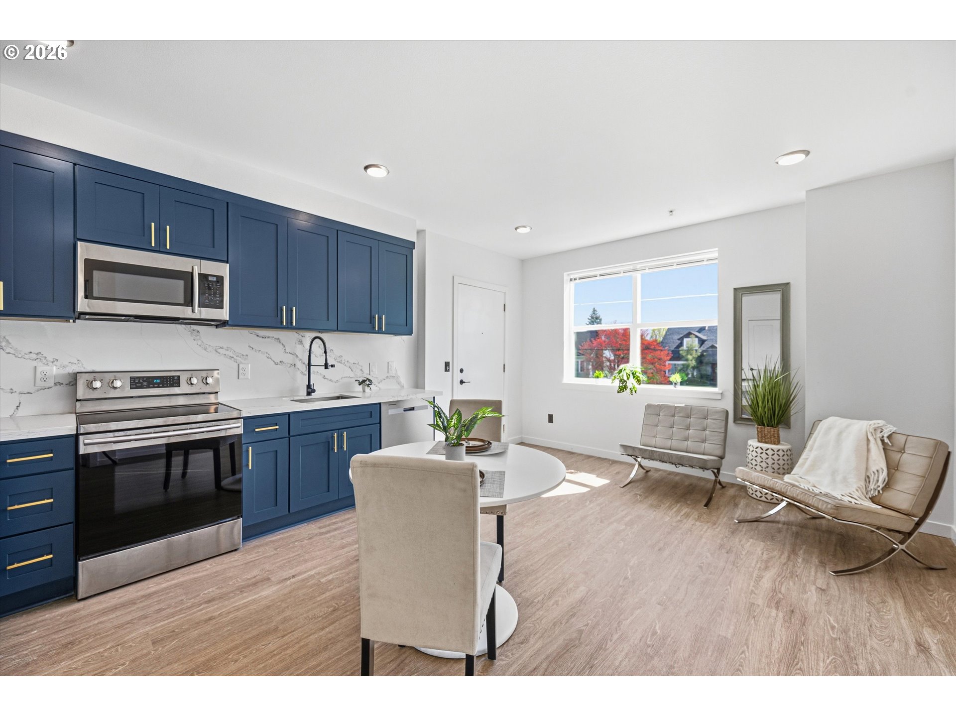 Perched on the second floor, this 2020-built gem is your low-maintenance launchpad for a life well-lived. With 2 spacious bedrooms and a smart, single-level layout, it’s designed to keep things easy, breezy, and beautifully functional. Step inside and feel the vibe: an open-concept living space wrapped in brand new luxury plank vinyl flooring that’s ready for everything from cozy nights in to impromptu get-togethers. The kitchen steals the show with all new sleek cabinetry, new stainless steel appliances, quartz countertops... all topped off with soaring 9-foot ceilings that bring in light and elevate the entire space. Both bedrooms offer comfortable retreats with ample closet storage, while the bathroom delivers a polished finish with tile floors, a quartz vanity, and a classic tile-surround shower/tub combo. Practical perks? You’ve got them. A mini-split heat pump for efficient comfort, supplemental wall heat, electric water heater, and a tucked-away utility closet with a high-end stackable washer and dryer keep daily life running smoothly. Whether you're simplifying, investing, or stepping into your first home, this condo checks all the boxes with style to spare. Walk to New Seasons, MAX line and tons of restaurants and shopping! Welcome home.
