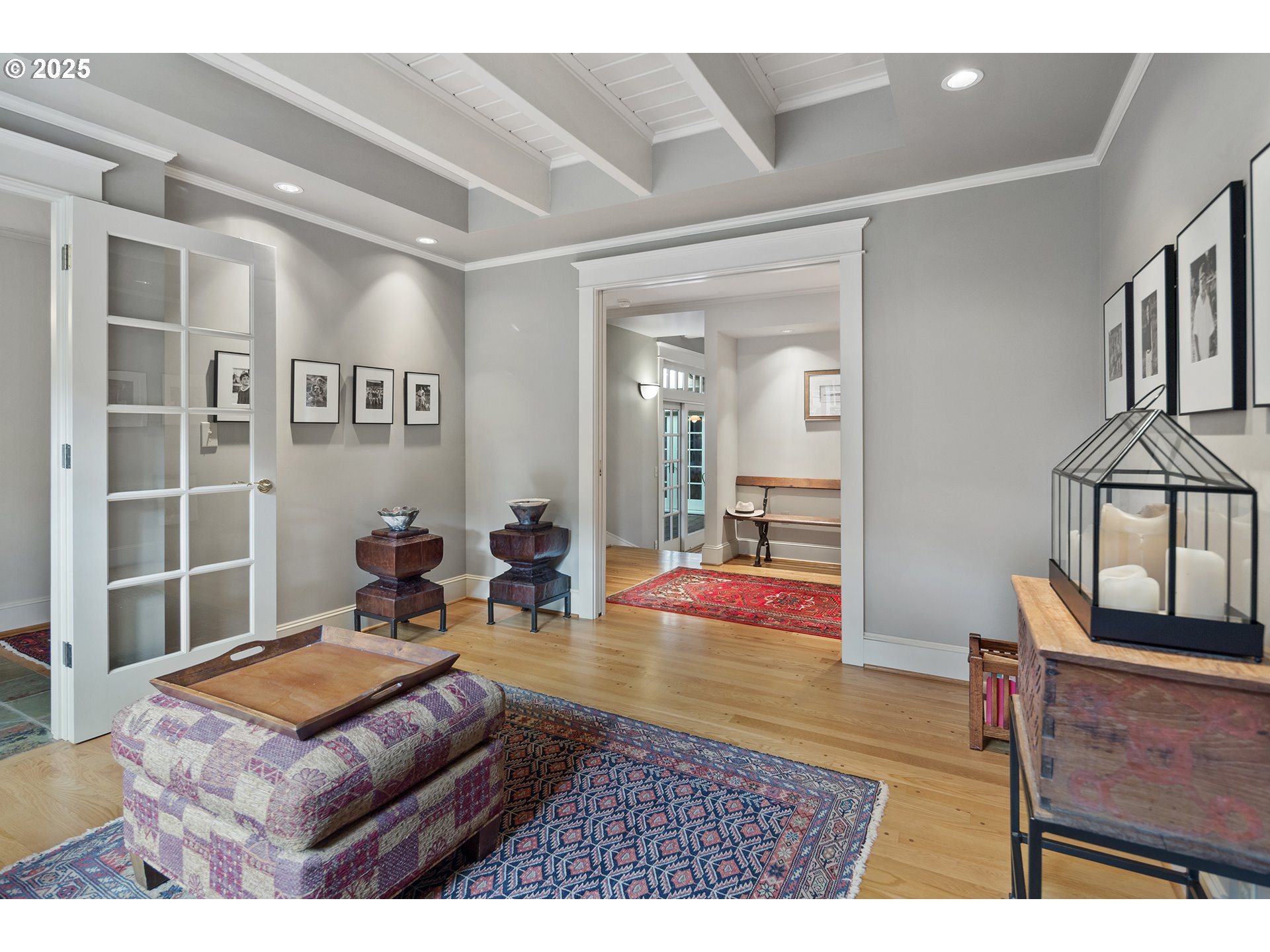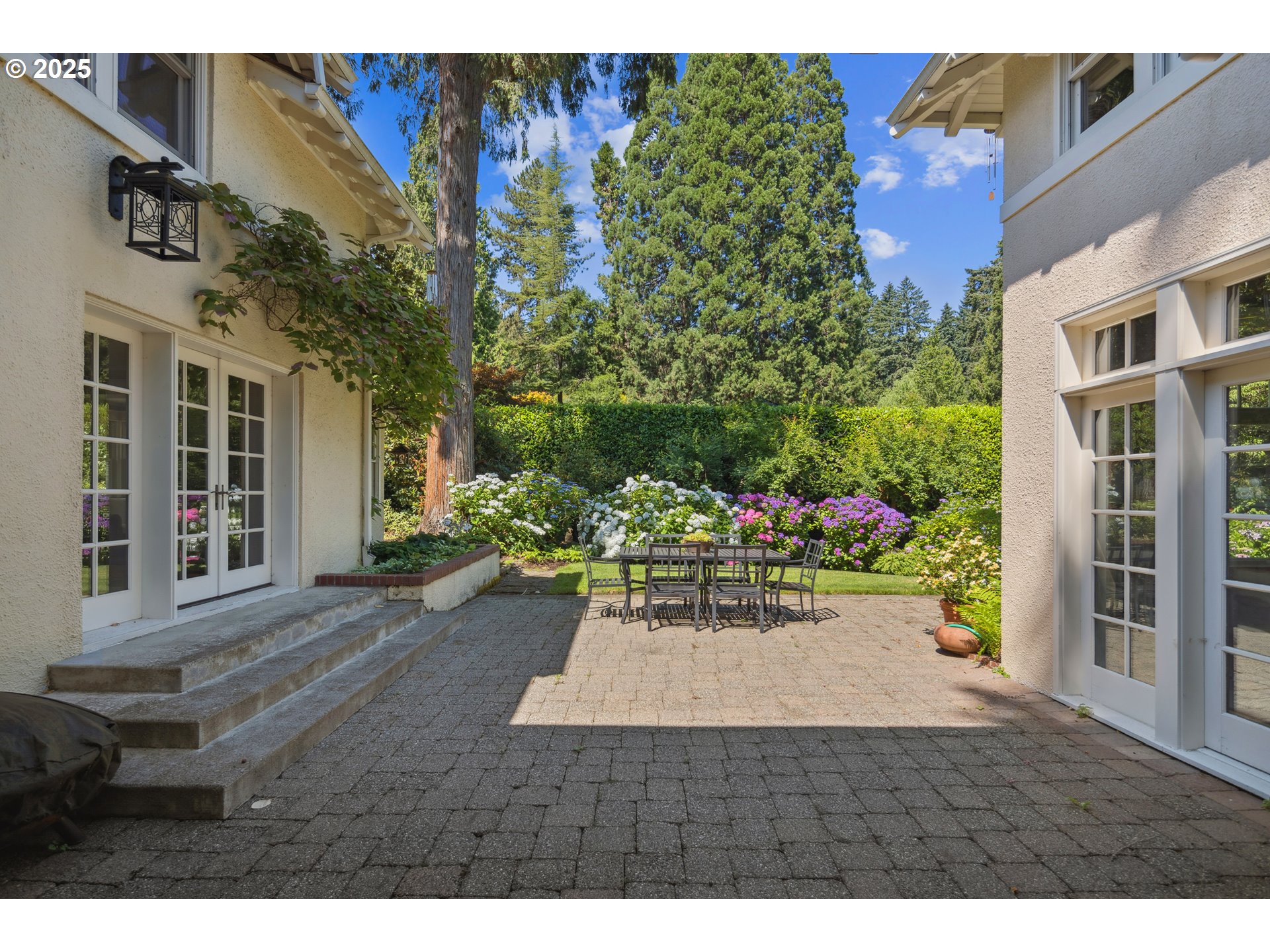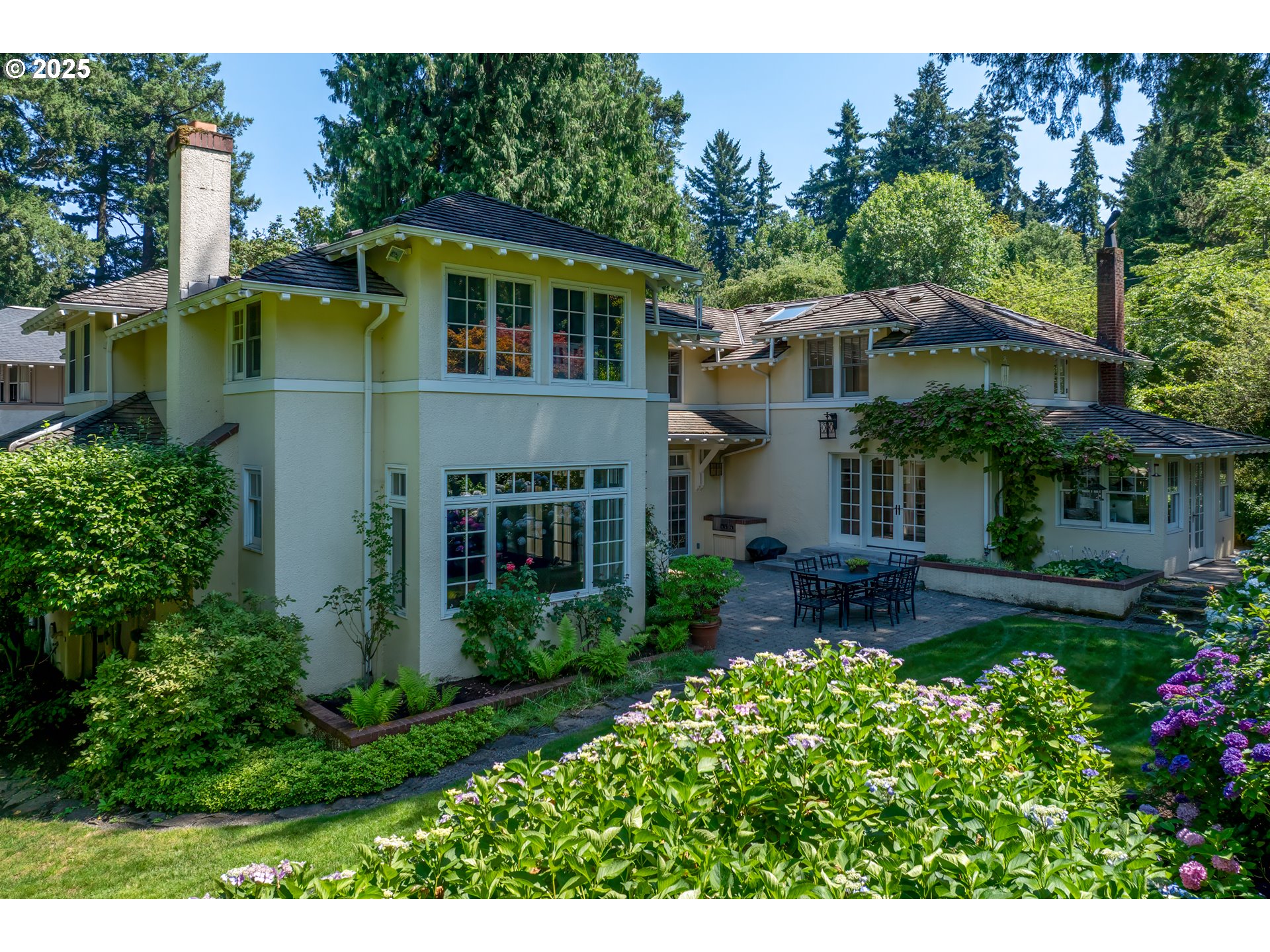 (503) 893-8874Nestled in a serene enclave between the Willamette River and Lewis & Clark College, this gorgeous 1914 Dunthorpe home offers a rare blend of historic charm and modern elegance. Tucked away behind artful privacy hedges, the property is a hidden refuge minutes from downtown. Authentic Craftsman details, coffered shiplap ceilings, classical molding, beautiful hardwood floors, custom built-ins, evoke the meticulous craftsmanship unique to homes of this era. The main floor is a harmonious blend of three distinct living spaces, each oriented towards a central cobblestone courtyard and accented by French doors surrounded by glass that flood the home with natural light. The result is a seamless blend of indoor/outdoor living, ideal for entertaining. The gourmet kitchen boasts granite countertops, cabinet-faced appliances, and an island with built-in Gaggenau cooktop. In the adjacent great room, a beautiful box bay window creates the perfect sun-drenched reading nook, while a wood-burning fireplace encased in custom built-ins adds warmth to the space. A charming living area across the courtyard features a second fireplace with mosaic stonework, built-in bookshelves, a cozy window seat, and a light-filled sunroom with outdoor access. Upstairs on its own wing, the primary suite is airy and bright thanks to vaulted ceilings, skylights, and pale hardwood floors. The suite also boasts dual walk-in closets and a spa-like bath with subway tile wainscoting, built-in towel warmer, and dual vanity with marble countertops. 3 bedrooms and a full bath occupy the opposite wing. Additional spaces include a lovely sitting room, a mudroom, and an unfinished basement. The expansive, mature, and beautifully-landscaped half-acre lot is a gardener's dream. Connected via Portland's SW Trails system to Tryon Creek State Natural Area and its miles of trails. Riverdale is consistently ranked the best school district in Multnomah County. Downtown Portland and Lake Oswego are just minutes away.