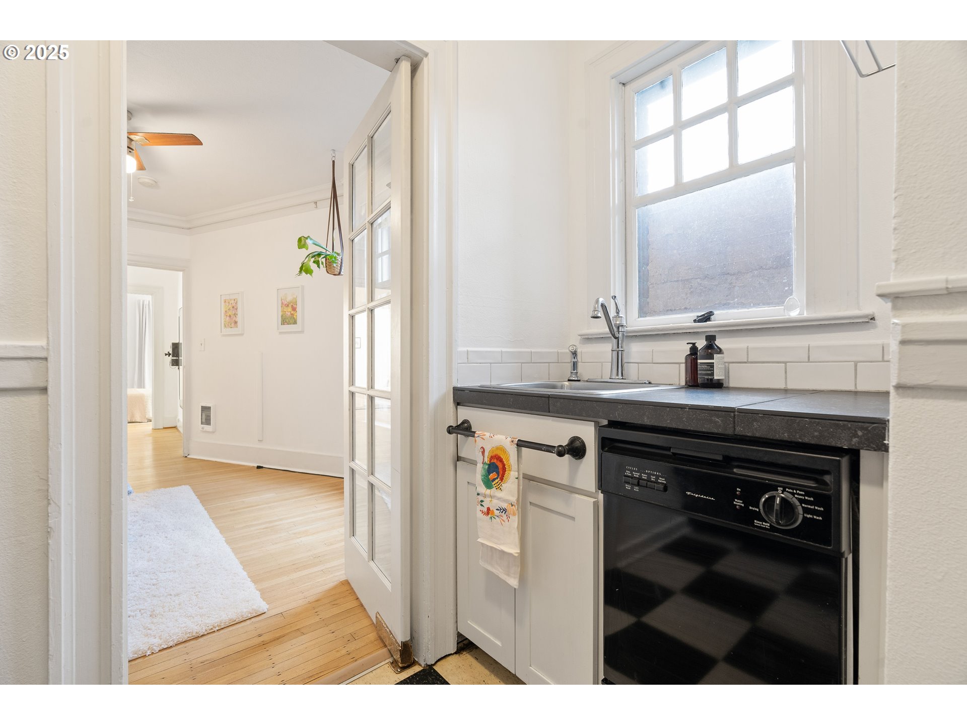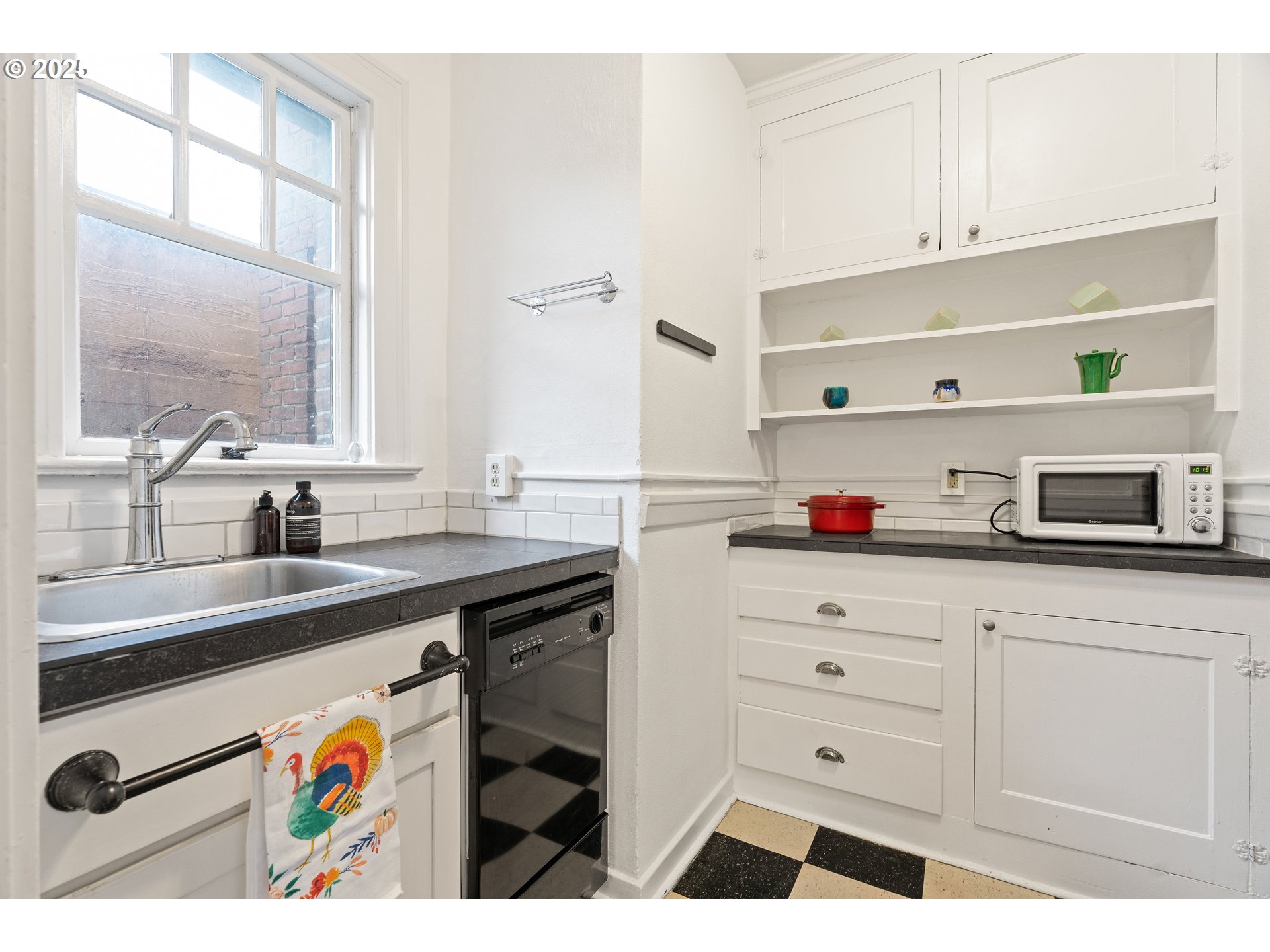 Perfectly formed one bedroom condo in the charming historic Tudor Arms in Alphabet District. Designed by the notable architect Carl Linde and inspired by English Renaissance Jacobethan style, this U-shaped building is significant for its balustraded parapet, ornamental white glazed terra cotta quoins and moldings. An archway bearing the building's name marks the entrance into a landscaped courtyard. The lobby has beautiful mahogany wainscoting, marble flooring and coffered ceiling, lending the space an old world charm. Once you step inside the unit, the rooms are defined by high ceilings, elegant oak flooring and large windows. The south facing bedroom has views of the city and trees, with built in shelves and a spacious walk-in closet, rare for buildings from this era. The kitchen lies on the other side of the room, with dishwasher, newer fridge & range. New interior paint. Laundry, secured storage & bike storage included on the first floor. Location couldn’t be more convenient. Walking distance to everything with MAX line and bus stops close by, along with Providence Park, Fred Meyers, Zupans, coffee, galleries, shops & restaurants on NW 21st, NW 23rd and Pearl district. Plenty of street parking. HOA dues include all utilities except for electricity. Pet friendly. No rental cap.