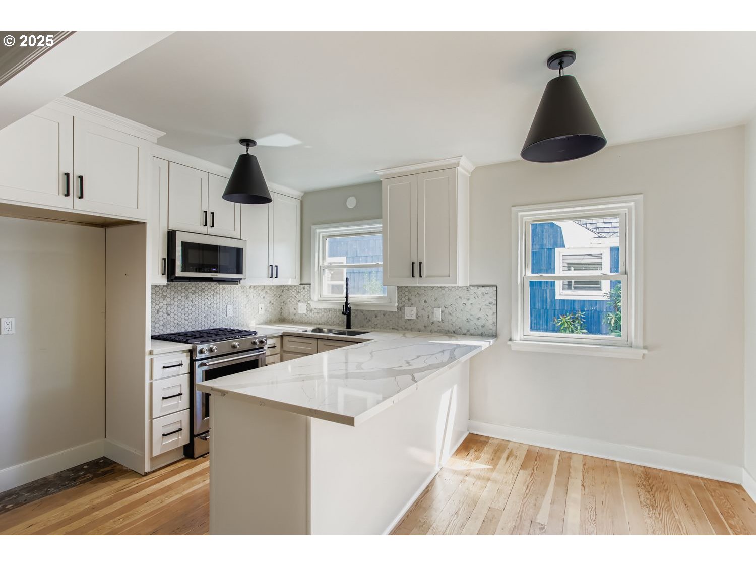 Charming meets modern at 1815 N Ainsworth. This fully remodeled bungalow offers an open, light-filled layout with a sleek kitchen, stylish, bright and open living spaces, and seamless flow for entertaining. Chef’s kitchen features generous storage and a breakfast bar for those casual meals. Open concept living room features a wood burning fireplace for those chilly PNW nights. The home features three bedrooms and three bathrooms, including a stunning primary suite upstairs with a spa-inspired bath and separate shower. Large windows bring in abundant natural light, while the spacious deck and backyard create the perfect setting for entertaining or relaxing. Stylish, functional, and move-in ready—this is the one you’ve been waiting for!