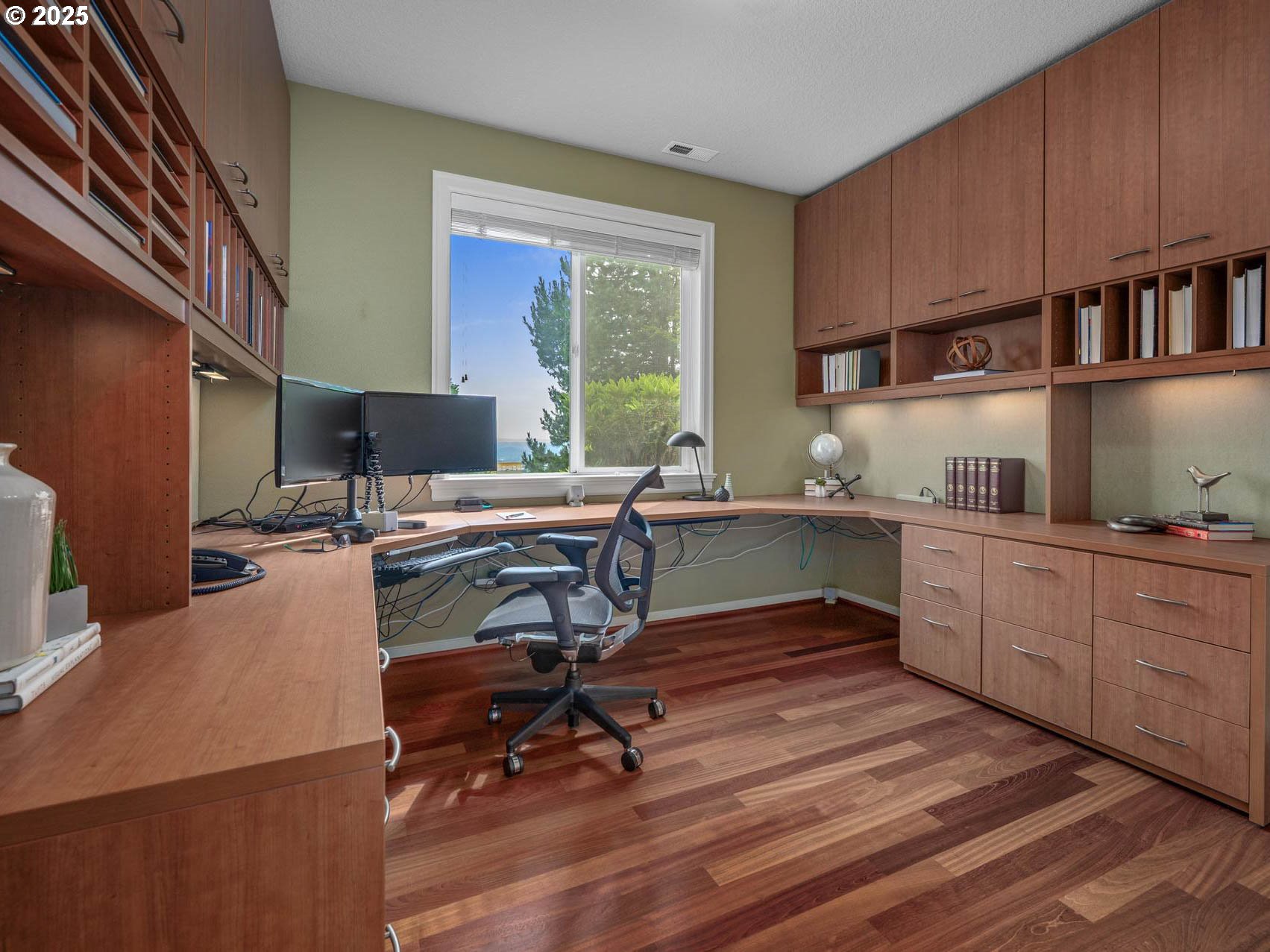 (503) 893-8874From the moment you enter this stunning Cedar Ridge home, the level of detail and craftsmanship is evident, with extensive built-ins, a box beam ceiling, and rich wainscoting. Solid Brazilian cherry hardwood floors are present throughout the home, including all the bedrooms and closets. This home offers the perfect blend of rich detail with a light and bright contemporary floor plan that includes a wonderful kitchen with matte black quartz counters accented with a white porcelain backsplash and high-end appliances. The family room has built-in bookshelves, a fireplace, and access to the large deck, which is the perfect place to take in the extraordinary view of the Tualatin Valley and the Coast Range. There is room for everyone with dual offices - including built-in desks, 4-5 bedrooms, two bonus rooms, and a wine cellar. The luxurious primary suite has a private deck to enjoy the beautiful sunsets, a large bathroom, a walk-in closet, plus a bonus closet/nursery/reading room. The lot is professionally landscaped with a large patio, lush lawn, and tremendous privacy. The owners have meticulously upgraded and maintained the home since it was new and will surely miss the pristine neighborhood and the ideal location just 15-20 minutes to downtown Portland, Nike, and Intel. [Home Energy Score = 3. HES Report at https://rpt.greenbuildingregistry.com/hes/OR10239294]