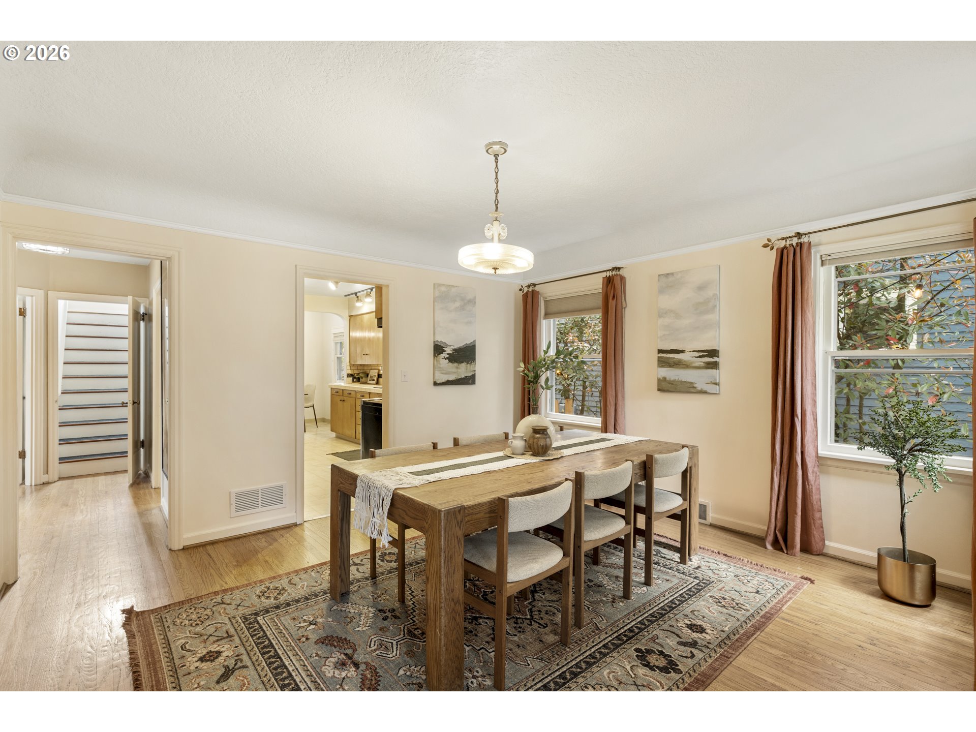 Perfectly positioned on the edge of iconic Ladd’s Addition, this charming and well-maintained home offers the ideal blend of character, comfort, and unbeatable close-in convenience. Featuring 3 spacious bedrooms, including an expansive upper-level suite with a half bath, plus two bedrooms on the main level, the layout provides flexibility for a variety of living needs. Classic details shine throughout with coved ceilings, hardwood floors, and generously sized living spaces, while the retro-inspired kitchen, complete with a copper backsplash that adds a unique and timeless touch.Recent updates include a brand-new tear-off roof (August 2023), updated stainless steel appliances, and thoughtfully refreshed landscaping with native plants, creating both beauty and a more natural setting that’s easier to maintain.The lower level creates an inviting bonus space with vintage knotty pine paneling and a built-in bar, perfect for entertaining or relaxing. Outside, enjoy private alley access, off-street parking, a detached single-car garage, and a backyard ready for summer evenings (yes, including your own plum trees).With a near-perfect 95 walk score and 100 bike score, you’re just moments from Portland’s best restaurants, shops, parks, and easy freeway access. Truly the best of Eastside living right at your doorstep.