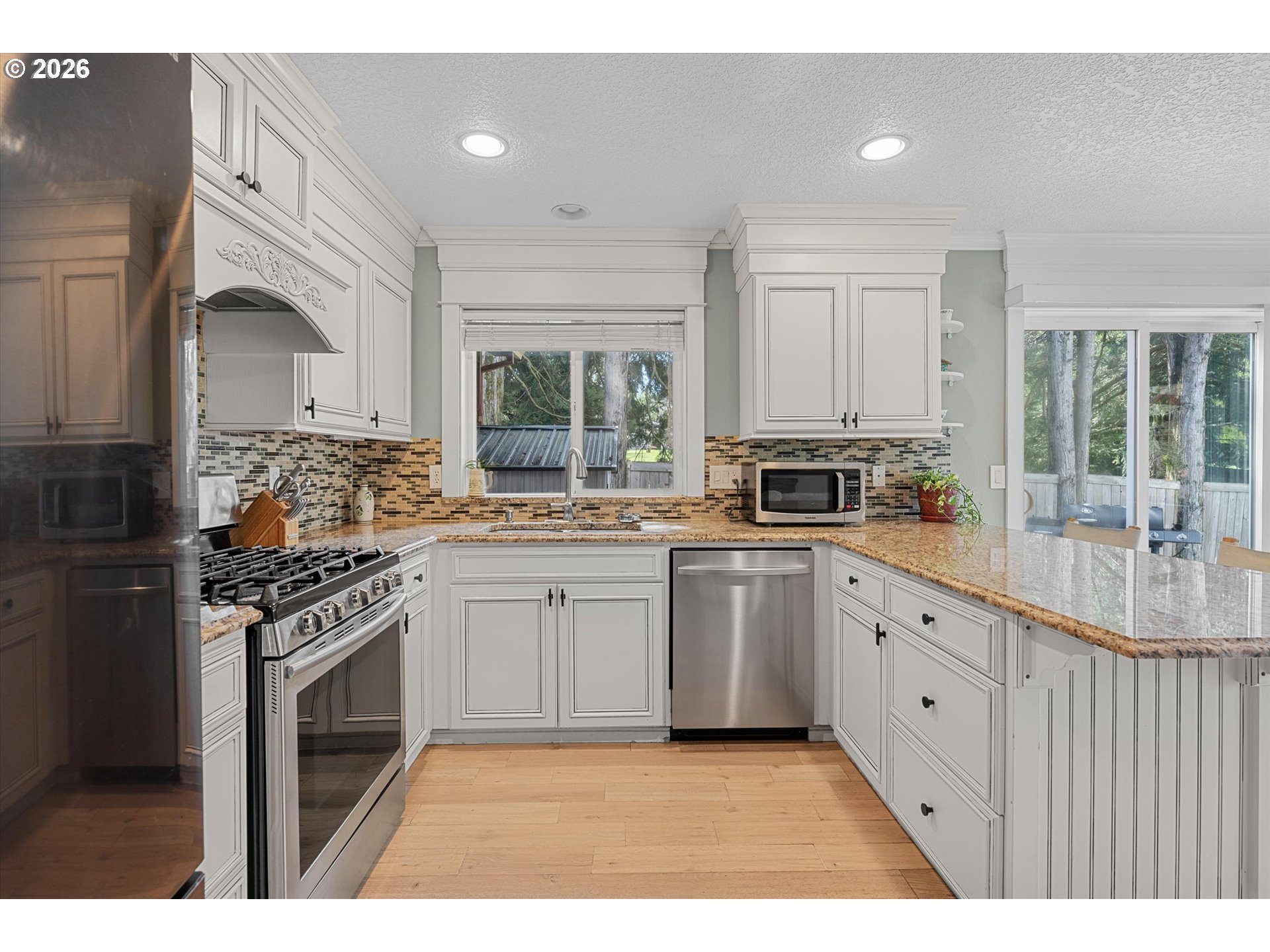 Welcome to this inviting home in the heart of Troutdale, offering a perfect blend of comfort, style, and functionality. Hardwood floors and crown molding add timeless character throughout the main living spaces, while the windows invite in abundant natural light, creating a bright and welcoming atmosphere.The kitchen features granite countertops and a thoughtful layout, ideal for both everyday living and entertaining. Just off the main living area, step outside to a spacious patio, perfect for hosting gatherings or simply enjoying the peaceful backyard setting.Upstairs, the well-designed floor plan provides separation and privacy, with all bedrooms thoughtfully positioned on the upper level. The primary suite includes a walk-in closet and an en suite bathroom, offering a comfortable retreat at the end of the day.Located within close proximity from McMenamins Edgefield, this home offers convenient access to dining, entertainment, and local amenities while still maintaining a quiet neighborhood feel.A wonderful opportunity to enjoy easy living in a desirable Troutdale location.