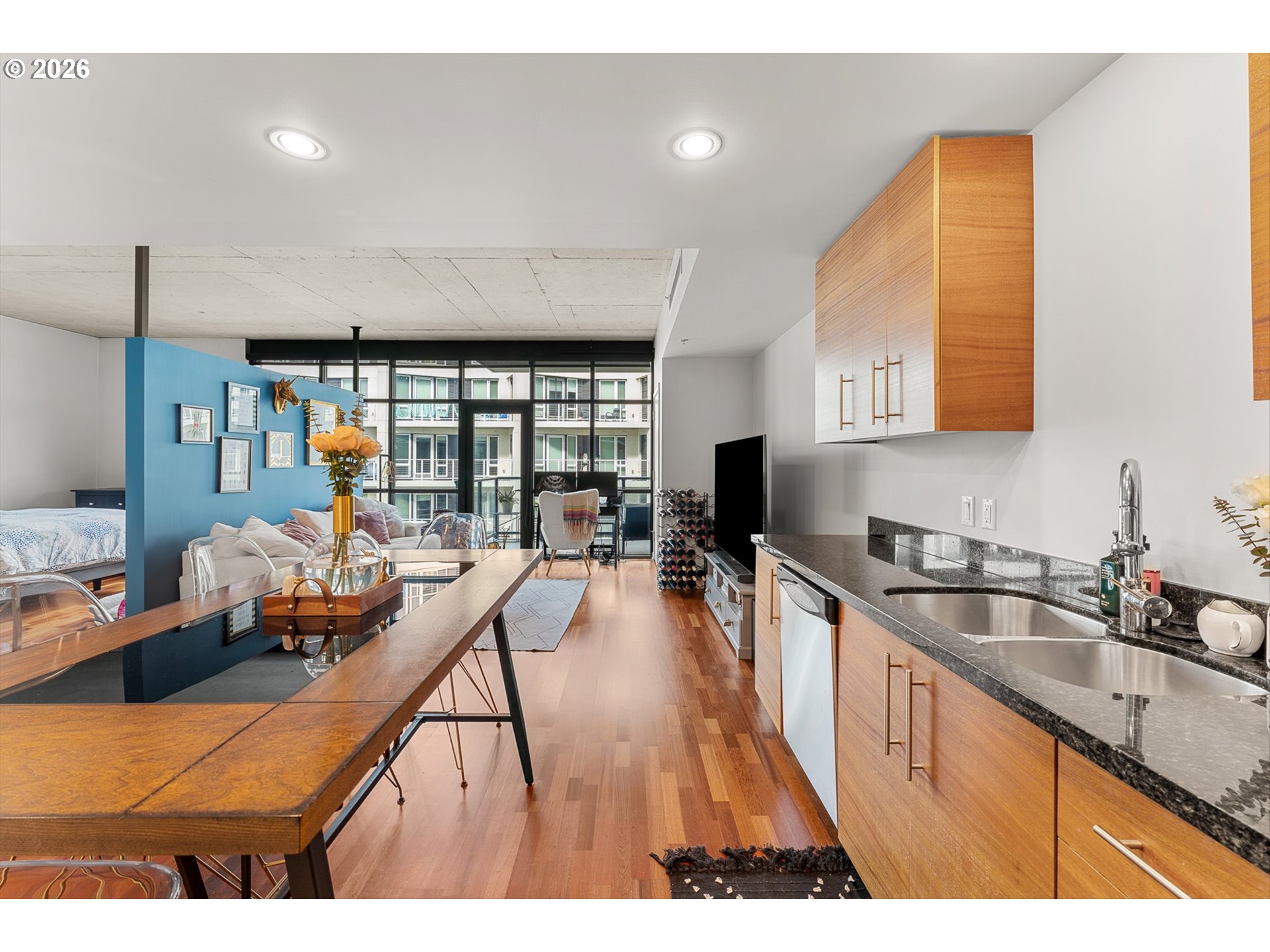 Classy,Stylish condo with river and city views. River front access from common area. Stroll or bike the serene River esplanade. 10 foot ceilings and floor to ceiling windows. Granite counters, kitchen pantry. Extra storage and closet space. Homeowner pays monthly PGE bill....all other amenities included in the monthly HOA dues:water, sewer, cable, and gas, internet. Enjoy care free living!! Walking distance to nearby parks, Slab town and The Pearl District.