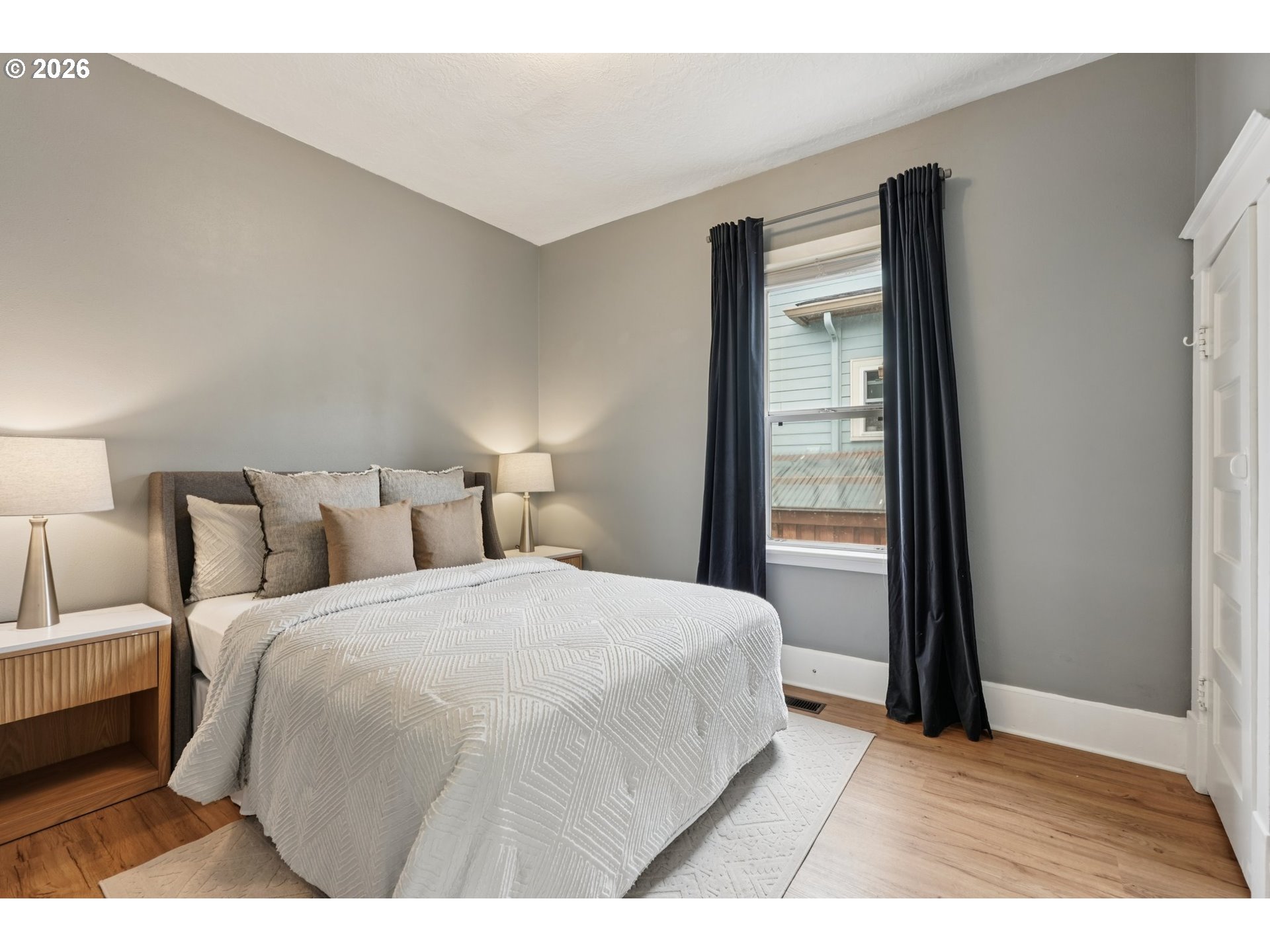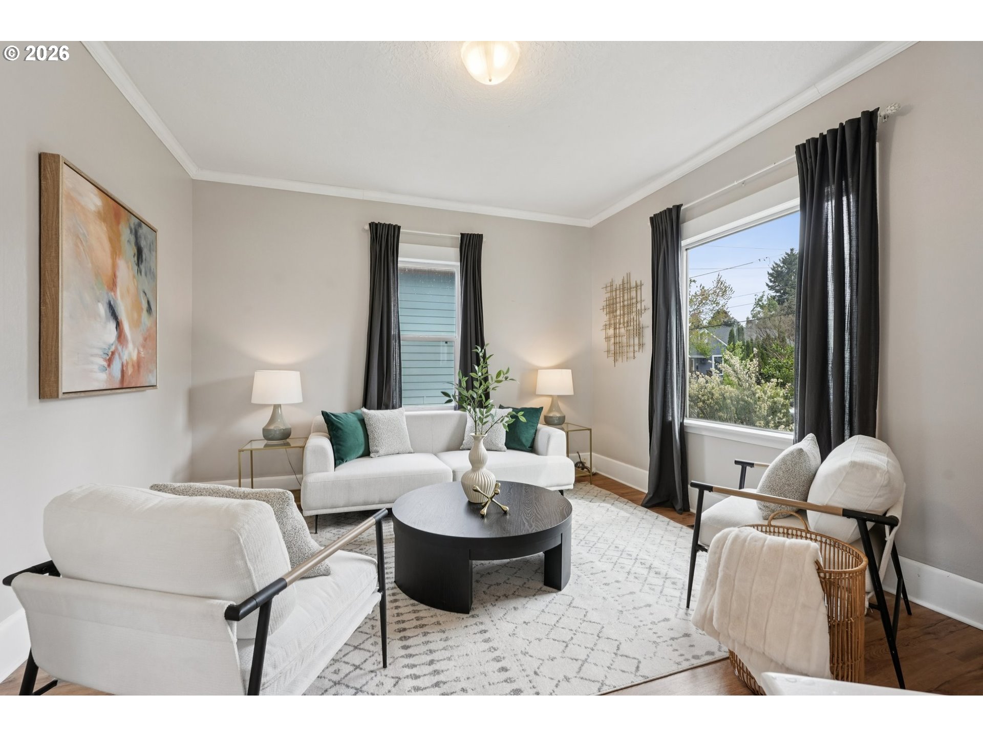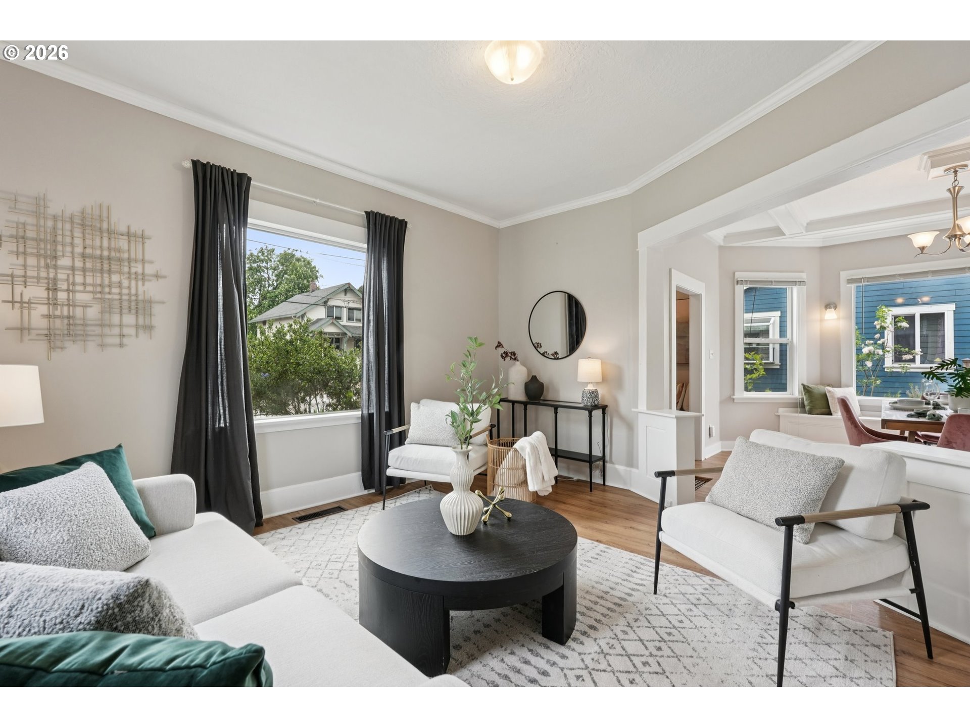 Charming Sellwood bungalow nestled on a level lot in one of SE Portland’s most sought-after neighborhoods. This 2-bedroom, 1-bath home offers classic character with a functional layout, including a full basement for added storage or future potential. The light-filled interior provides a comfortable living space, while the exterior shines with a beautifully established garden featuring English shrub roses, raised beds for vegetables and fruit, and two prolific Italian plum trees.Enjoy outdoor living in the spacious backyard—perfect for gardening, relaxing, or entertaining. A private driveway offers convenient off-street parking. Located near parks, shops, and all the charm Sellwood has to offer, this home presents a wonderful opportunity to own a piece of Portland character with room to make it your own. [Home Energy Score = 3. HES Report at https://rpt.greenbuildingregistry.com/hes/OR10013197]