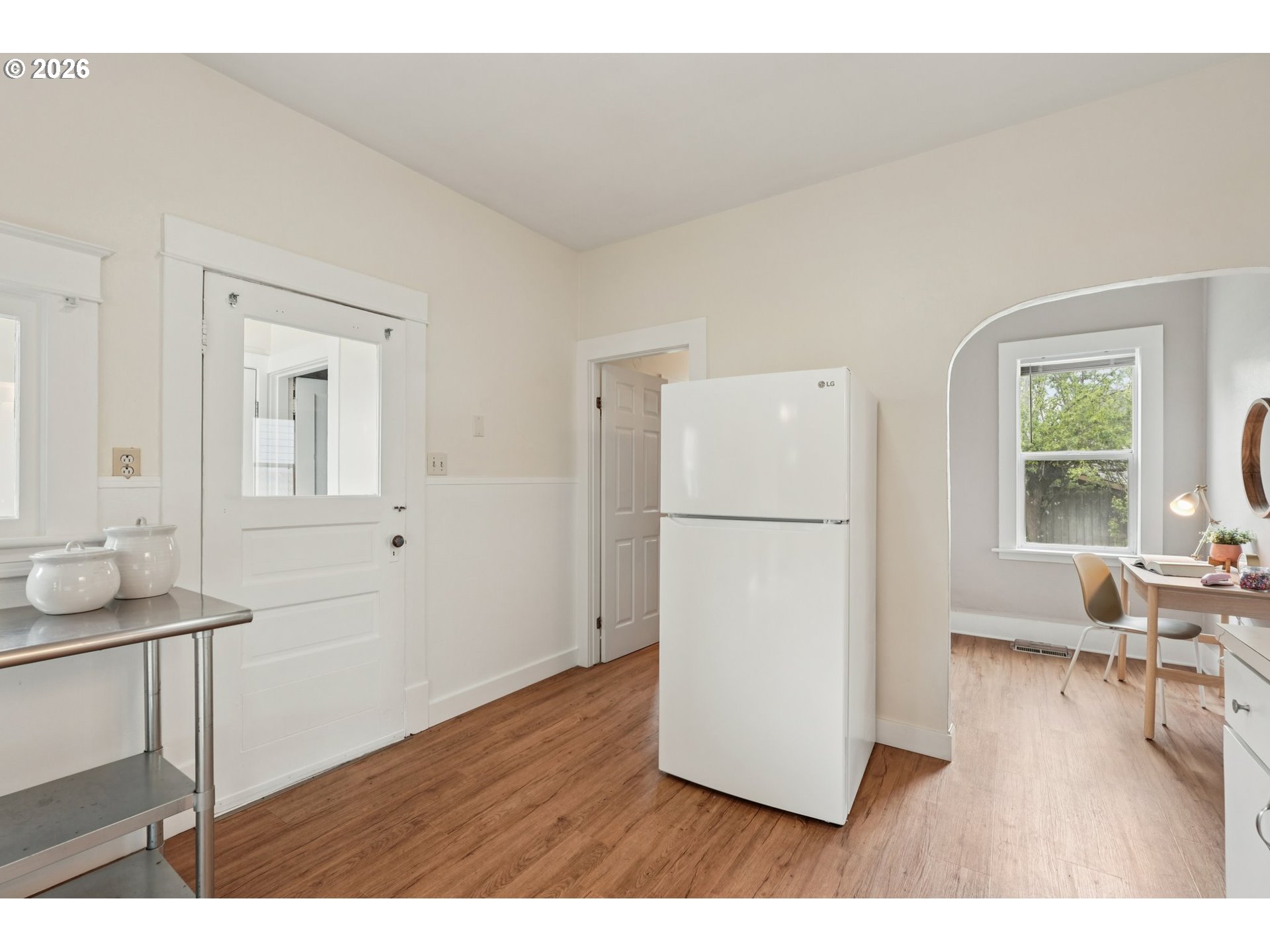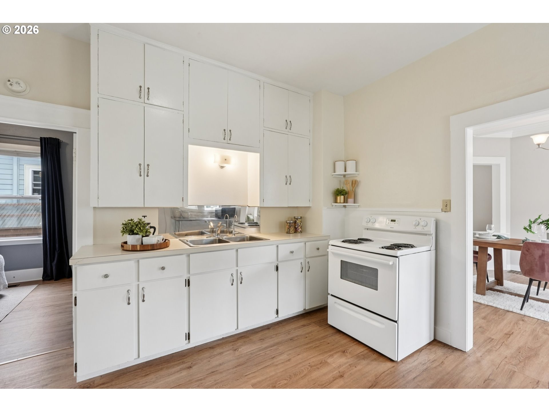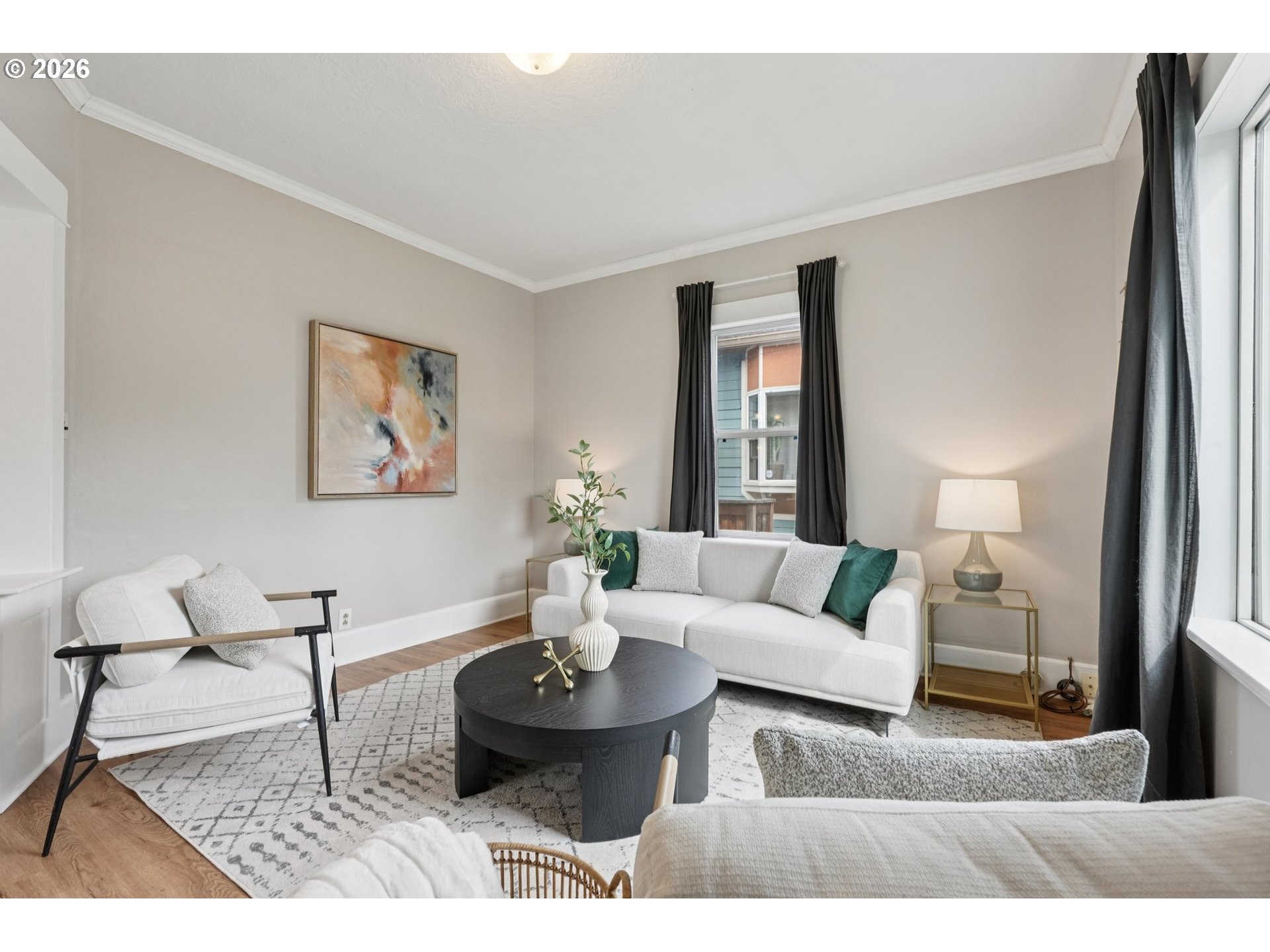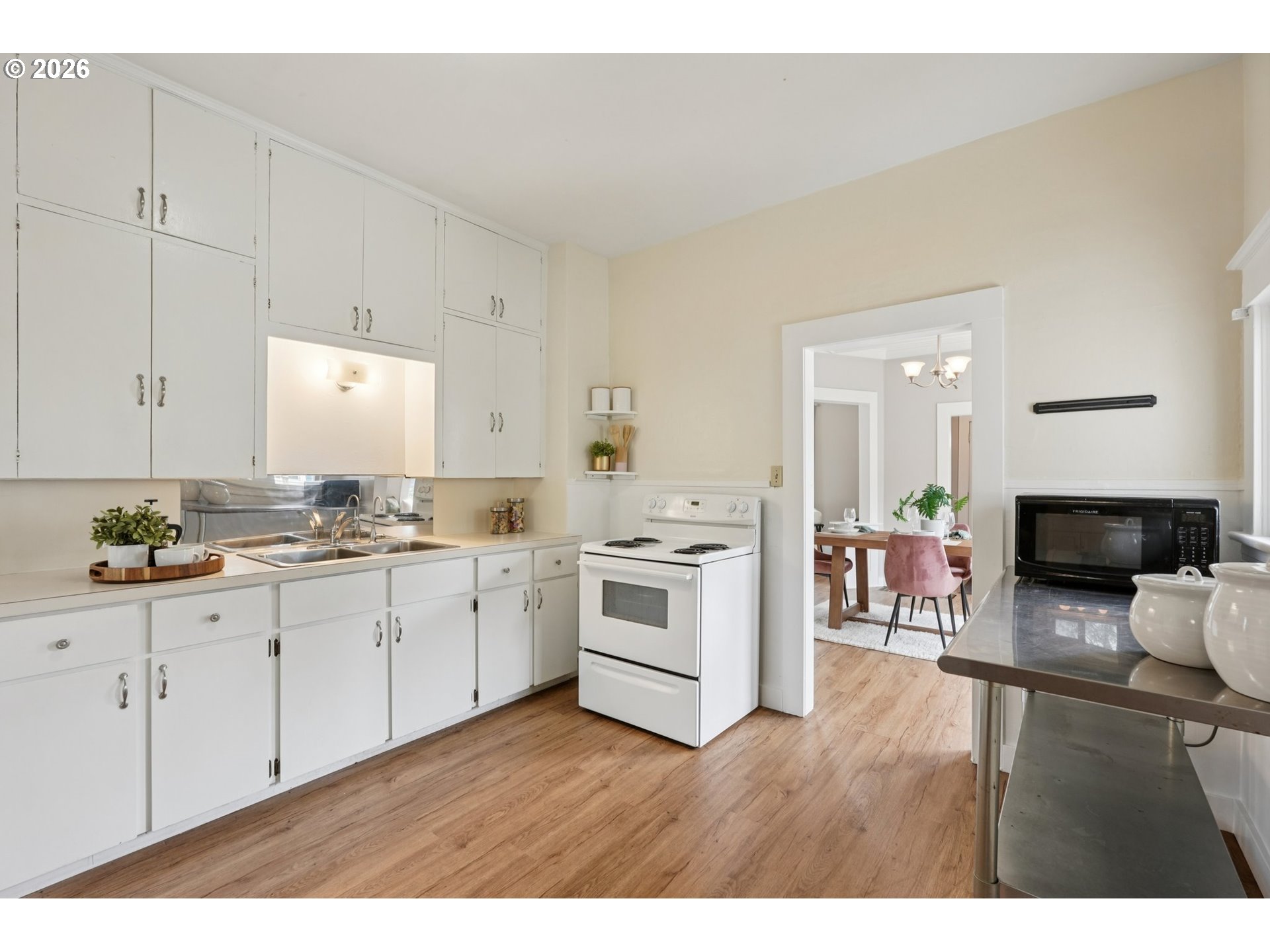 Charming Sellwood bungalow nestled on a level lot in one of SE Portland’s most sought-after neighborhoods. This 2-bedroom, 1-bath home offers classic character with a functional layout, including a full basement for added storage or future potential. The light-filled interior provides a comfortable living space, while the exterior shines with a beautifully established garden featuring English shrub roses, raised beds for vegetables and fruit, and two prolific Italian plum trees.Enjoy outdoor living in the spacious backyard—perfect for gardening, relaxing, or entertaining. A private driveway offers convenient off-street parking. Located near parks, shops, and all the charm Sellwood has to offer, this home presents a wonderful opportunity to own a piece of Portland character with room to make it your own. [Home Energy Score = 3. HES Report at https://rpt.greenbuildingregistry.com/hes/OR10013197]