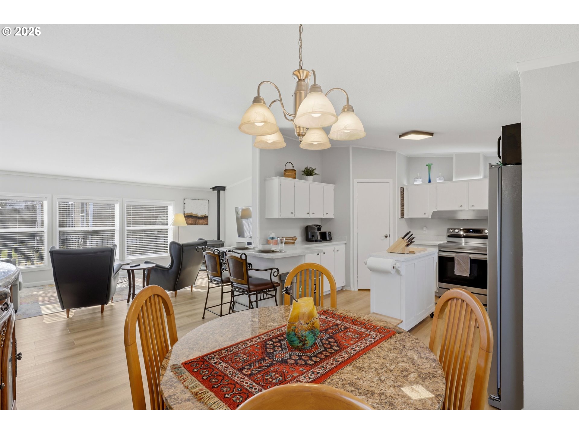 Beautifully remodeled manufactured home located at the end of a quiet cul-de-sac in a peaceful 55+ community. This move-in ready home features new interior and exterior paint and durable luxury vinyl flooring throughout.The updated kitchen is designed for both function and style with an island, eating bar, walk-in pantry, Corian countertops, and stainless steel appliances. The bright living room offers vaulted ceilings and desirable southwest exposure for great natural light.The spacious primary suite includes a walk-in closet, double sinks, walk-in shower, premium master carpet w/plush pad and completely updated plumbing. The guest bathroom has also been fully remodeled with a tub/shower combination. Two additional large bedrooms offer generous closet space and provide flexibility for guests, office space, or hobbies.Conveniently located near shopping, schools, and daily amenities, this home provides an excellent opportunity for first-time buyers, downsizers, or investors.Enjoy outdoor living with a covered porch, front deck, oversized carport with motion sensor lighting, and a large fenced yard. A nicely sized tool shed provides excellent extra storage. The large utility room includes washer and dryer. Home is equipped with an electric heat pump providing efficient heating and air conditioning.Quiet neighborhood setting while still convenient to everyday amenities.Conveniently located near shopping, schools, and daily amenities, this home provides an excellent opportunity for first-time buyers, downsizers, or investors. Move-in ready and offering great value for rent space vs. other parks. This property is a must-see.