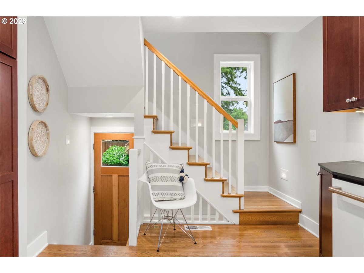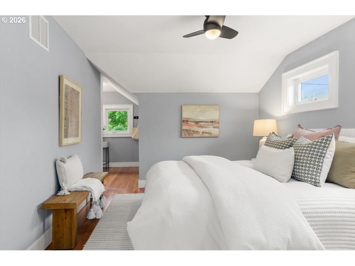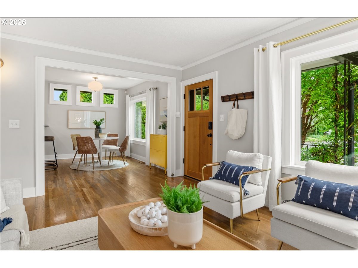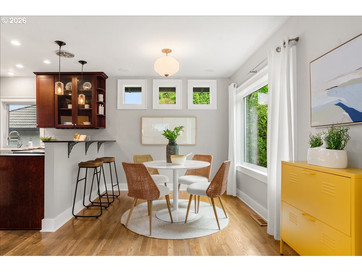 A refined blend of vintage character and modern design, this impeccably maintained Westmoreland residence offers thoughtful updates and effortless livability. An inviting covered front porch welcomes you into a light-filled interior, where freshly painted walls, warm hardwood floors, and a gas fireplace create a sense of easy, elevated comfort. The kitchen is both polished and practical—beautifully appointed for everyday living as well as relaxed entertaining. The flexible layout features a bedroom and a full bathroom on each level, providing ideal separation of space for guests, multi-generational living, or work-from-home needs. The lower level has new carpet throughout, high ceilings, laundry room and abundant storage. A fully fenced backyard offers room to relax, garden, or gather, while the detached garage has plenty of space for bicycles, kayaks, and other Pacific Northwest essentials. Located in beloved Westmoreland, blocks to award-winning parks, Oaks Bottom Wildlife Refuge, restaurants and bars, boutique shopping, and other vibrant neighborhood amenities. Minutes to downtown and major highways, making it easy to experience all that Portland has to offer. [Home Energy Score = 4. HES Report at https://rpt.greenbuildingregistry.com/hes/OR10243959]