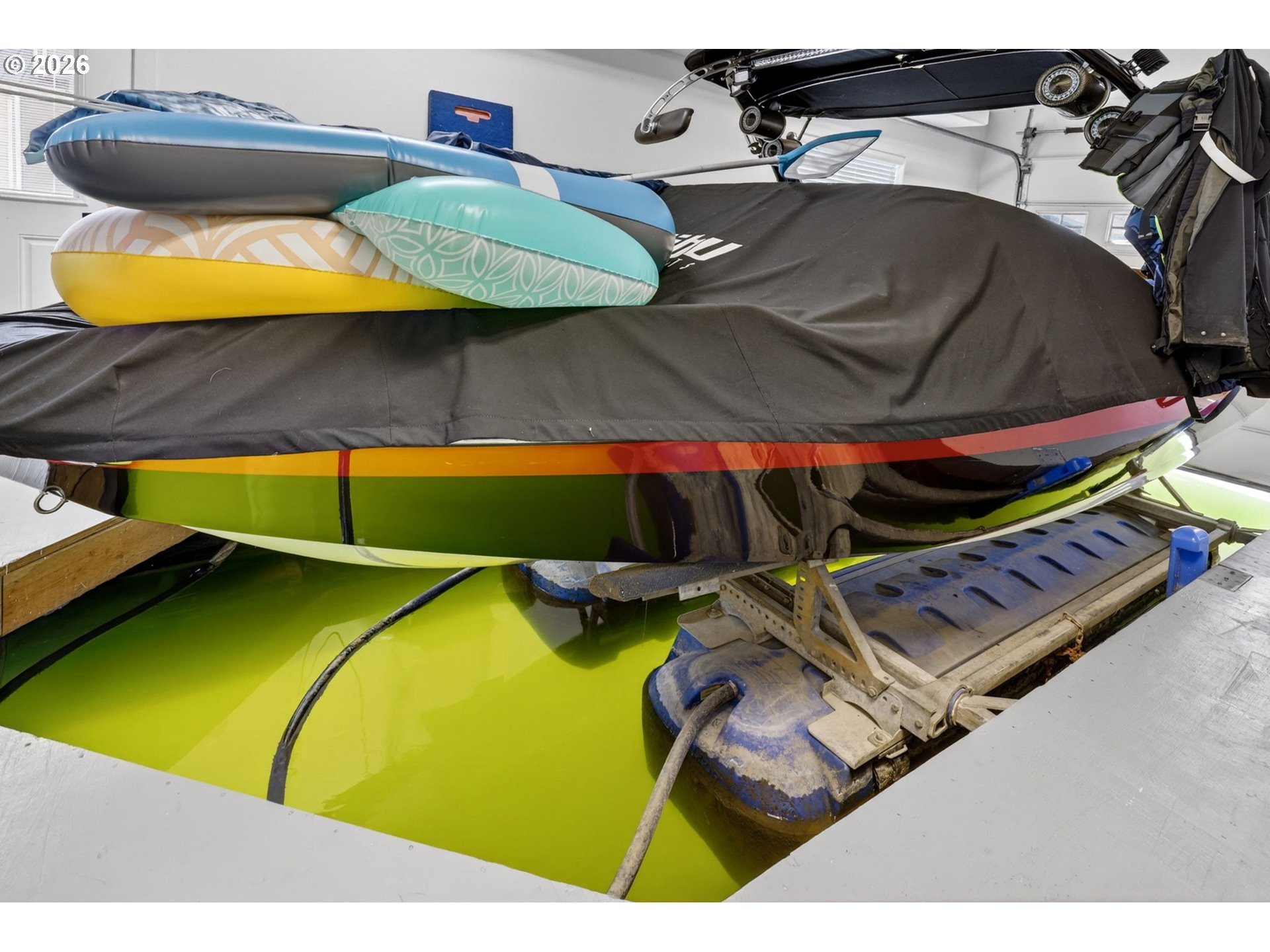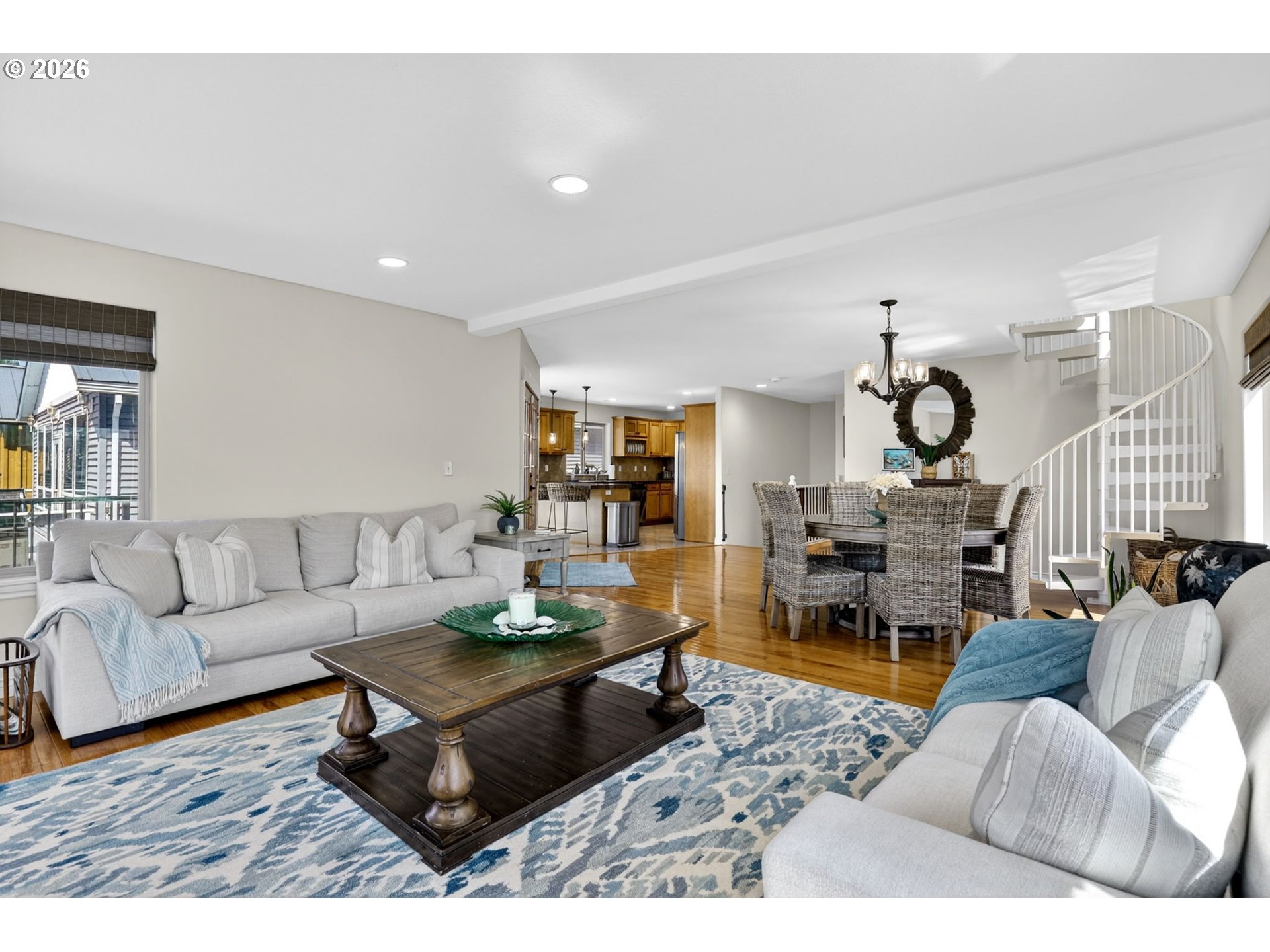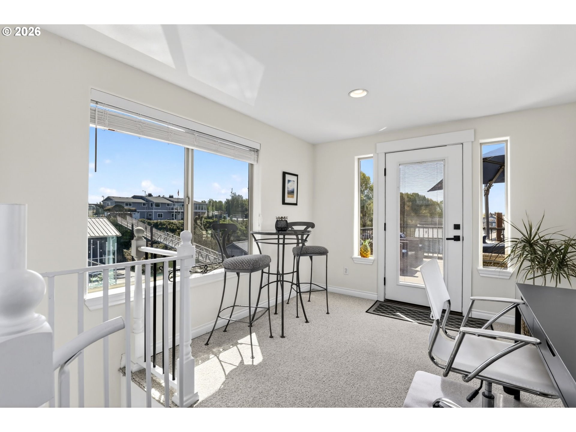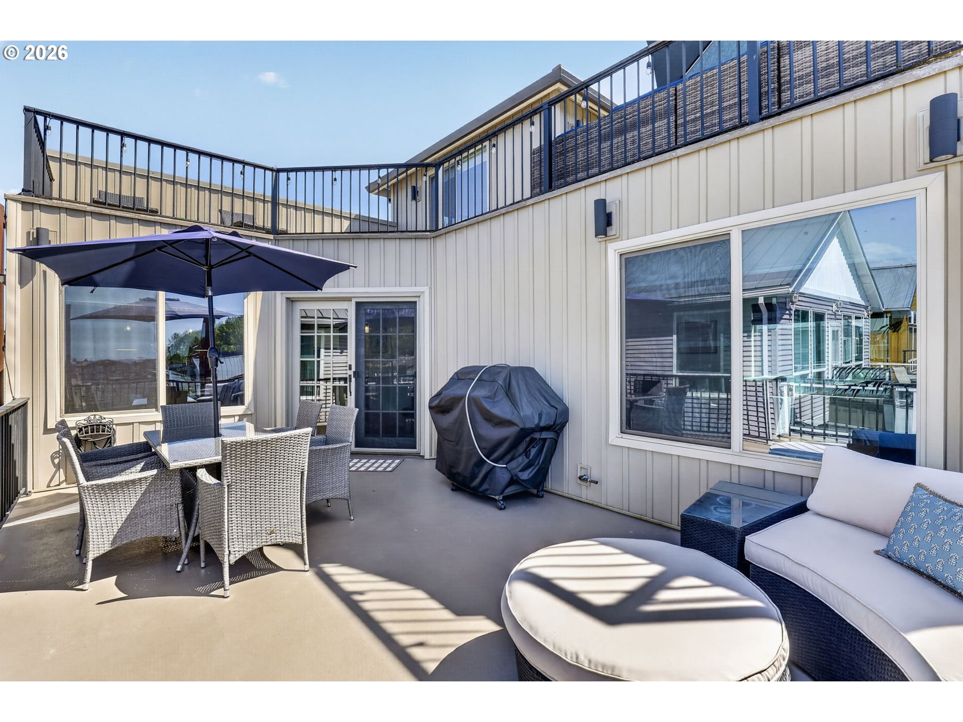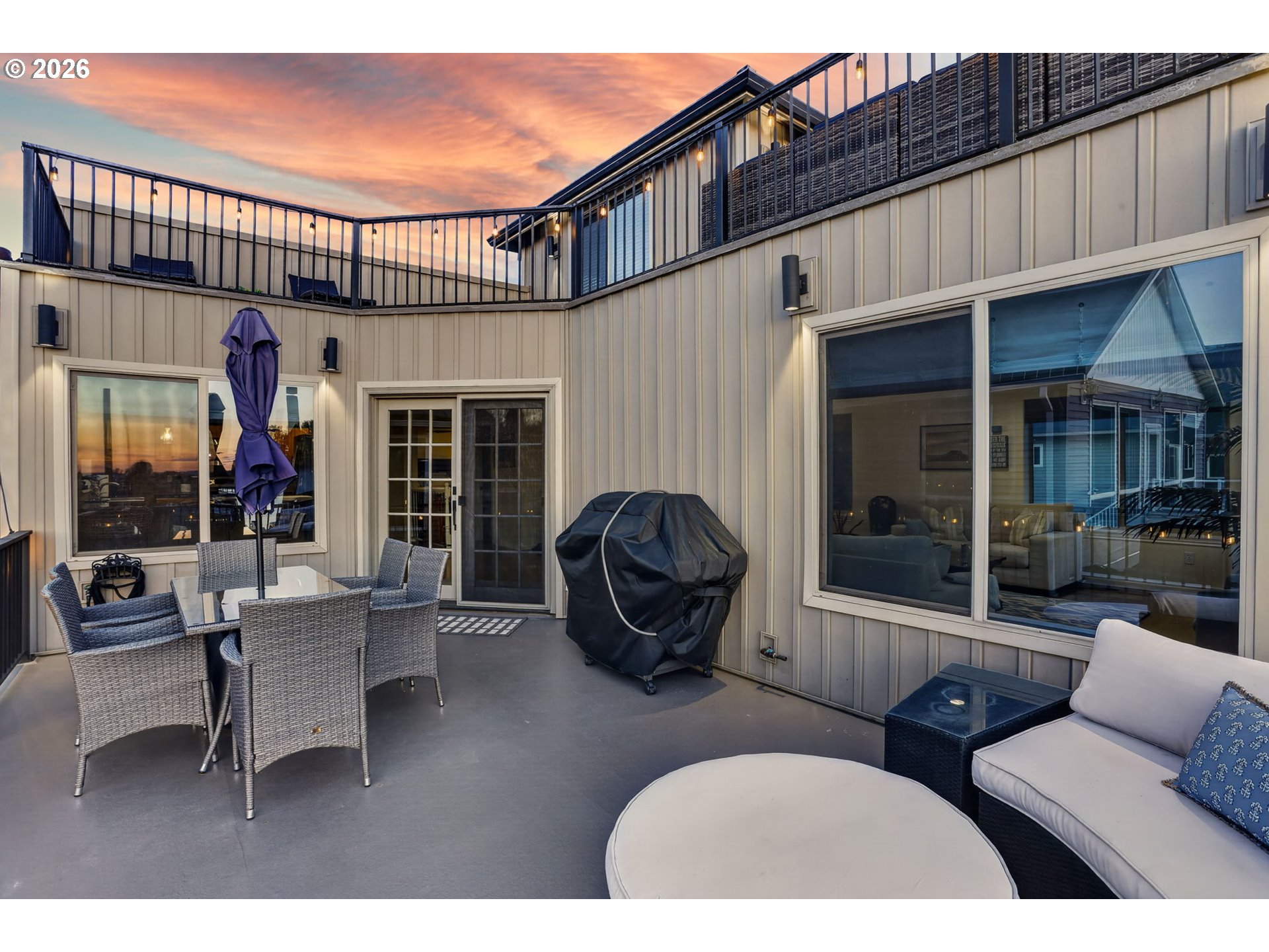 Breathtaking Columbia Ridge Moorage Retreat. Experience elevated waterfront living in this spacious, light-filled end-row home boasting Mt. Hood and Columbia River views. Perfectly positioned near the west edge of the gorge, this unique residence offers a front-row seat to the natural beauty of the Pacific Northwest. This home features a primary on the upper level with an attached ensuite offering a jetted-tub, walk in closet and dual sinks. Open floor plan from the kitchen to the great room with a gas fireplace, french doors to a back deck for entertaining and relaxing and beautiful views of the river. On the lower level you will find two additional bedrooms, a family hall bath, and family room with access to the back deck. Just a short boat ride to the mouth of the Sandy River, you’ll enjoy world-class salmon fishing and unforgettable scenery right at your doorstep. This floating home has it's own private boat well with a lift to house a 23ft boat. In addition there is a generous 12’ x 40’ space at the front of the home giving opportunity for a floating patio for entertaining or relaxing under the sunset, extra storage or park your water crafts. Expansive outdoor living spans three decks, each capturing some of the most striking views in the Portland area. Inside, natural light pours through every level, highlighting thoughtful design and spacious interiors offering new trim, new window coverings, new hardware, new mirrors, light fixtures. Climb the spiraling staircase to the third-story den/office offers an inspiring home office retreat — leading out to an oversized deck for taking in the panoramic river vista views and sunsets. Across Marine Dr there is the South parking lot which is gated and secure to park your RV/boat, storage, plus additional parking for guests or overflow, and enjoy the bike & walking paths. This home floats across from McGuire Island, and is 10-15 minutes from the PDX airport.