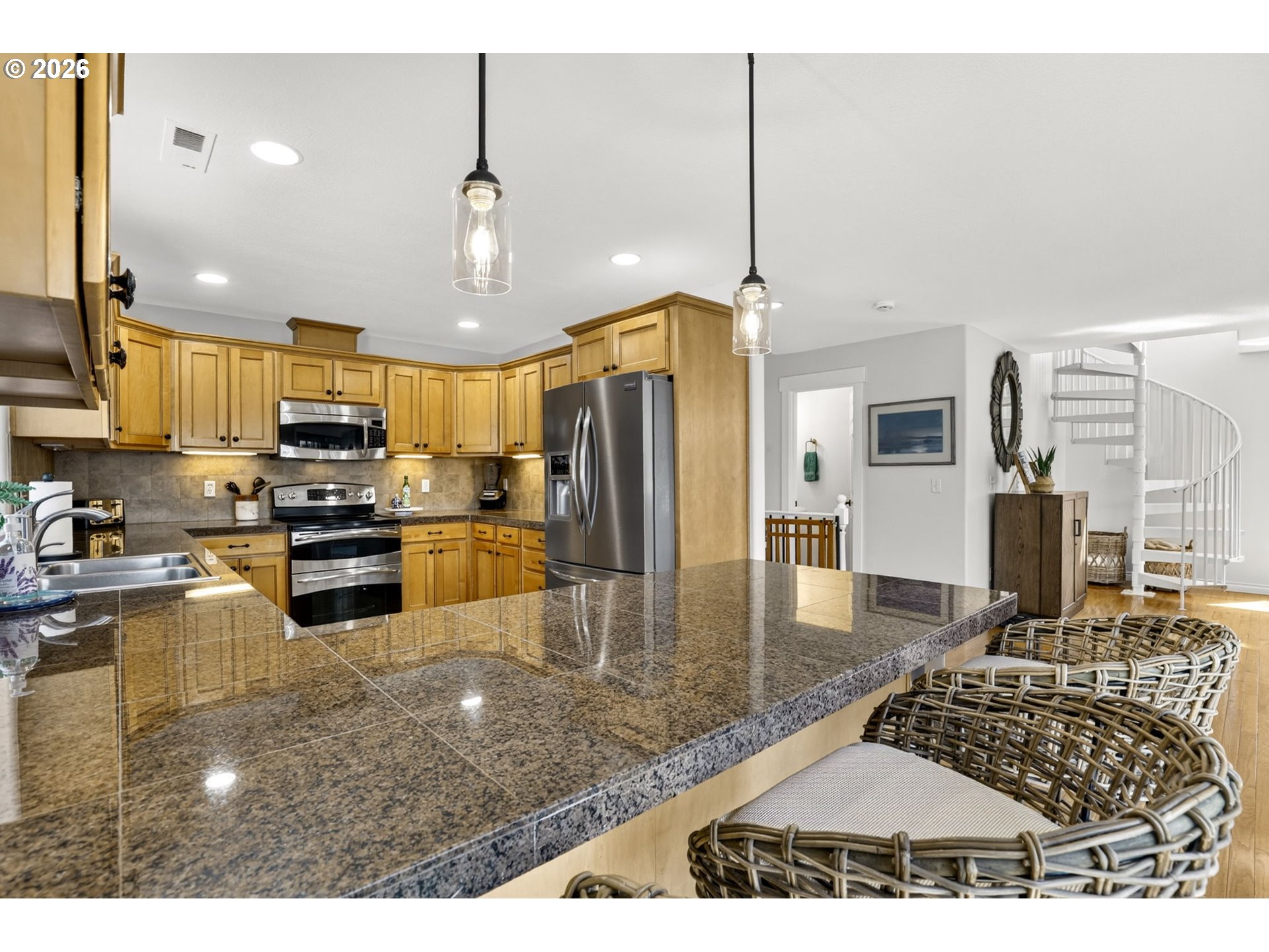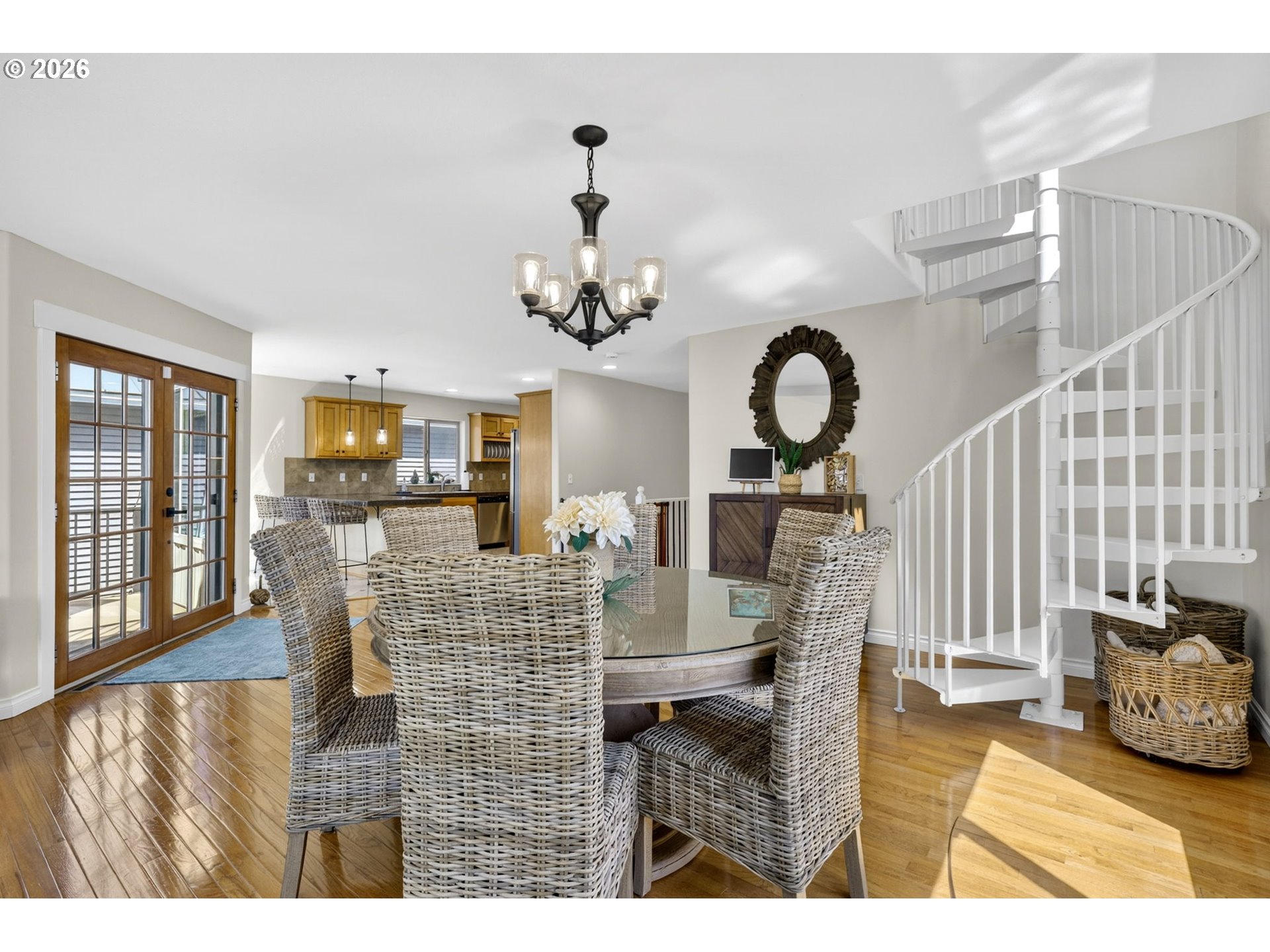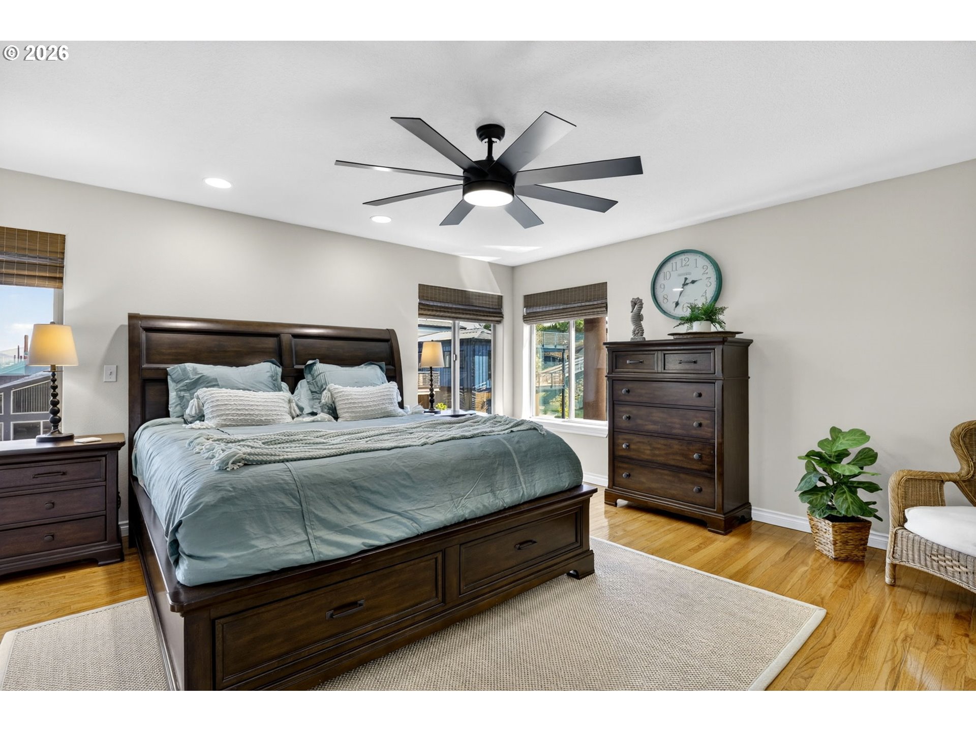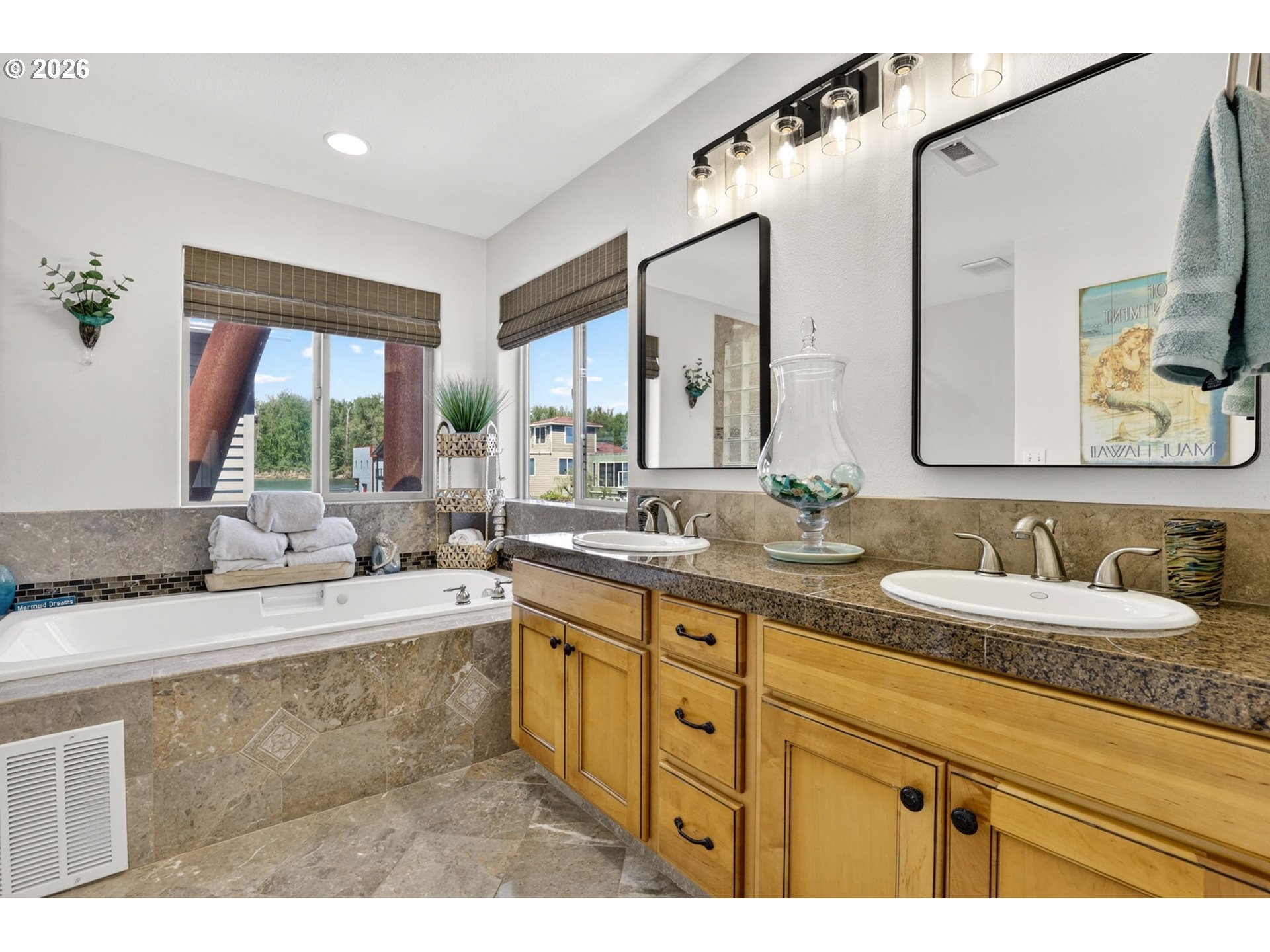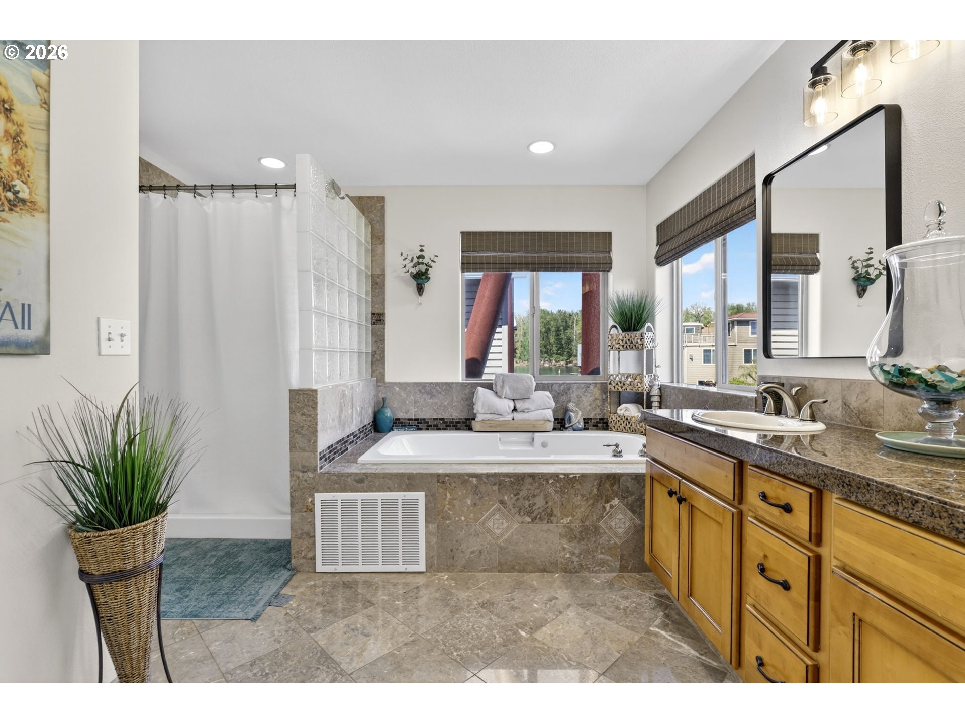 Breathtaking Columbia Ridge Moorage Retreat. Experience elevated waterfront living in this spacious, light-filled end-row home boasting Mt. Hood and Columbia River views. Perfectly positioned near the west edge of the gorge, this unique residence offers a front-row seat to the natural beauty of the Pacific Northwest. This home features a primary on the upper level with an attached ensuite offering a jetted-tub, walk in closet and dual sinks. Open floor plan from the kitchen to the great room with a gas fireplace, french doors to a back deck for entertaining and relaxing and beautiful views of the river. On the lower level you will find two additional bedrooms, a family hall bath, and family room with access to the back deck. Just a short boat ride to the mouth of the Sandy River, you’ll enjoy world-class salmon fishing and unforgettable scenery right at your doorstep. This floating home has it's own private boat well with a lift to house a 23ft boat. In addition there is a generous 12’ x 40’ space at the front of the home giving opportunity for a floating patio for entertaining or relaxing under the sunset, extra storage or park your water crafts. Expansive outdoor living spans three decks, each capturing some of the most striking views in the Portland area. Inside, natural light pours through every level, highlighting thoughtful design and spacious interiors offering new trim, new window coverings, new hardware, new mirrors, light fixtures. Climb the spiraling staircase to the third-story den/office offers an inspiring home office retreat — leading out to an oversized deck for taking in the panoramic river vista views and sunsets. Across Marine Dr there is the South parking lot which is gated and secure to park your RV/boat, storage, plus additional parking for guests or overflow, and enjoy the bike & walking paths. This home floats across from McGuire Island, and is 10-15 minutes from the PDX airport.