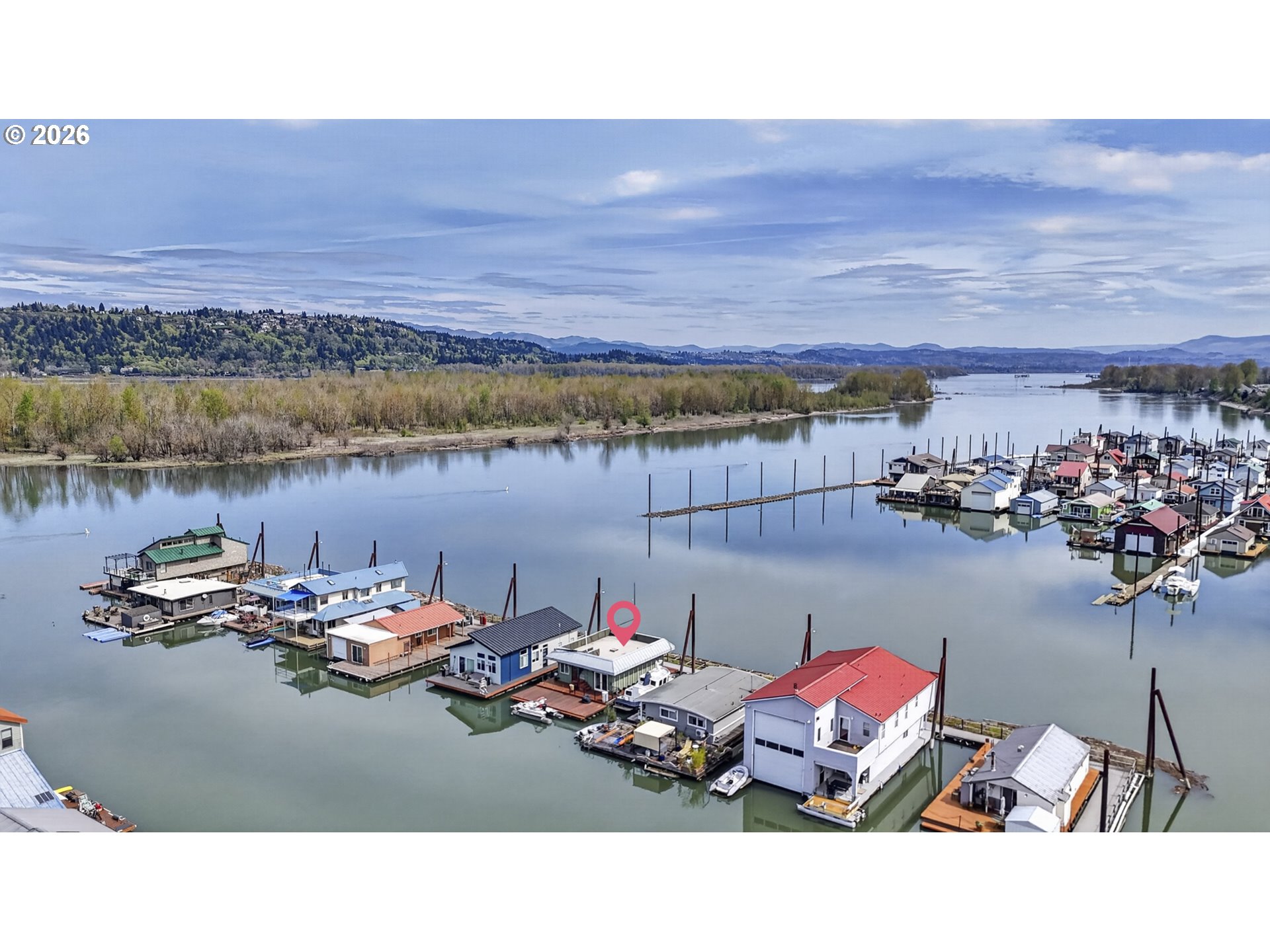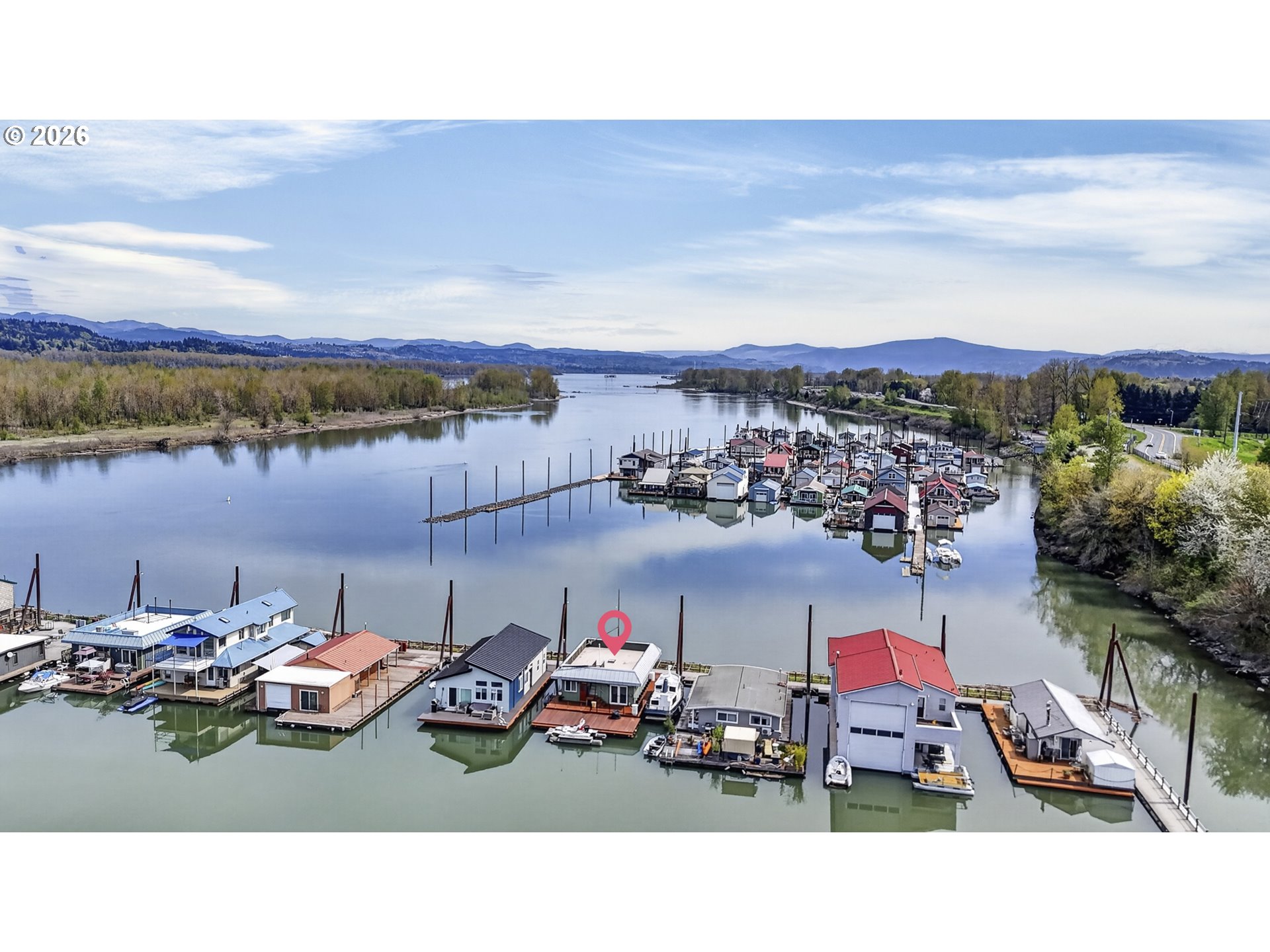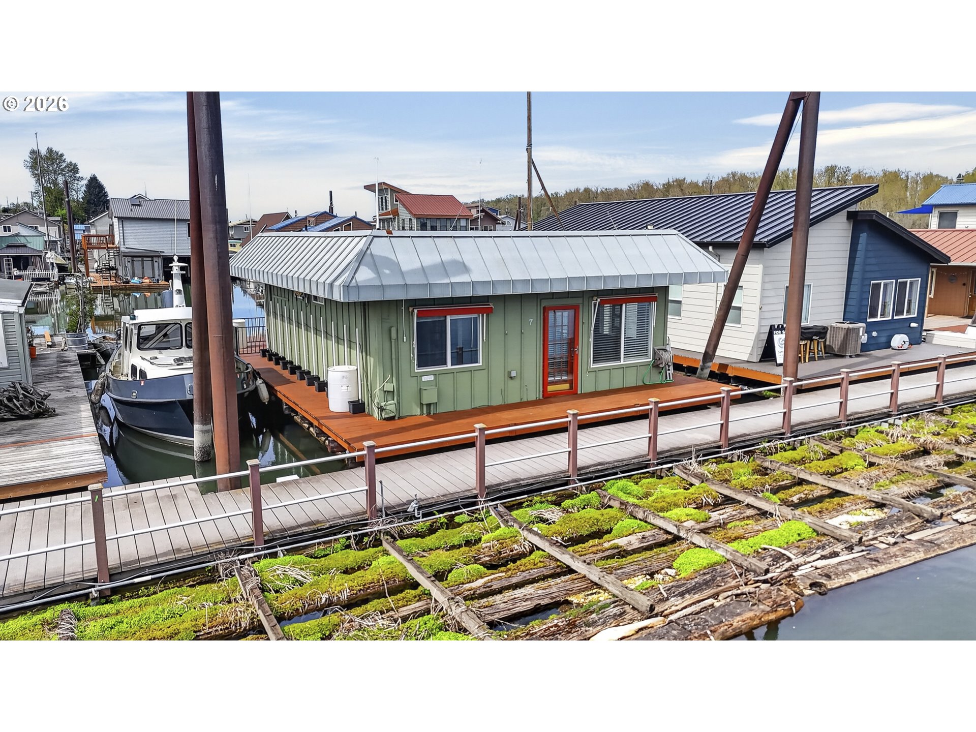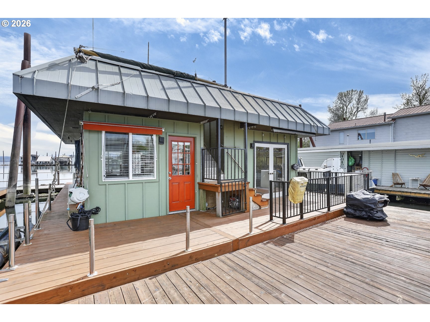 Rare A row view slip with unobstructed sunrise views to the East! Take in 360 degree river, island, & territorial views from the incredible roof top deck with new membrane roof in 2025' with transferrable warranty! This cozy custom style home lives large for its size with 2 full bathrooms and 2 bedrooms (2nd bedroom non-conforming / no closet), a well-appointed kitchen, and loads of outdoor space which is what river living is all about! The updated kitchen comes with a complete appliance package, granite countertops, and an eating bar with room for a small dinette. Downsizing, condo alternative, or simply looking to get on the river at an affordable price? How about in an ownership moorage with one-of-a-kind views and turn-key living? This may be the home you've been waiting for! Cash only due to float condition, perfectly livable as-is for years to come or complete float repairs for ability to refinance and solid for decades. Over $45k in recent upgrades to include: New membrane roof, newer deck boards, newer swim float, interior upgrades. A true highlight of this home is the ample outdoor space including a roof top deck with 360 degree river, island, & sunrise views to the East! Unique nautical themed mast & Boom set up on the roof deck for sheltered summertime sleeping quarters... a heavenly spot to lay one's head to rest & awake to the sunrise & the sounds of area wildlife. Loads of value here in a premium slip location & owned slip, room to park your boat and watercraft with no added moorage fees, & loads of outdoor space! All for under $280k with low taxes at $1105yr & your river lifestyle aspirations can be achieved!