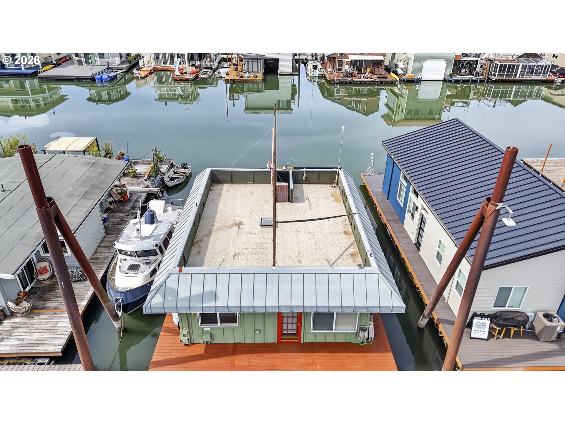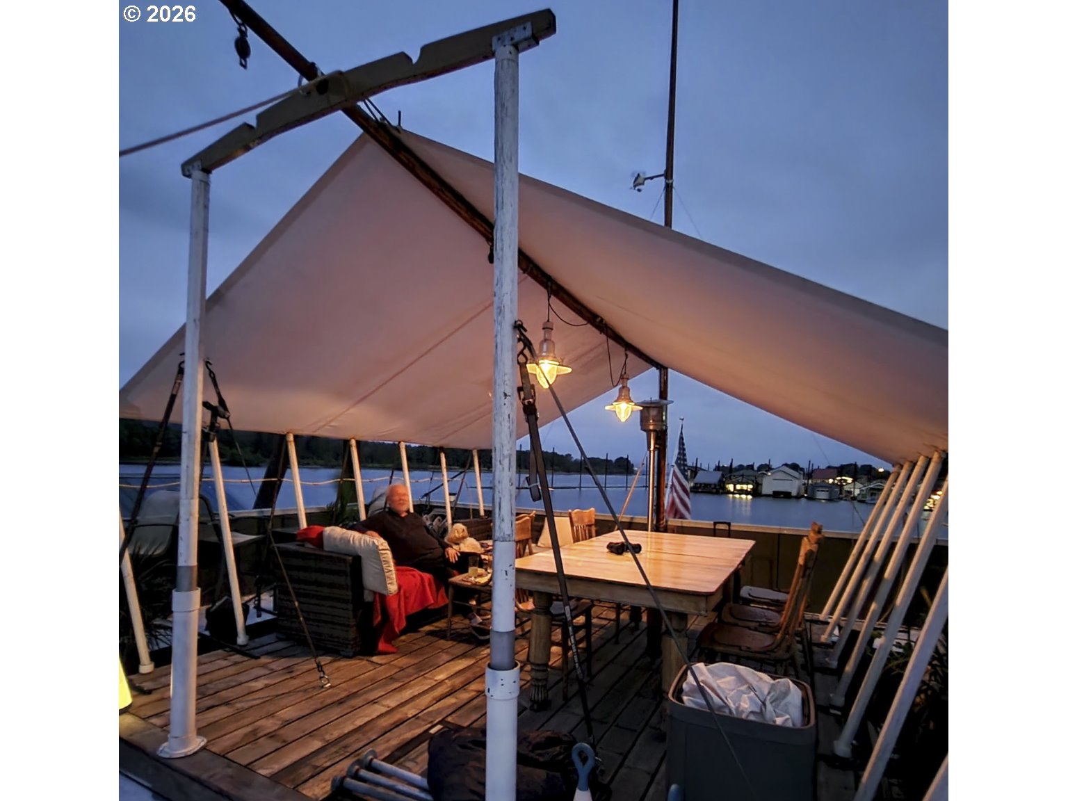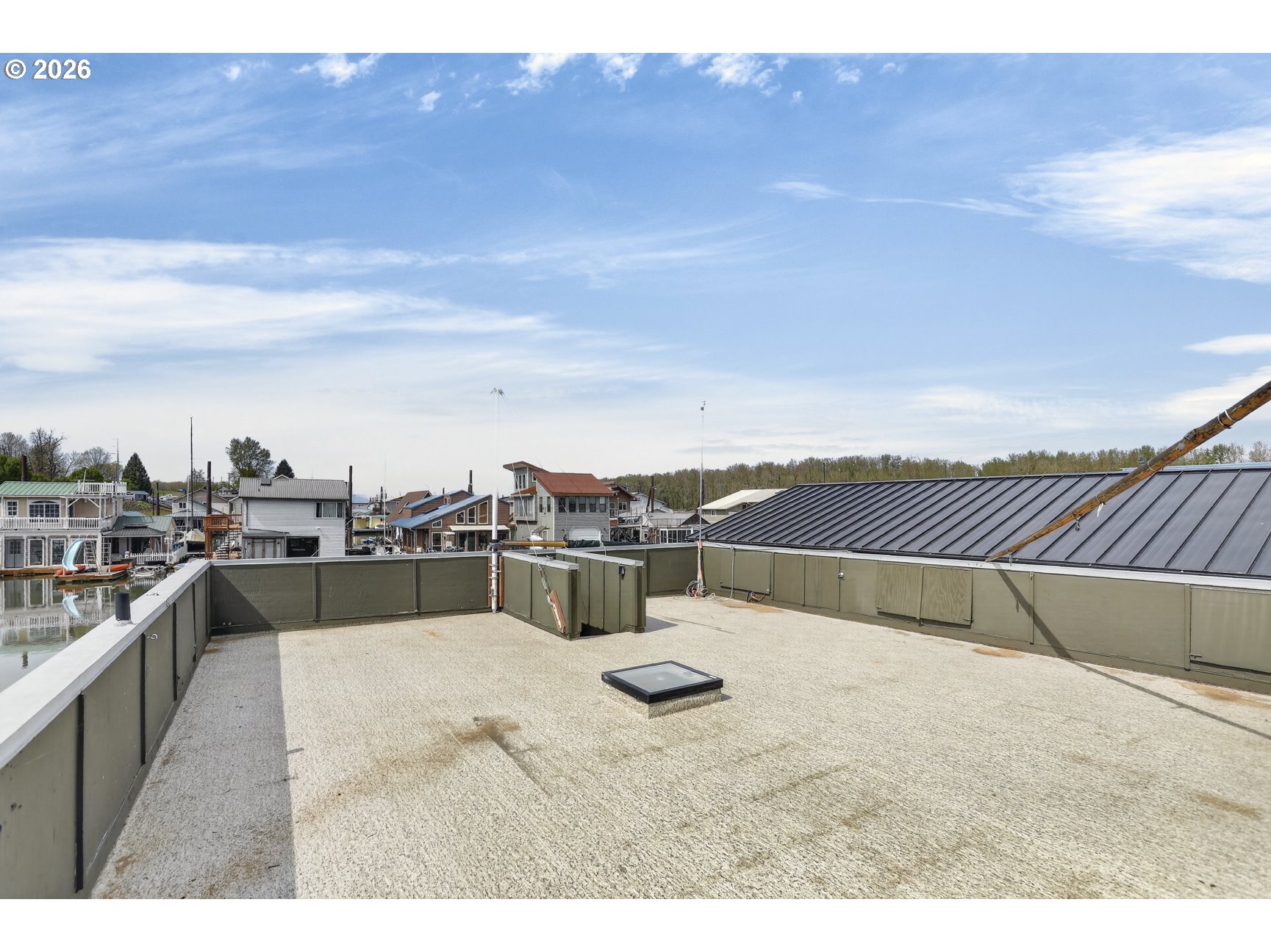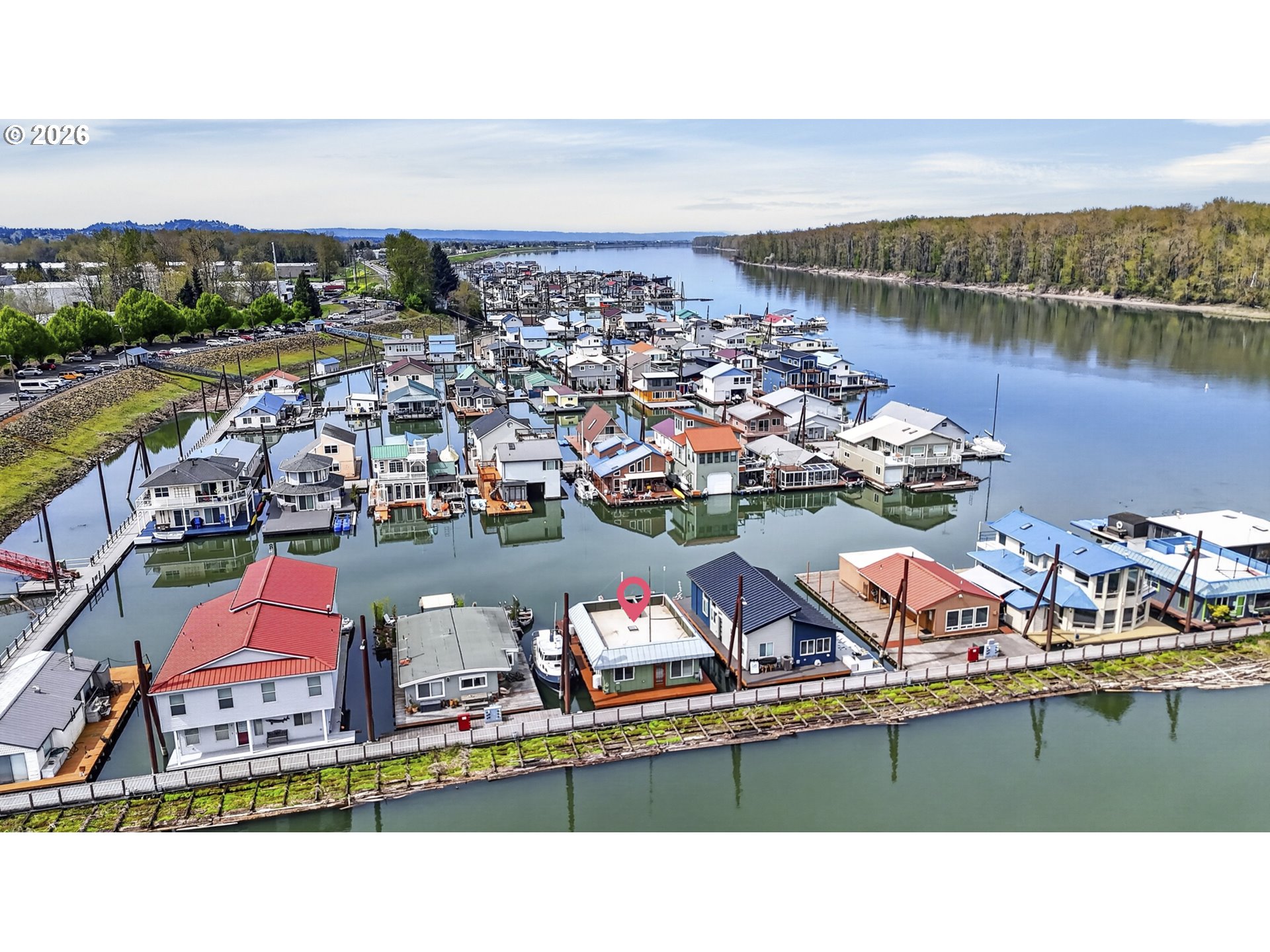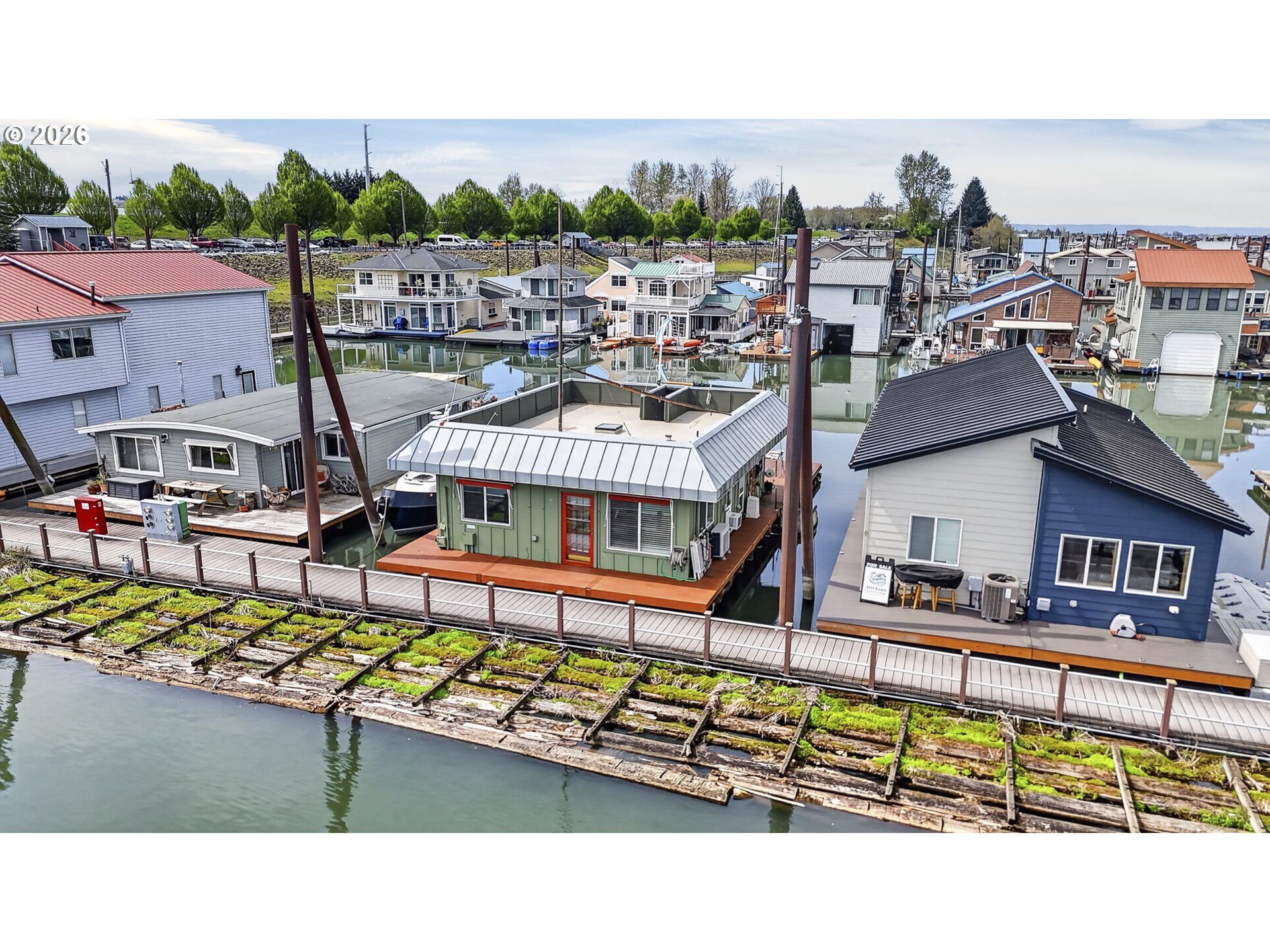 Rare A row view slip with unobstructed sunrise views to the East! Take in 360 degree river, island, & territorial views from the incredible roof top deck with new membrane roof in 2025' with transferrable warranty! This cozy custom style home lives large for its size with 2 full bathrooms and 2 bedrooms (2nd bedroom non-conforming / no closet), a well-appointed kitchen, and loads of outdoor space which is what river living is all about! The updated kitchen comes with a complete appliance package, granite countertops, and an eating bar with room for a small dinette. Downsizing, condo alternative, or simply looking to get on the river at an affordable price? How about in an ownership moorage with one-of-a-kind views and turn-key living? This may be the home you've been waiting for! Cash only due to float condition, perfectly livable as-is for years to come or complete float repairs for ability to refinance and solid for decades. Over $45k in recent upgrades to include: New membrane roof, newer deck boards, newer swim float, interior upgrades. A true highlight of this home is the ample outdoor space including a roof top deck with 360 degree river, island, & sunrise views to the East! Unique nautical themed mast & Boom set up on the roof deck for sheltered summertime sleeping quarters... a heavenly spot to lay one's head to rest & awake to the sunrise & the sounds of area wildlife. Loads of value here in a premium slip location & owned slip, room to park your boat and watercraft with no added moorage fees, & loads of outdoor space! All for under $280k with low taxes at $1105yr & your river lifestyle aspirations can be achieved!