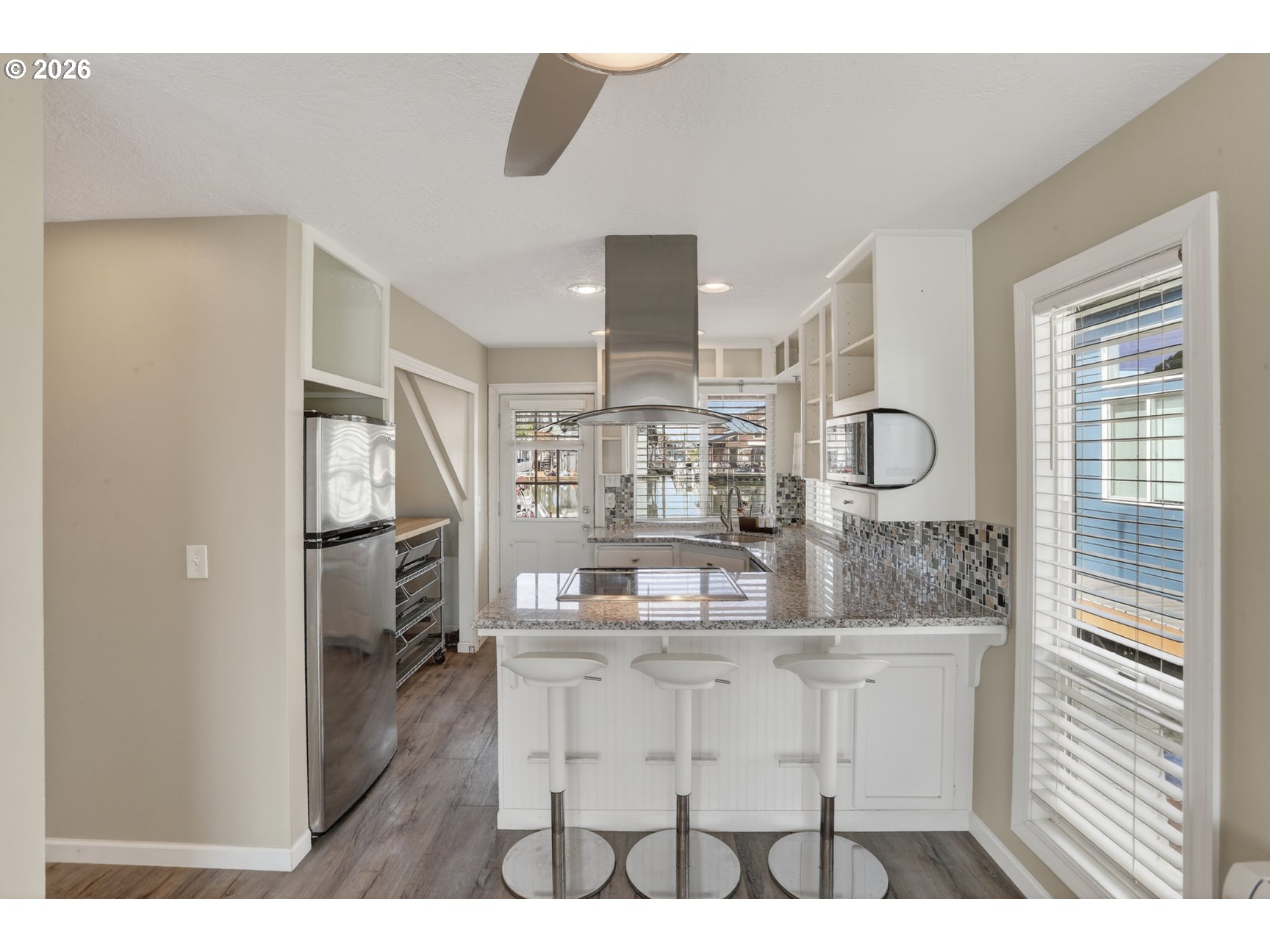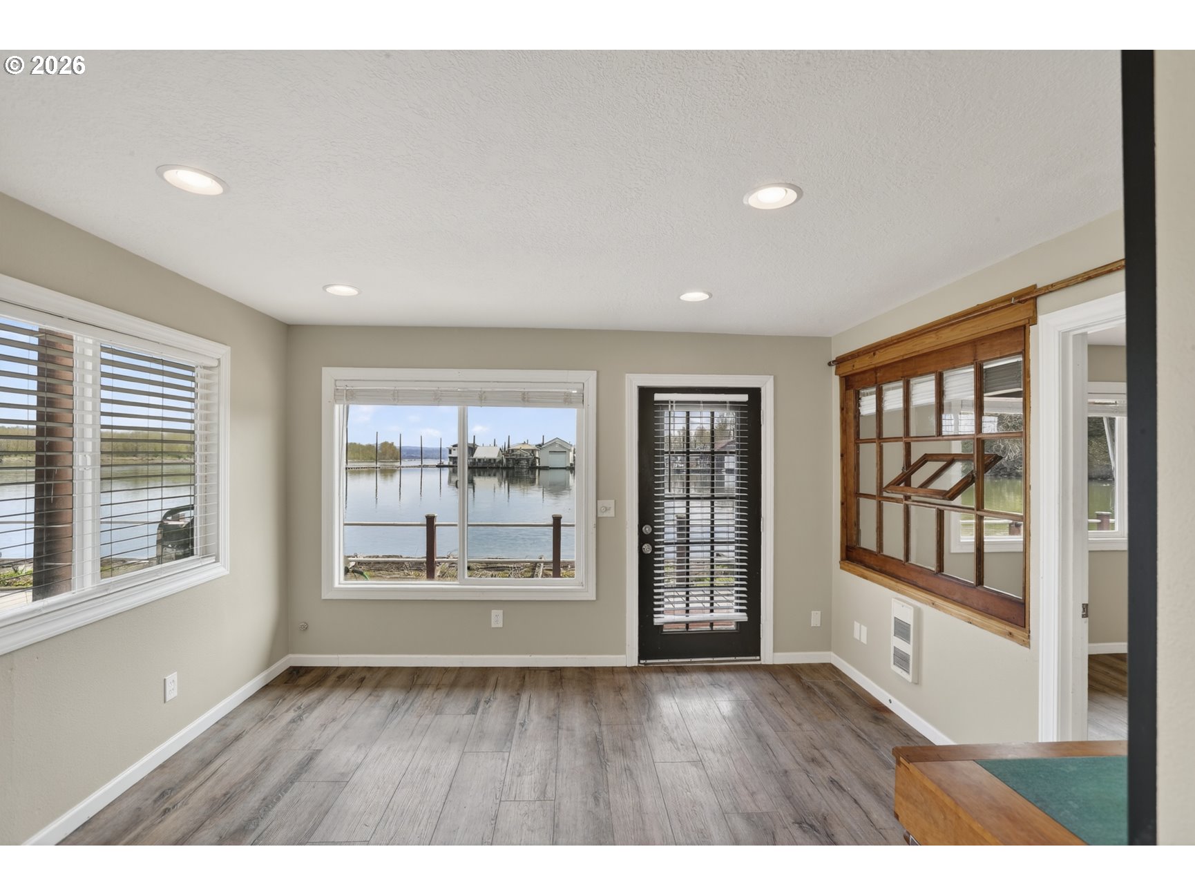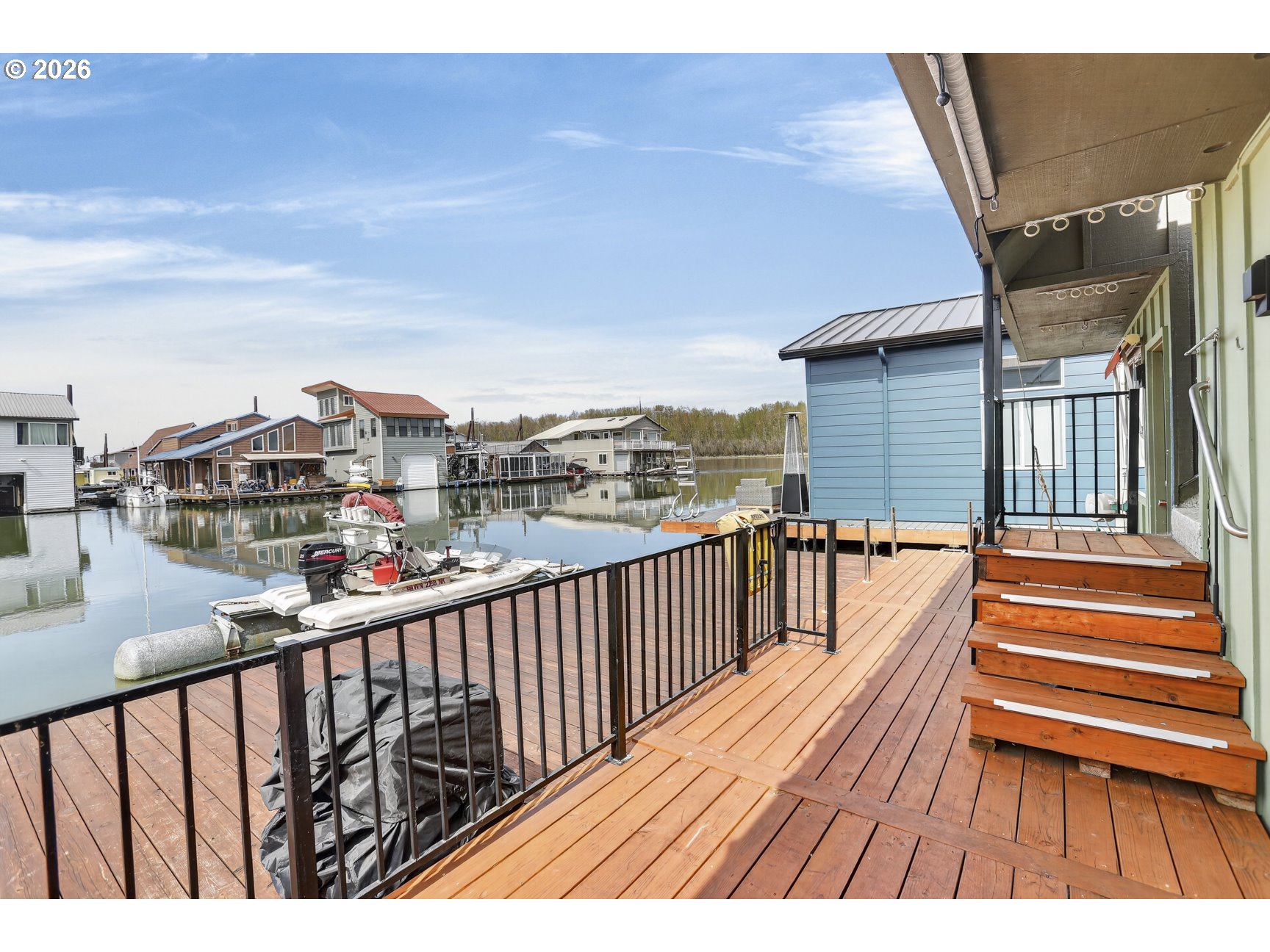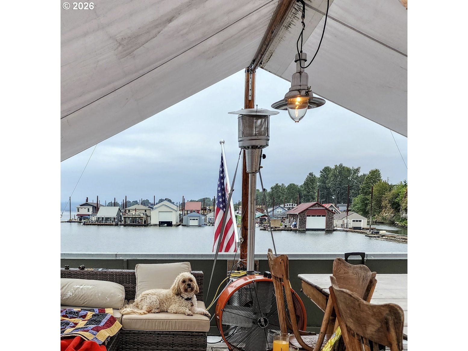 Rare A row view slip with unobstructed sunrise views to the East! Take in 360 degree river, island, & territorial views from the incredible roof top deck with new membrane roof in 2025' with transferrable warranty! This cozy custom style home lives large for its size with 2 full bathrooms and 2 bedrooms (2nd bedroom non-conforming / no closet), a well-appointed kitchen, and loads of outdoor space which is what river living is all about! The updated kitchen comes with a complete appliance package, granite countertops, and an eating bar with room for a small dinette. Downsizing, condo alternative, or simply looking to get on the river at an affordable price? How about in an ownership moorage with one-of-a-kind views and turn-key living? This may be the home you've been waiting for! Cash only due to float condition, perfectly livable as-is for years to come or complete float repairs for ability to refinance and solid for decades. Over $45k in recent upgrades to include: New membrane roof, newer deck boards, newer swim float, interior upgrades. A true highlight of this home is the ample outdoor space including a roof top deck with 360 degree river, island, & sunrise views to the East! Unique nautical themed mast & Boom set up on the roof deck for sheltered summertime sleeping quarters... a heavenly spot to lay one's head to rest & awake to the sunrise & the sounds of area wildlife. Loads of value here in a premium slip location & owned slip, room to park your boat and watercraft with no added moorage fees, & loads of outdoor space! All for under $280k with low taxes at $1105yr & your river lifestyle aspirations can be achieved!