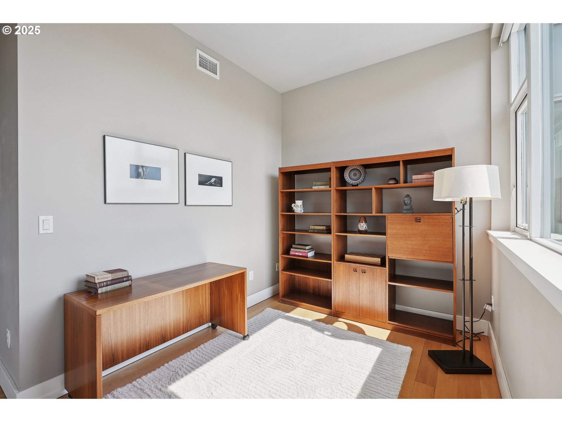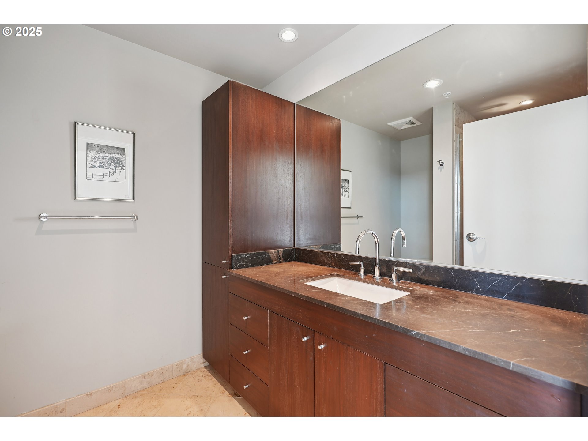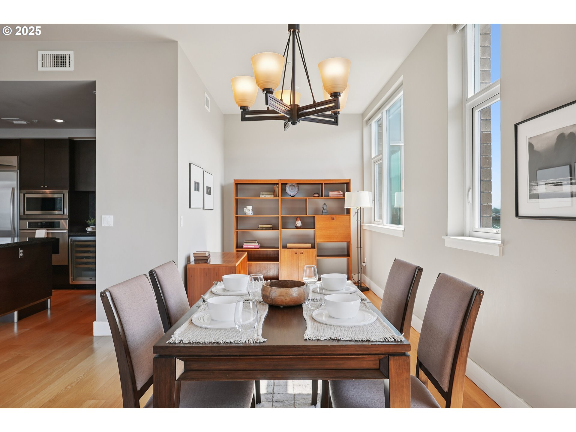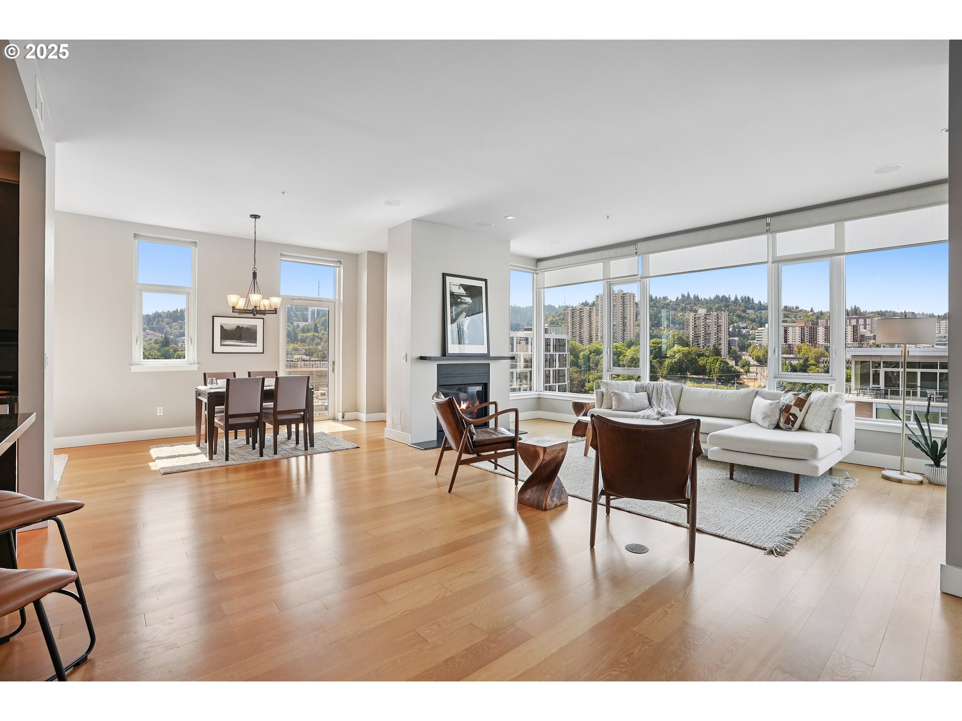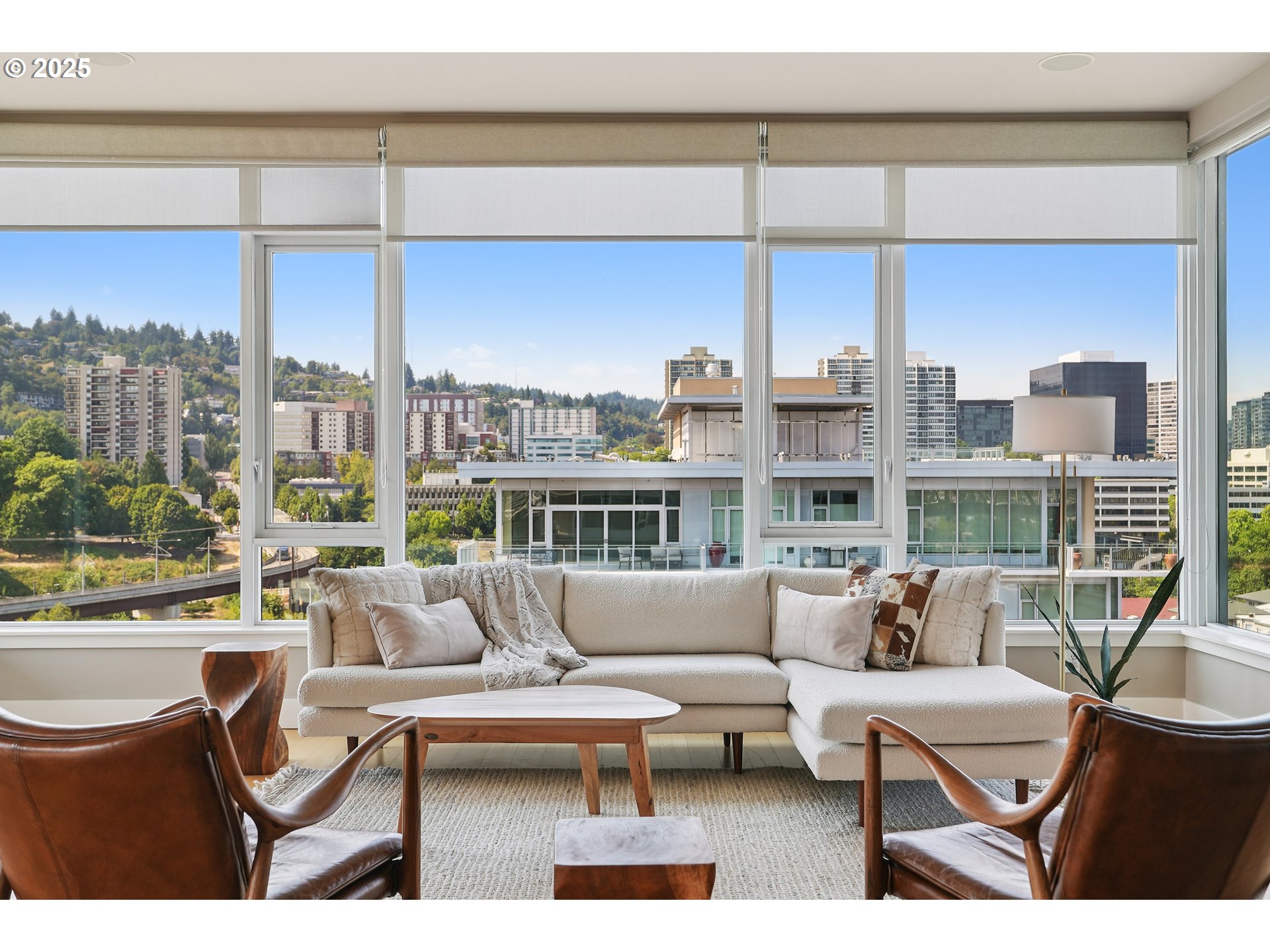 Turnkey ease. Uncompromised sophistication. Views for days. This Junior Penthouse isn’t just another condo, it’s the definition of elevated living. Some condos you visit, this one you experience. Light, airy panoramic views from every angle meld with thoughtful design to create something truly sublime. Hardwood floors, granite counters, premium Thermador appliances, soaring ceilings, and two covered balconies are only the beginning. Every room is defined by its prominence over the city. OHSU, the Tram, South Waterfront, and the Willamette River mesmerize in the Southern exposure. The downtown Portland skyline, West Hills, and even more of the Willamette inspire in the Western exposure. No room is left without a staggering view. Two oversized bedrooms, each with ensuite baths, capture sun-soaked southern light. The main living room, kitchen, dining room, and den are framed by a full wall of city-scape and unforgettable sunsets. Throw in a generous laundry room, secured storage, and two deeded parking spaces and you have the full package. Here your view isn’t just the view, it’s the new backdrop of your life.