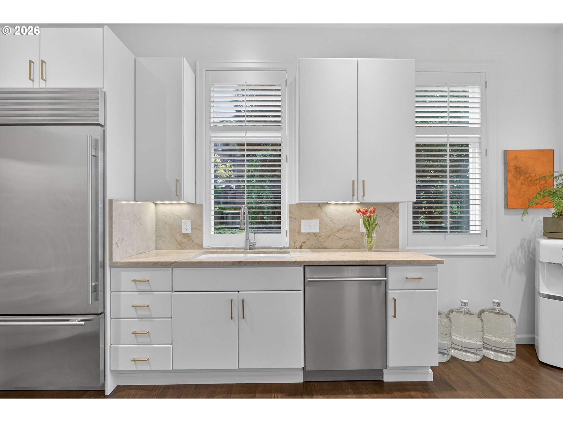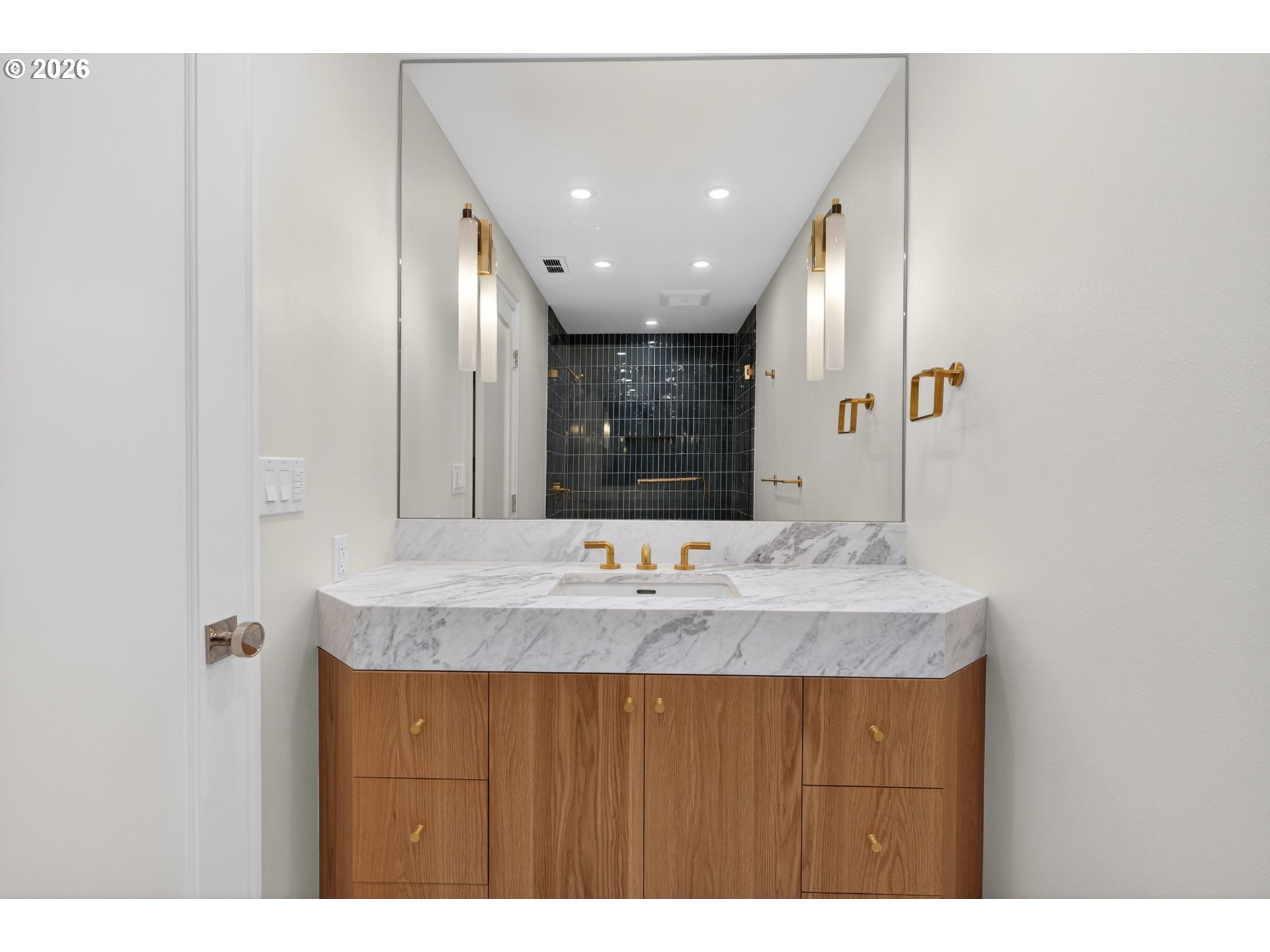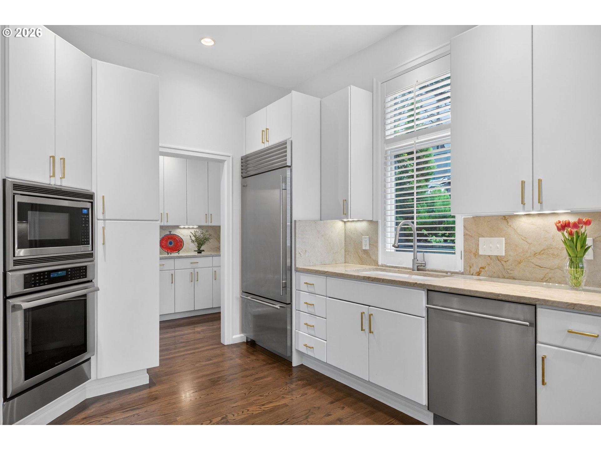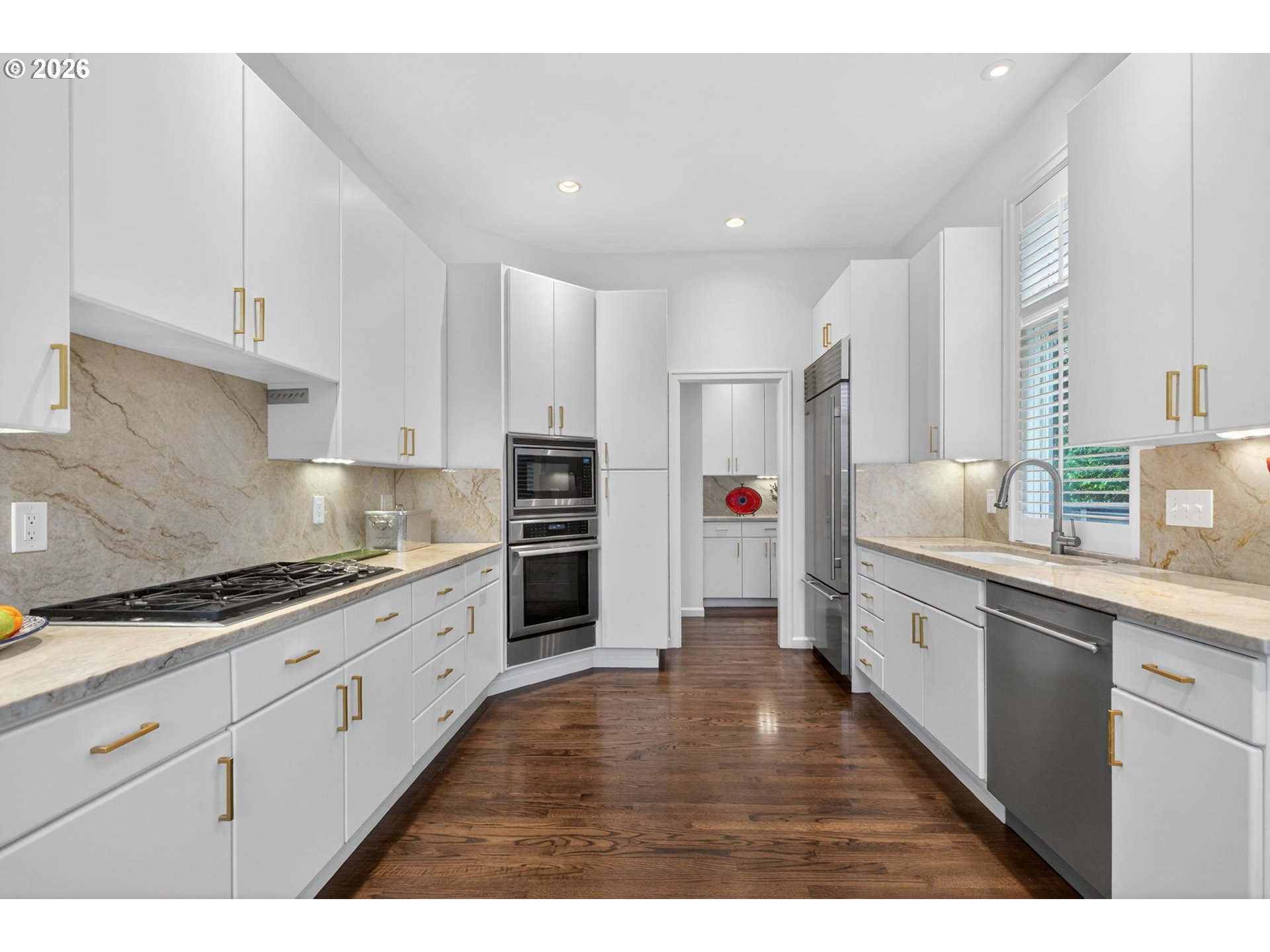 OPEN HOUSE this Sunday, April 12, 12pm-2pm!!! Stunning remodel of this contemporary home tucked away on a private street in the iconic Portland Heights neighborhood. One of Portland’s finest companies, Green Gables, executed the renovation flawlessly with exceptional attention to detail. Formal living room with a custom fireplace, beautiful millwork, and abundant natural light through oversized windows. The dining room takes in treed views and is perfectly placed between the living area and the chef’s kitchen. The upscale kitchen offers stone counters, ample cabinetry and storage, stainless steel appliance package, butler’s pantry, and French door leading to the deck for outdoor dining. Upstairs, you will find a vaulted primary suite with views, ensuite bath with soaking tub and walk-in shower, and true dressing room–style walk-in closet. Two additional bedrooms share an updated bathroom. The lower level was just completed with a new bonus room featuring custom built-ins, a reimagined fireplace, and beautiful French doors leading out to patio, yard, and garden. The lower level also includes an office and a brand-new bathroom with custom tile accents. Enjoy this home year-round with entertaining spaces in the front courtyard as well as the back patio. This one is special, with high-end fixtures, curated finishes, and elevated design. Just minutes from all that NW and downtown Portland have to offer.