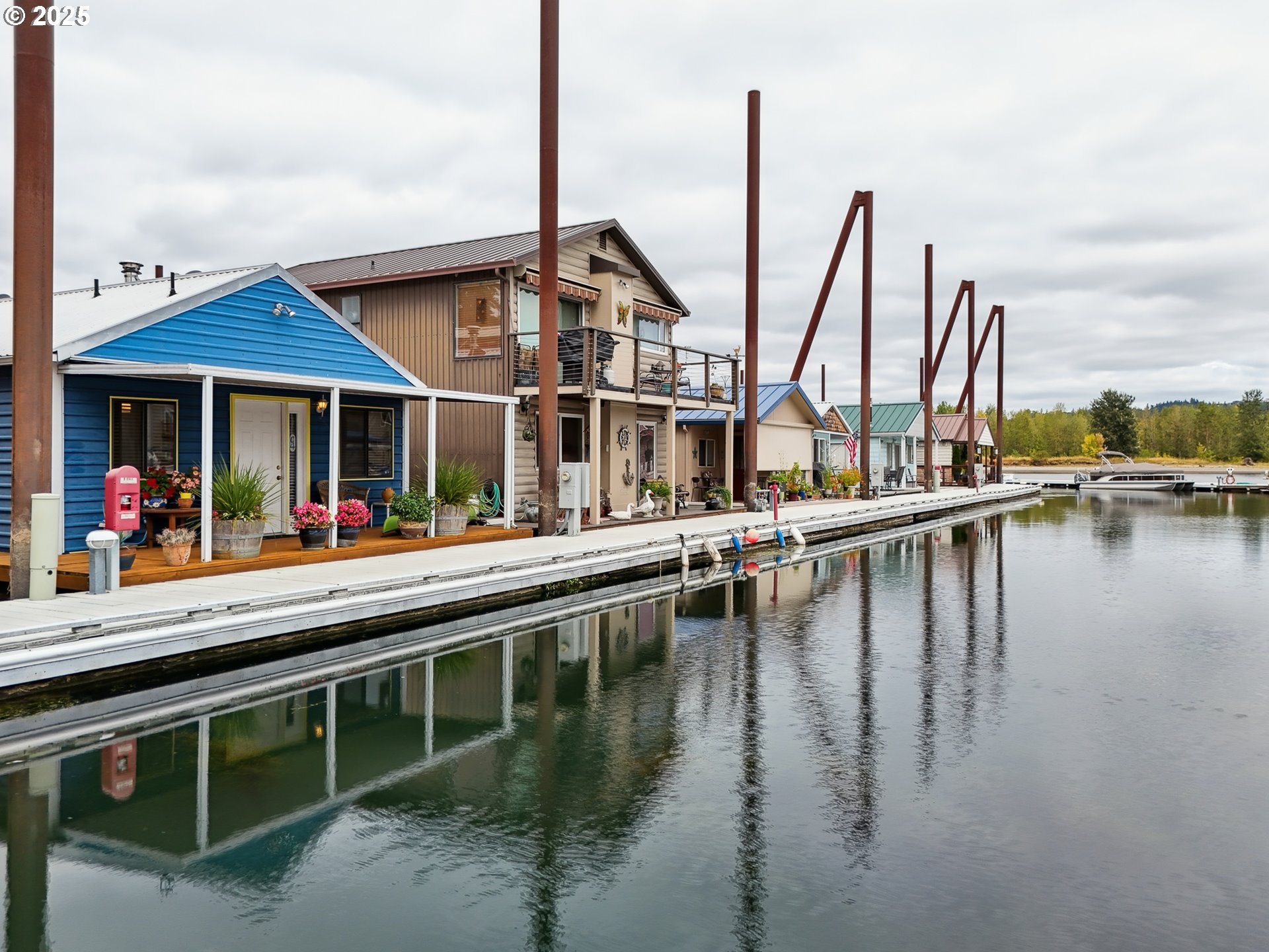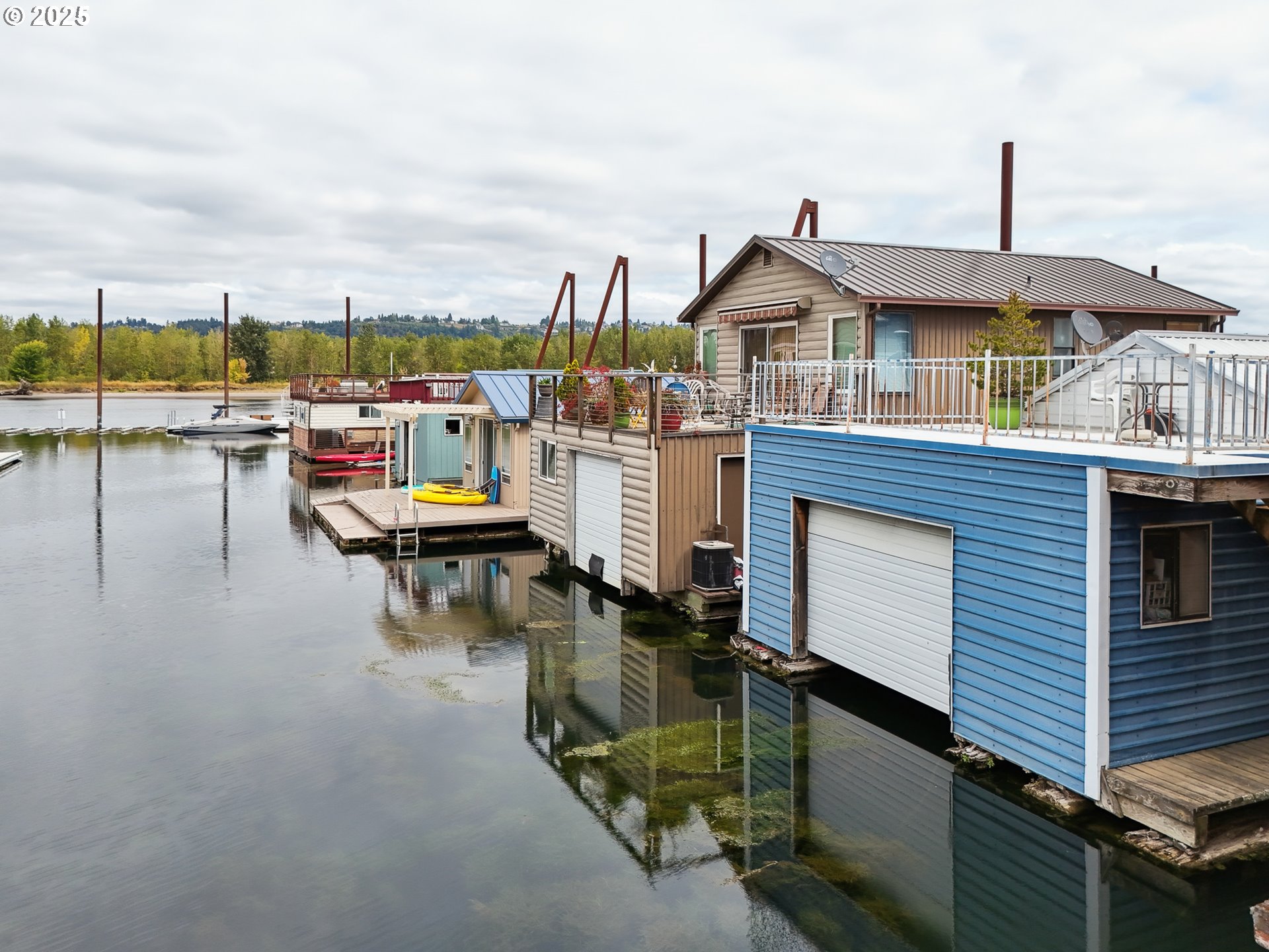 Welcome to your riverfront retreat at Big Eddy Marina, one of the premier floating home communities on the Columbia River. This charming bungalow-style combo home combines timeless cabin character with the magic of living right on the water, and it’s priced to sell, offering one of the most affordable price points in a premier moorage. Wrapped in durable blue metal siding and topped with a matching metal roof, this home was built for longevity on the river. Step inside to find warm wood ceilings, accent walls, and a kitchen with a cozy cabin feel, the perfect blend of rustic and refined. Down the right-hand side, you’ll find the private boatwell, easily accommodating a 15’ boat, kayaks, or jet skis, making water adventures just a step away. To the left, a full bathroom and laundry space offer everyday convenience. Head upstairs to the loft bedroom overlooking the boatwell, where a skylight floods the space with natural light, a peaceful place to wake up each morning. Outside, enjoy well-maintained wood decking leading to your rooftop deck with sweeping views of the Columbia River. It’s the ideal spot for sunset cocktails, stargazing, or simply soaking in the tranquility of life on the water. Big Eddy Marina is under new ownership and is one of the most professionally well kept moorages on the river. Enjoy the private boat launch, gated entrance, and boat/RV parking availability, all part of a community focused on safety, convenience, and lifestyle. This is more than a home, it’s a rare chance to enjoy floating life in a highly sought-after community at an unbeatable price.