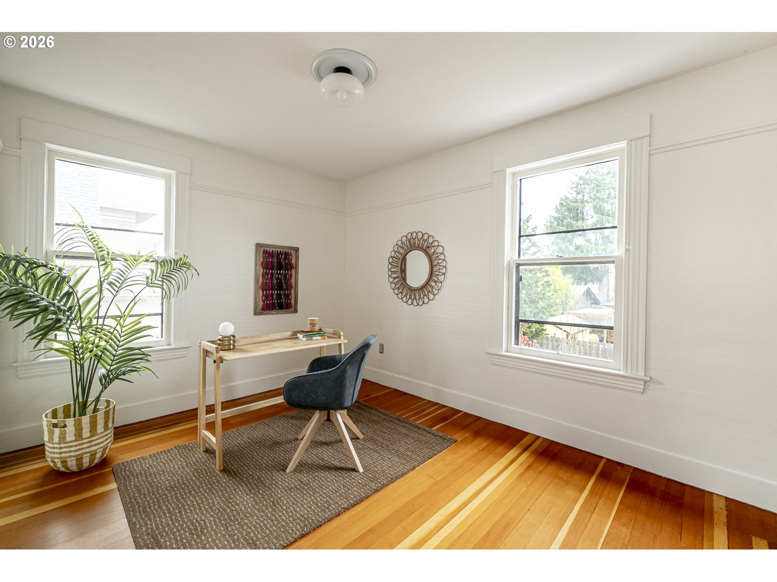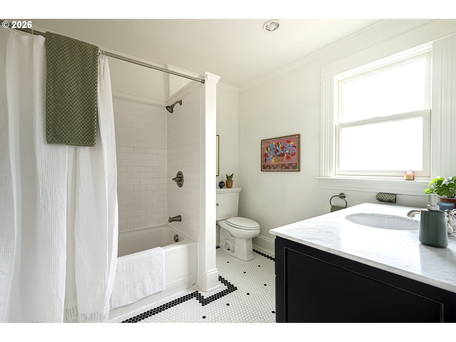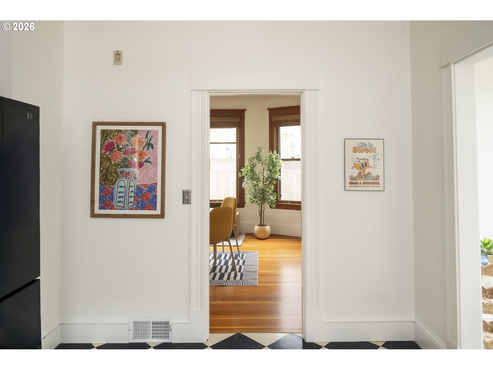 This bright and fresh 1904 Foursquare is serving major curb appeal and porch-hangs energy! Natural light pours into every corner, highlighting a home where original character and modern life play perfectly together. Kick things off with a gorgeous original stained glass door welcoming you into the formal entry with its classic open staircase, leading into a spacious living and dining layout anchored by warm fir floors, wood trim and high ceilings. The kitchen is a vibe, packed with personality with those nooks and details only found in an older home, plus a traditional butler’s pantry looking out onto the garden. The main floor is fitted with a charming full bath with claw-foot soaking tub. Upstairs, the floor plan hits all the right notes with three sunny bedrooms punctuated by tree canopy views in every direction. Downstairs, the unfinished basement is a blank canvas for yoga studio, workshop, or storing all of your treasures. Outside, the fully-fenced backyard is a total sanctuary— think vibrant Springtime perennials, raised beds for growing your own veggies, mature blueberry bushes, roses, dahlias and a pergola-covered patio that’s practically begging for a summer grill-out. Recent updates include a newer 200 AMP panel with EV charger, sewer line (2016), HVAC and AC (2019), radon mitigation, fresh paint, and updated lighting. All this in the Grant school district, just a quick stroll from Irvington Elementary and your favorite neighborhood coffee shops and cafes.