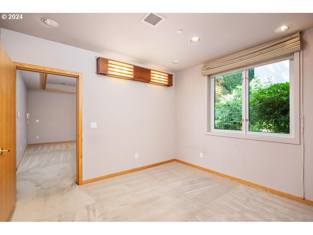 Vista House Condominiums seamlessly blends the charm of a quiet, historic Portland neighborhood with the ease and sophistication of condominium living. Set in coveted Portland Heights, this custom residence is gracefully perched three levels above the street overlooking Goose Hollow, offering wonderful views of the city, mountain and beyond. Gracefully proportioned and beautifully designed, this elegant home presents a rare opportunity for expansive single-level living. Thoughtfully detailed, this custom residence showcases extensive recessed lighting, inlaid hardwood floors, and a gas fireplace with a granite and steel surround. The expansive wraparound balcony provides exceptional outdoor living and entertaining space. Both baths have been refreshed with newly tiled showers. The well-appointed kitchen features granite, stainless high end appliances, custom built-ins, and a serving window designed for ease and flow. The primary suite is privately positioned and offers a substantial walk-in closet with vanity and a spa-inspired bath with a newly tiled shower, marble floors and jacuzzi tub. Second bedroom is located adjacent to the guest bath. Sale includes two assigned parking and large storage room. Walk to Goose Hollow. Timber Stadium and MAX stop.