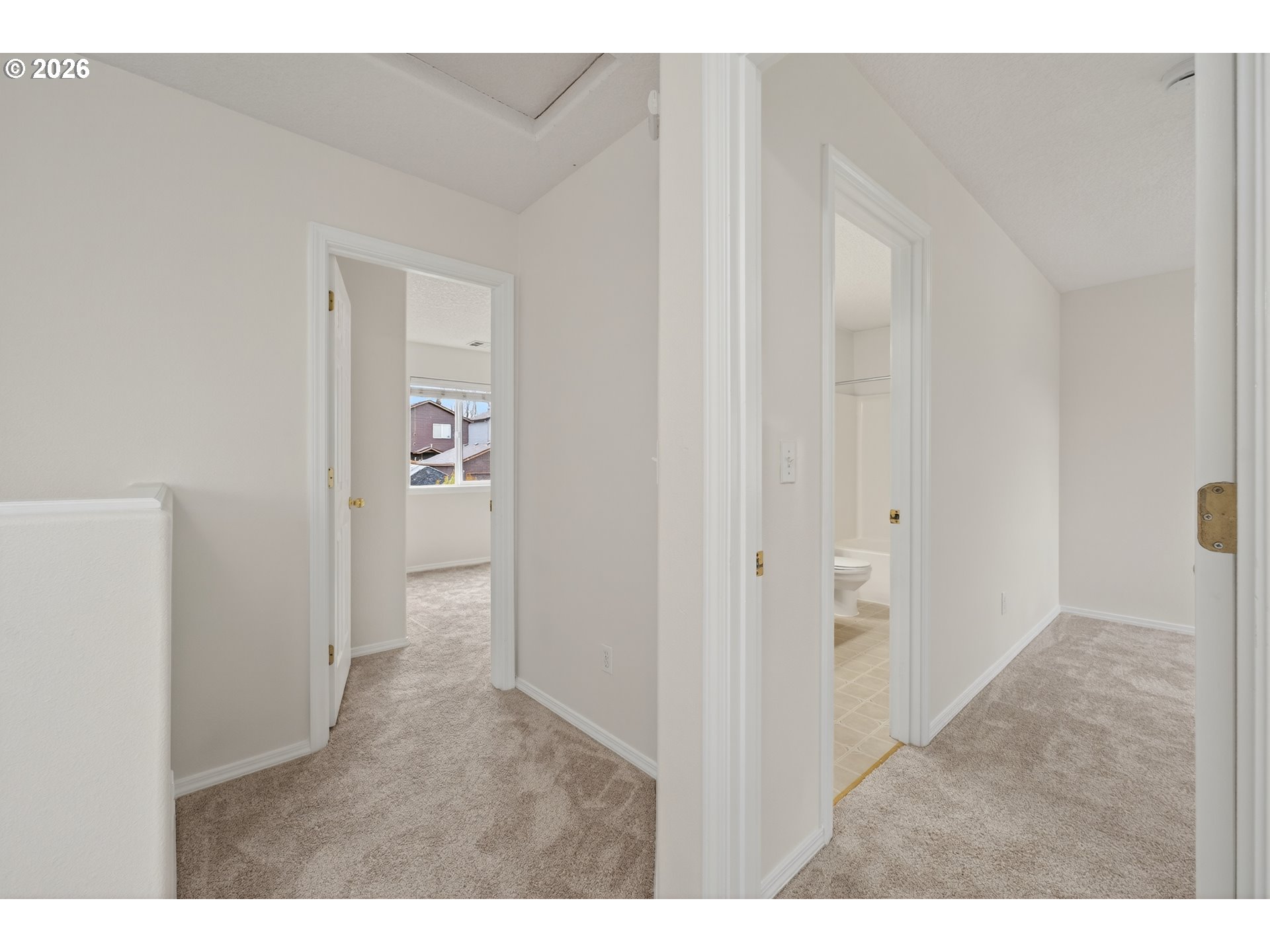 Nestled within beautiful Lakeside Estates, this wonderful home has been tastefully updated, giving it a fresh, move-in ready feel. The covered front porch welcomes you into a well-designed open concept floor plan. The main level features a large great room with a gas fireplace as well as a primary bedroom with private bath. The vaulted kitchen overlooks the dining area with an exit to a private patio courtyard. You will also find a flexible bonus area, 1/2-bath and a laundry/utility room with built-in cabinets and direct access from the 2-car garage. On the upper level you will find 2 spacious bedrooms conjoined by a Jack & Jill bathroom, plus a generous loft area. Recent updates include a freshly painted interior, new carpet, new free-standing range, new built-in microwave and new window blinds. Home comes with central A/C and an extra parking pad for boats or an RV. HOA fees include front yard landscape maintenance for low maintenance living. Located in a great neighborhood on a beautiful, tree-lined street, this property has access to nearby Fairview & Blue Lakes, I-84 freeway, the beautiful Columbia River and the Portland International Airport. The only thing missing is you, the next proud owner of this special home!
