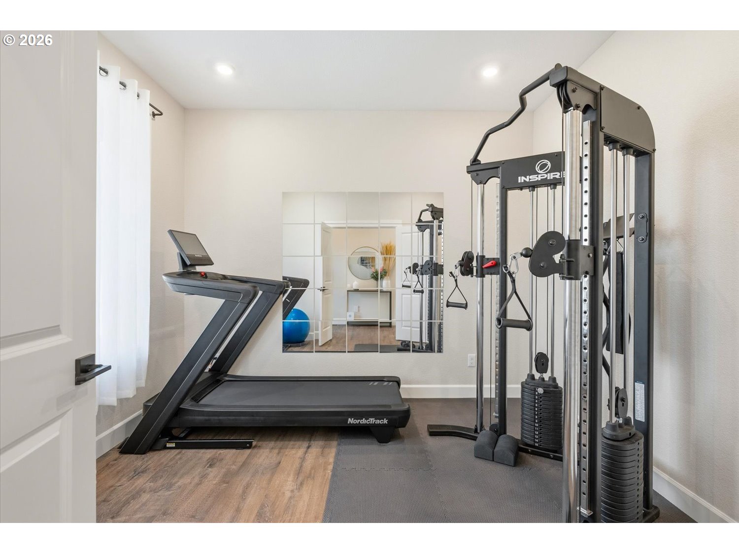 Stunning custom-built two-story home completed in 2022, offering 2,054 sq ft of beautifully crafted living space on a rare .27-acre lot, oversized for the area & full of possibilities. Open floorplan ftrs wood-look flooring & an abundance of natural light throughout. Chef-inspired kitchen w/quartz countertops, massive kitchen island, tons of cabinetry, prep space, pantry & stainless steel appliances. Well appointed primary w/dual vanities in bath + soaking tub & water closet. 3 addtnl spacious bedrooms, a versatile flex room perfect for a home gym or office. Unwind on the covered back patio overlooking a generous backyard w/massive, breathtaking cherry tree as its centerpiece, a blank canvas ready for your personal touch. 2-car garage, A/C + more. Located in Portland's Rockwood neighborhood w/easy access to shopping, Nadaka Nature Park, Powell Butte Nature Park, the Springwater Corridor, & MAX light rail for an easy commute to downtown PDX. This rare gem truly has it all!