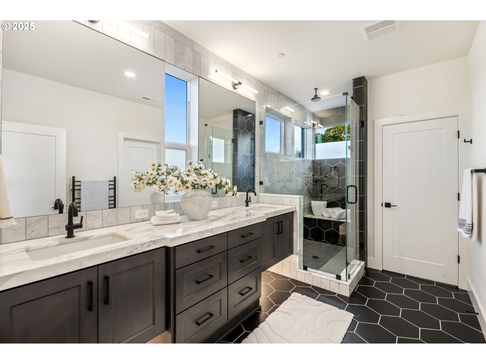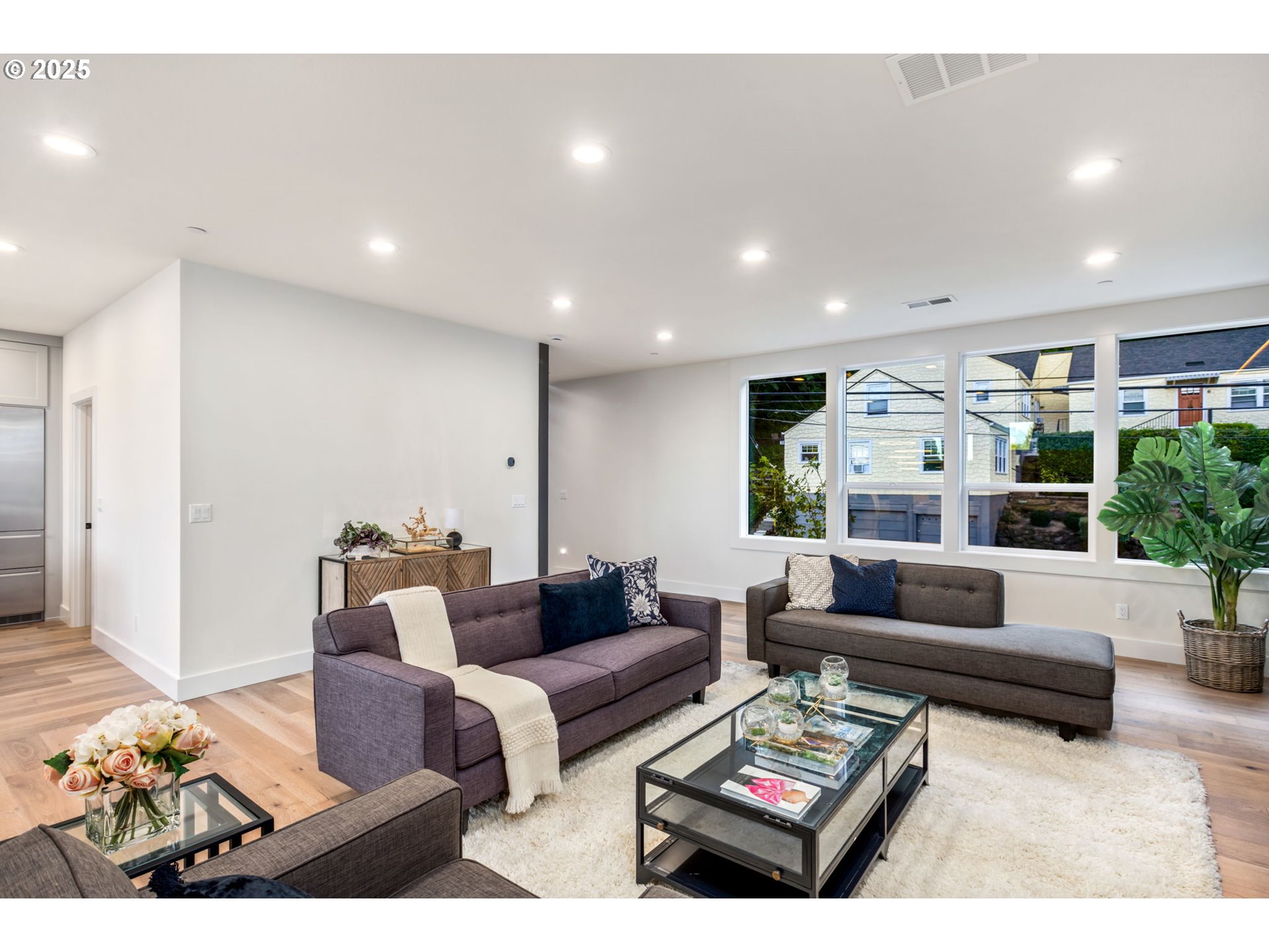 Modern Luxe × Award-Winning Craftsmanship! 4 BD · 3.5 BA · 3,404 SF · John’s Landing Experience next-level design and engineering in this brand-new masterpiece by Exceptional Homes by Andre—Portland’s 2024 Luxury Structure & Style Award winner and a featured builder in the 2025 NW Natural Street of Dreams. With its striking contemporary profile, independent joist system, high-density insulation, and full one-inch airspace between walls, this home is built for beauty, strength, and whisper-quiet privacy. Panoramic Mt. Hood & Mt St Helens views are showcased from the upstairs bonus room balcony and the serene primary suite. The gourmet kitchen features an all natural stone quartz island, gas appliances, full stainless appliance suite, and moody LED accent lighting for a sophisticated “spice-ambience” effect. The primary retreat offers a spa-worthy bath wrapped in Calcutta marble and walk in closet. Upstairs, the bonus entertaining space includes a wet bar and an expansive balcony—perfect for morning coffee or sunset cocktails with Mt Hood as your backdrop. Four generous bedrooms boasting a separate living area w/bedroom studio with private entrance, electrical panel & water heater - Amazing for ADU potential, guests or multigenerational living. The multiple gathering spaces allow for flexible living. A rare two-car garage provides secure parking and extra storage in coveted John’s Landing. Enjoy the best of city and nature—stroll to the Willamette River Greenway, nearby cafés, parks, and top schools, with downtown Portland, OHSU, and South Waterfront just minutes away. This is more than a home—it’s a statement of modern style, structural excellence, and everyday livability.