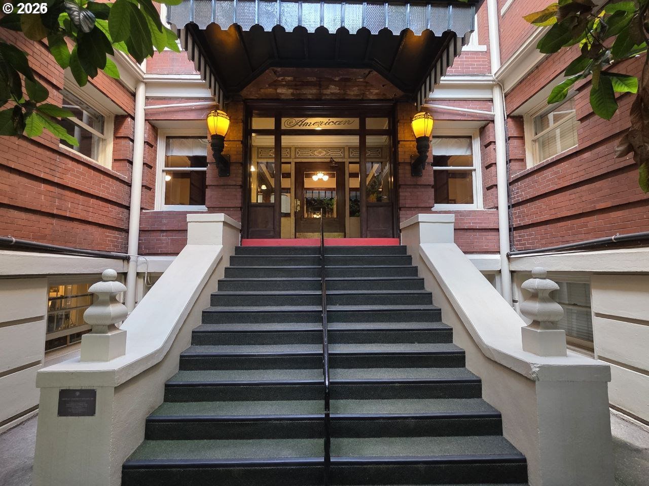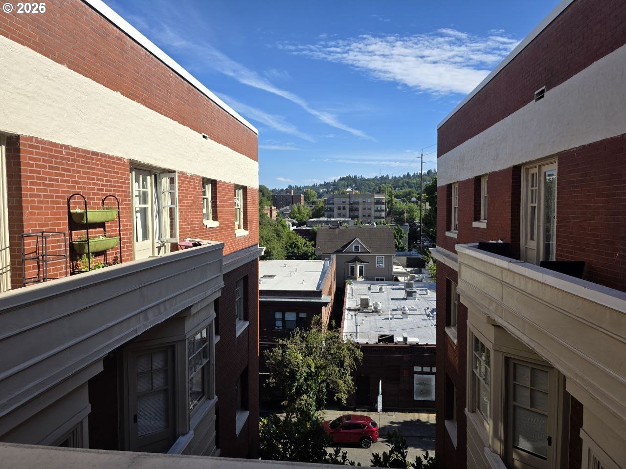 Enjoy timeless elegance in this top floor centerpiece unit—the star of the historic Ball Parc American building! This home is a quiet retreat in the heart of the city whether it’s your home or a home for a happy tenant! Brimming with vintage charm and thoughtful updates to the kitchen and bath, this condo offers the best of both worlds. The large bedroom behind French doors provides enough space to stretch out and relax all while having plenty of room for your favorite outfits. If working from home is for you, you’ll find options. The layout is ready to help you live your best life. Take in a breath of fresh air on the step out balcony, or open the door to enjoy brunch with a breeze. This prime central unit shares peaceful views of the courtyard and the West Hills. Enjoy the convenience of in-unit laundry hookups, and a dishwasher too. Furry companions are also welcome!Want some fun or need to replenish the fridge? With a Walk Score of 98 and Bike Score of 97, you're just steps from NW Portland’s best cafes, grocery stores, boutiques, restaurants, and galleries. Transit access is effortless. You’ll love the lifestyle at the Ball Parc American.