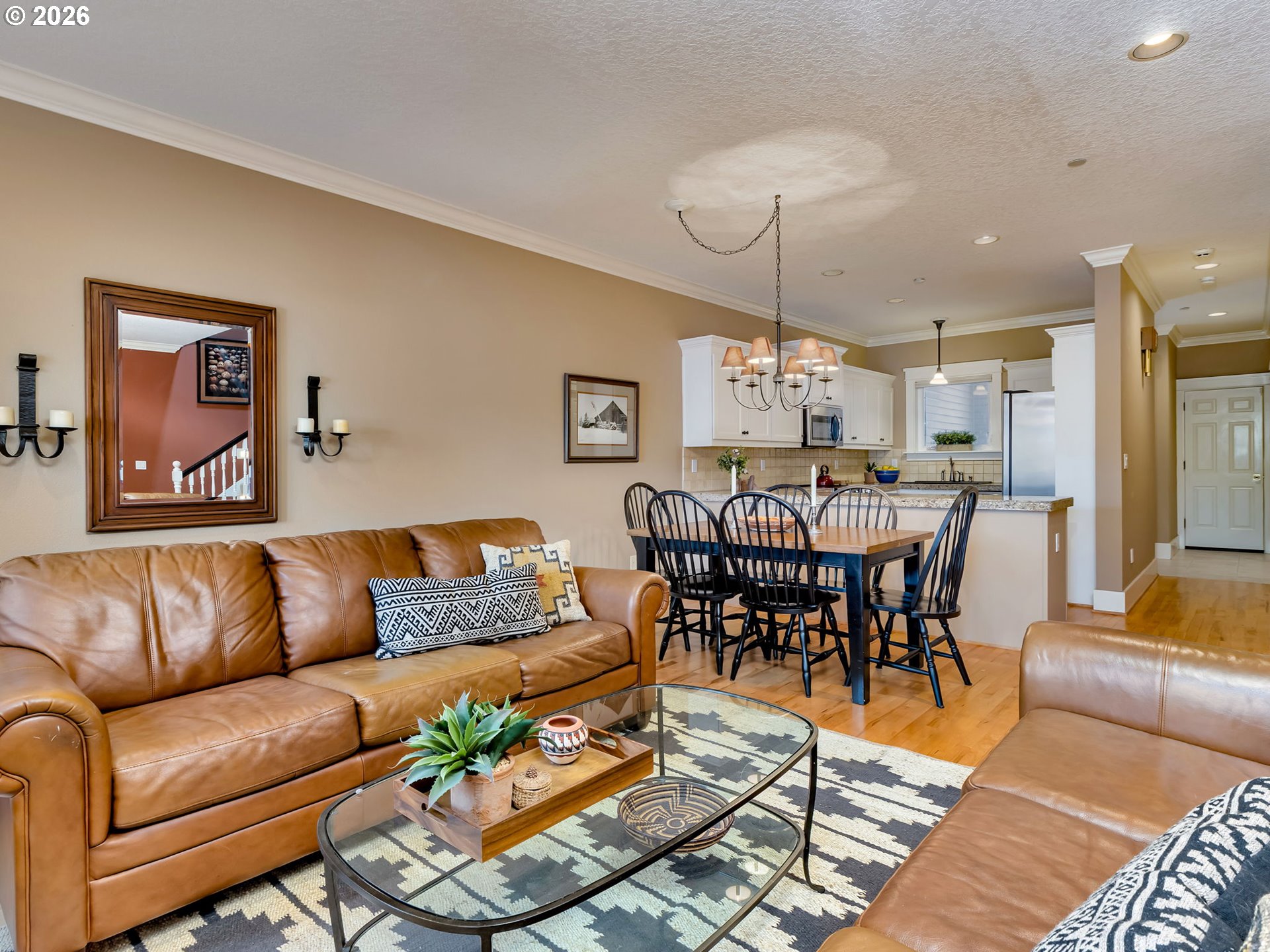 Welcome to 210 NE 5th Street—an impeccably maintained, move-in-ready townhome perfectly positioned to enjoy the best of Downtown Gresham. Just steps from local restaurants, shops, and the beloved Arts Plaza Park—home to seasonal events and the Farmers Market—this spacious 3-bed, 3-bath home blends modern updates with a highly functional, comfortable floor plan.The open-concept main level features hardwood floors, a cozy gas fireplace, updated kitchen with stainless steel appliances, refreshed cabinetry, and a pantry.Upstairs, the expansive primary suite includes vaulted ceilings, gas fireplace, private balcony, walk-in closet, and ensuite bath with separate bathtub and shower. A second upstairs bedroom includes a bonus office nook and ample storage, plus a convenient upstairs laundry room.Enjoy a large rooftop deck plumbed for gas, water, and power—ideal for entertaining. Major updates include new furnace and AC, new plumbing and electrical, new exterior siding, and new molding and trim throughout. Additional features include a main-floor bedroom/flex space, central vacuum system, and a 2-car garage with abundant storage.A rare blend of comfort, updates, and unbeatable walkability in one of Gresham’s most vibrant areas.