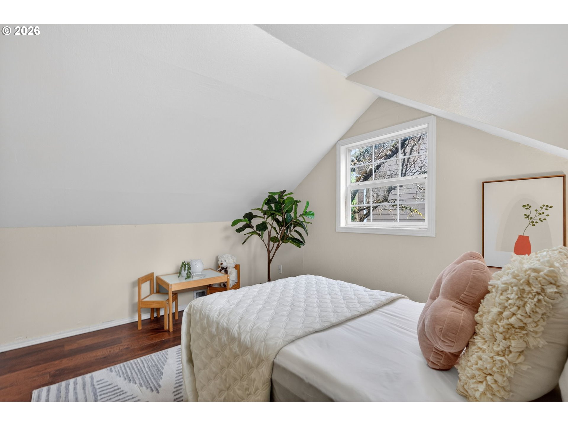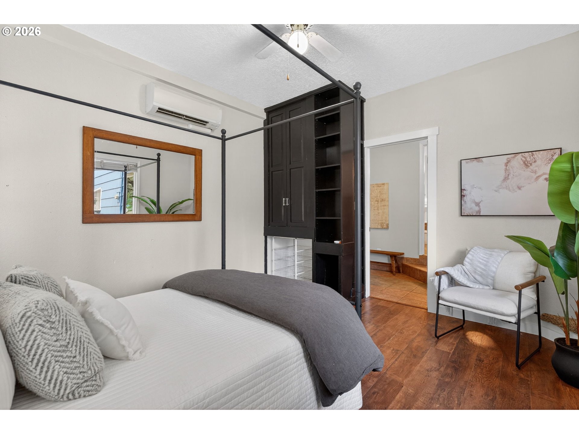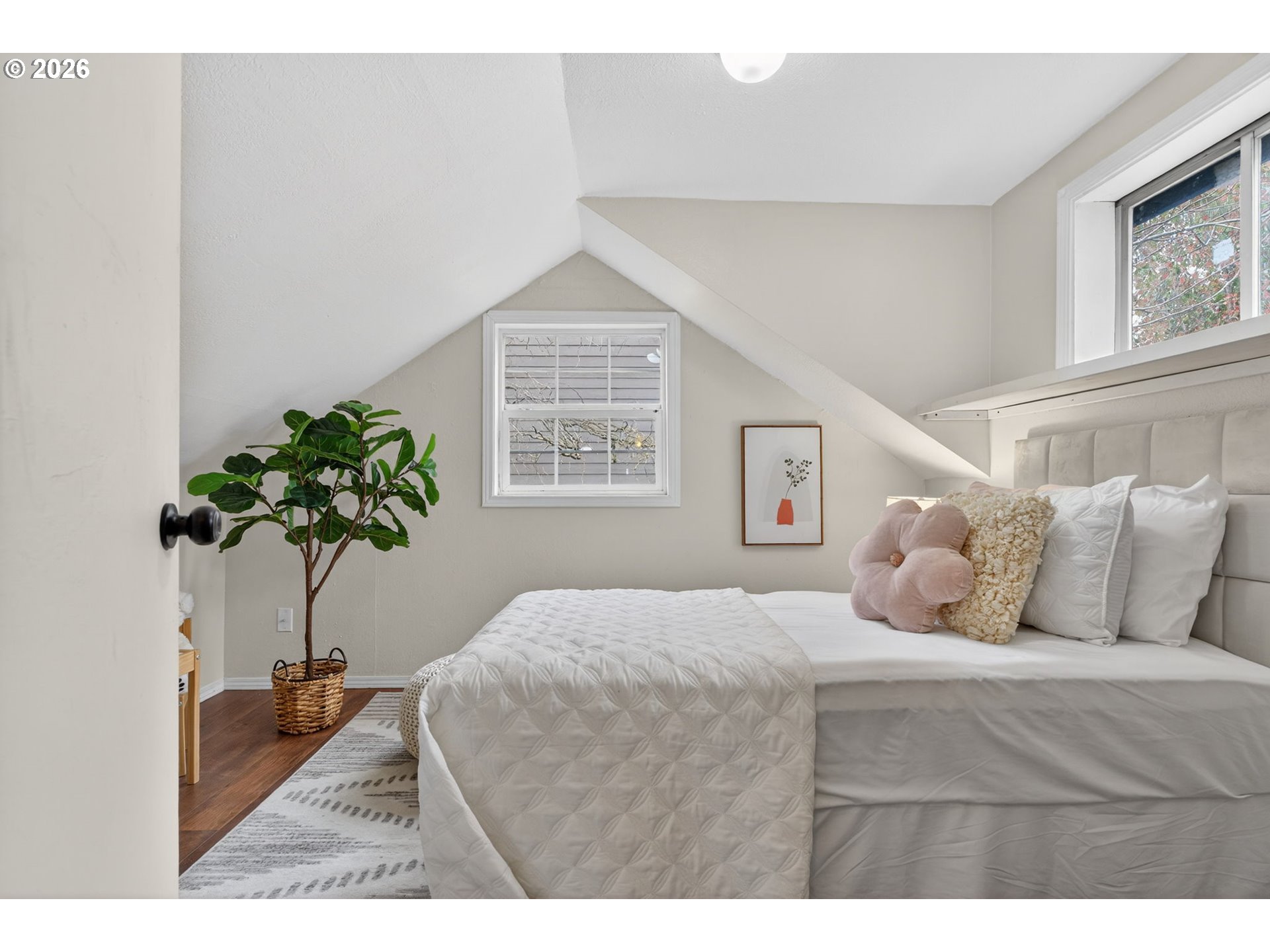 Fall in love with this charming storybook home situated on a corner lot in a quiet neighborhood. A perfect balance of original charm paired with stylish, modern updates. Step inside to a bright, inviting living room with picture window and sleek built-ins—both functional and aesthetically appealing. Fabulous, renovated kitchen with new cabinets, quartz counters, tile backsplash, stainless steel appliances and ample pantry space. Opens to a large formal dining room. Two generously sized main floor bedrooms, including the primary with adjacent full bathroom. The second bedroom is situated well for privacy and versatile use beyond a bedroom, such as a family room, guest suite, or office. Two adorable upper level bedrooms with great natural light, enchanting nooks, and built-ins. Through the mudroom is the attached extra-deep garage, with a well positioned work shed just outside the back entrance. Enjoy the peaceful outdoor spaces—on your private deck in the fully fenced yard or the covered porch along the side of the house. Newer single plank LVP throughout. Fresh interior paint. Vinyl windows. Gas furnace. Mini-split. This home has it all. Don’t miss the opportunity to make this wonderful home yours!