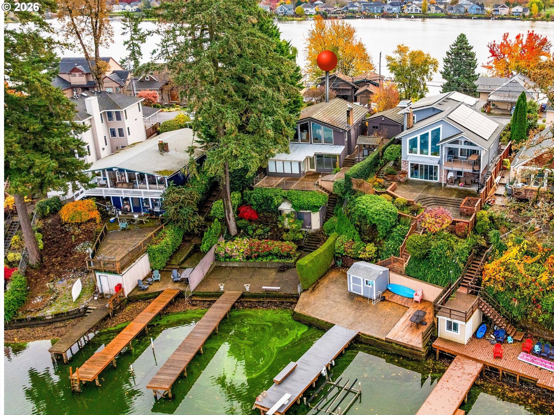 Absolutely stunning lakeside property that has been completely remodeled with so much to offer both inside and out. Located on Blue Lake, this home has a beautiful view from nearly every part of the house. Drink coffee on your back porch on a nice day, or inside on a rainy day and still experience absolutely gorgeous views! Inside you will love the soaring ceilings with huge windows looking towards the lake. The interior has now been completely repainted! The kitchen features an open floor plan with a cooking island, custom cabinets, gas appliances and hardwoods throughout. The home has two suites with bathrooms. The primary features an oversized room looking out onto the lake with beamed ceilings, a walk-in closet, updated bathroom with heated floors and a walk-in shower,quartz countertops, and access to the backyard. With two living spaces, the home has plenty of room for the family for entertaining. You will love the family room on the lower level with a wet bar, fireplace, and full access to the outdoor living area. Outside you will love the custom outdoor living space with outdoor kitchen and concrete throughout! Enjoy a small boat housefor all of your boating, swimming, and outdoor equipment. Down towards the lake, the updated dock allows for swimming andboating with a fully functional boat lift to keep your boat out of the elements! Living in the Blue Lake community has so much too offer, come take a look for yourself!