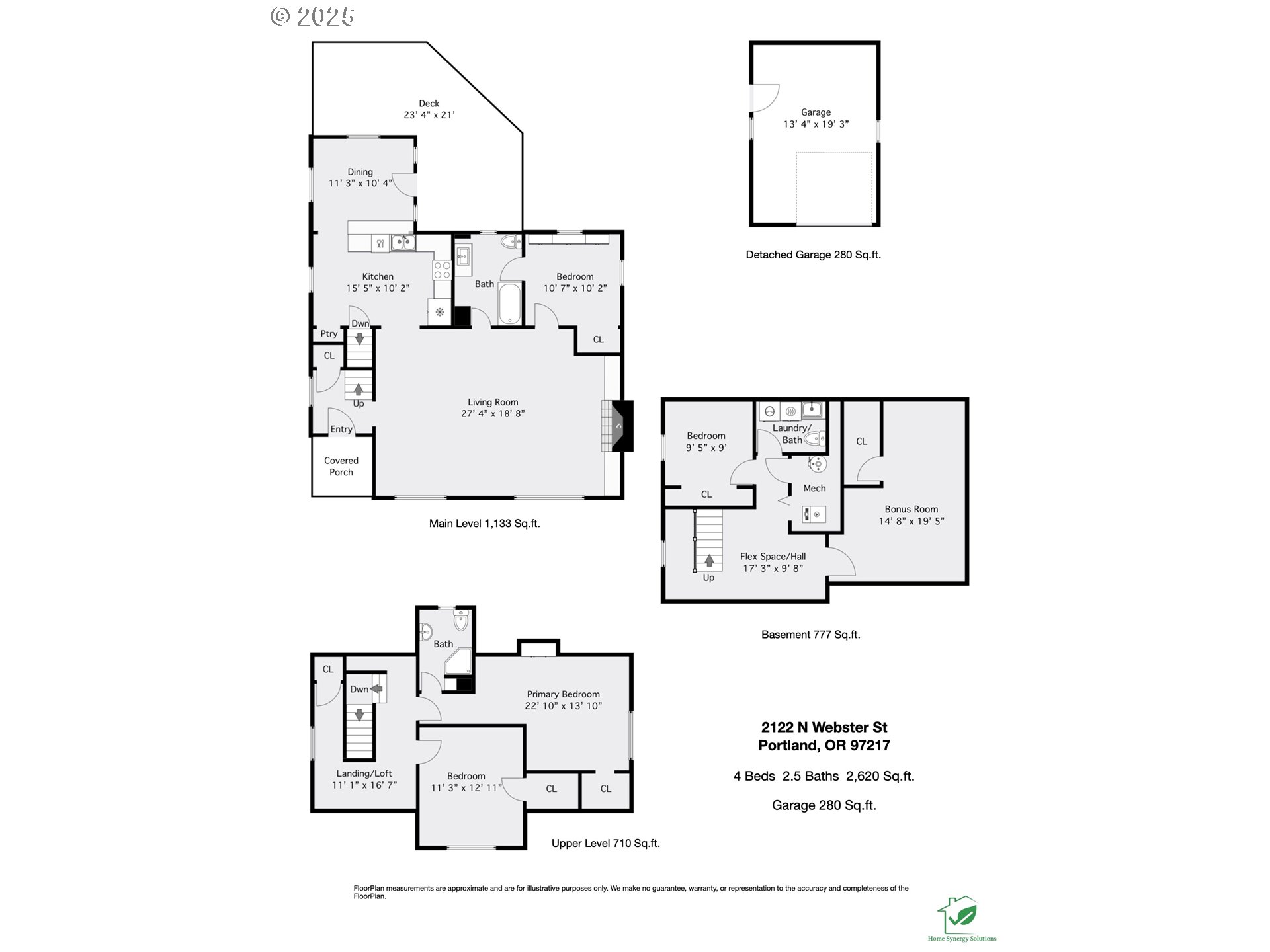 (503) 893-8874Price Improvement! Timeless charm meets thoughtful modern updates in Portland's coveted Overlook neighborhood! Inviting front porch & entry welcome you into a spacious light filled living room with hardwoods & gas fireplace with built-in surround. The kitchen features ample cabinetry, pantry, eating bar & dining area. Main level bedroom with built-ins & hardwoods, attached full bath too. Upstairs you will find a loft atop the stairs with 2 bedrooms & full bathroom. The fully finished lower level brings you to the 4th bedroom, laundry room with 1/2 bath and don't miss the speakeasy style bonus/rec room hidden behind a bookshelf door! Abundant storage space throughout the home. The private backyard is ideal for entertaining with a generous deck off the kitchen, yard & garden space with raised beds. Detached garage with ADU potential! Dedicated driveway offers convenience & privacy. Recent upgrades include all new interior paint, all new carpet, newer gas furnace & central air. Commuting is a breeze with a bike score of 90 & easy access to bus, max lines, freeways & downtown. Just minutes from hip Mississippi, Williams, Alberta Arts, Adidas, parks, favorite cafe's & Portland's finest dining & entertainment. All this on a peaceful street full of history & community. [Home Energy Score = 3. HES Report at https://rpt.greenbuildingregistry.com/hes/OR10241953]