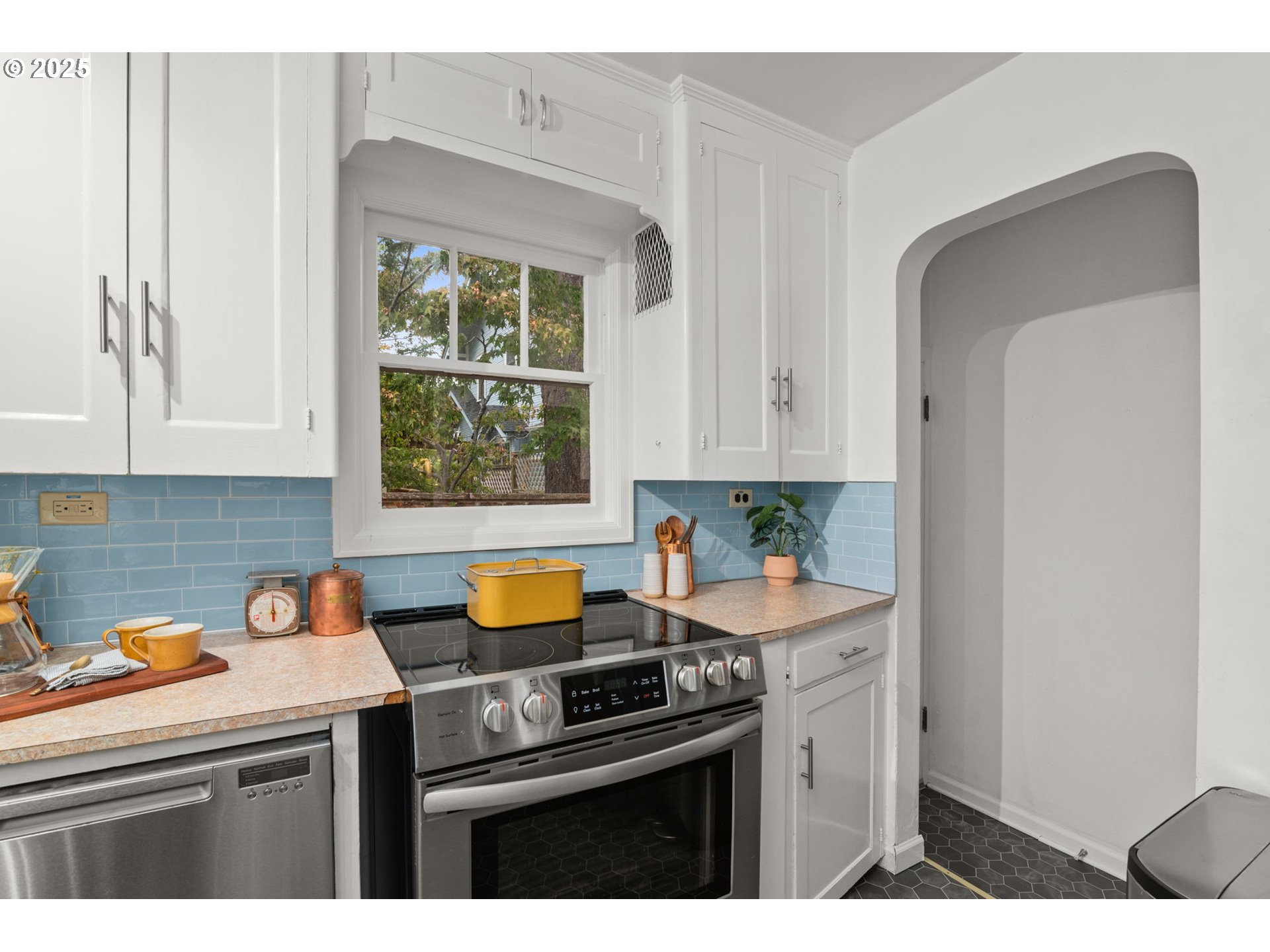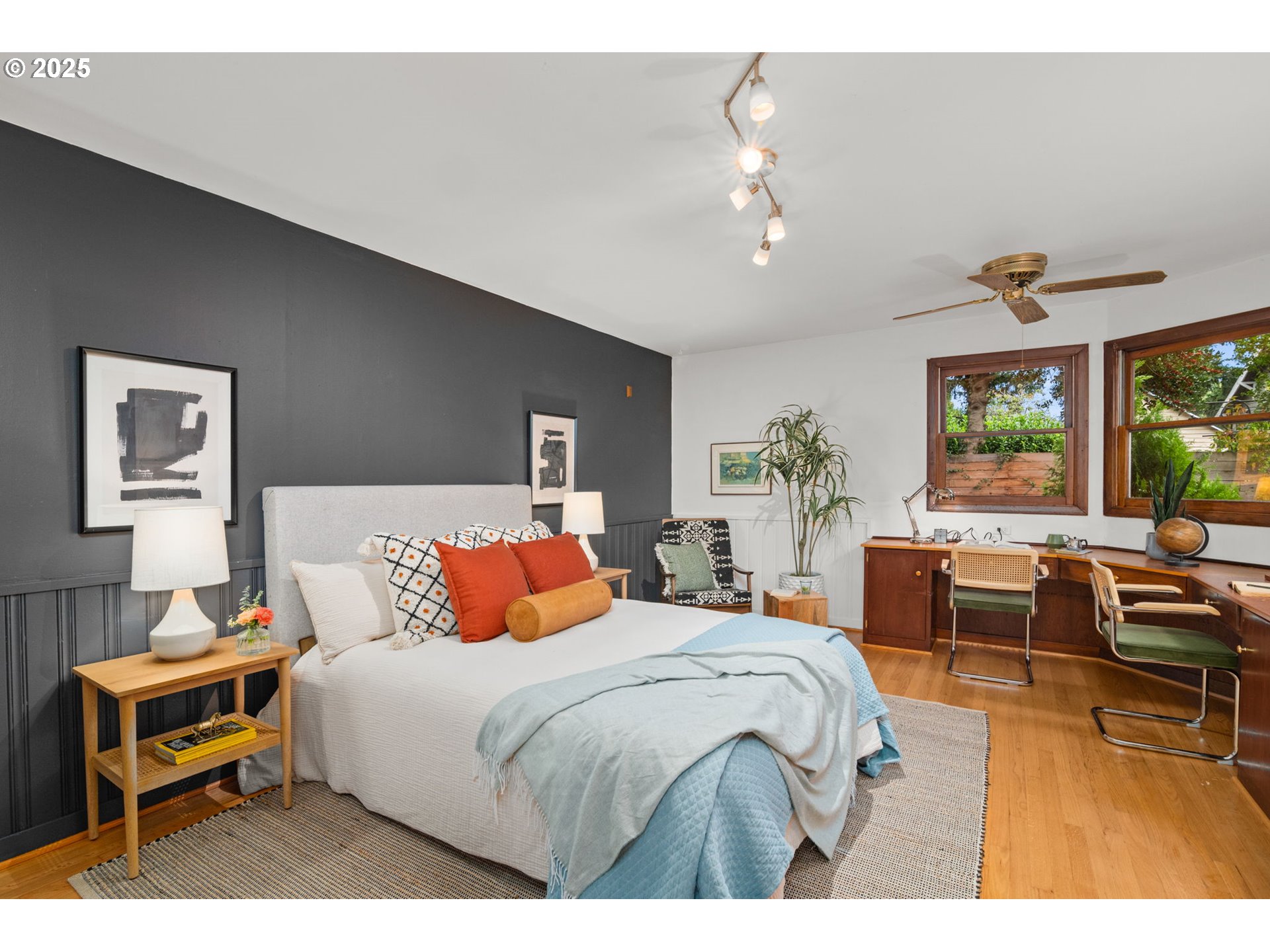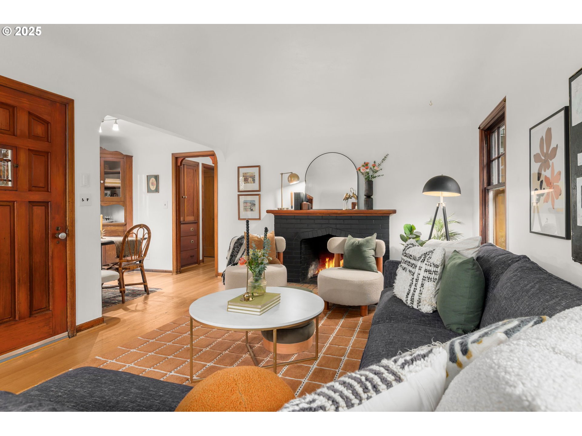 In the heart of Portland’s Mt. Tabor neighborhood, this charming cottage with a Tudor twist offers style, warmth, and walkability. Set above the street for privacy, the home feels bright and airy throughout, with large windows that frame leafy views and fill every room with natural light. Original woodwork, coved ceilings, and custom built-ins showcase timeless craftsmanship, while oak floors add warmth and character. The main level features three bedrooms—including an oversized primary—and a stylish bathroom with high-end fixtures and heated tile floors. The kitchen is bright and efficient, with stainless steel appliances and bay windows overlooking the front yard. Downstairs, the spacious basement includes a cozy family room with a fireplace, a half bath, home gym/flex space, laundry area, and generous storage. Outdoor living is exceptional: the front yard features a covered outdoor kitchen with slate counters and a built-in gas grill, plus a welcoming porch and deck perfect for morning coffee or evening sunsets. Out back, a large covered deck, playhouse, and peaceful park-like setting invite relaxation year-round. With a newer roof, gutters, and furnace, this home is move-in ready and ideally located—just blocks from Mt. Tabor Park, coffee shops, restaurants, and top-rated schools. [Home Energy Score = 3. HES Report at https://rpt.greenbuildingregistry.com/hes/OR10026619]