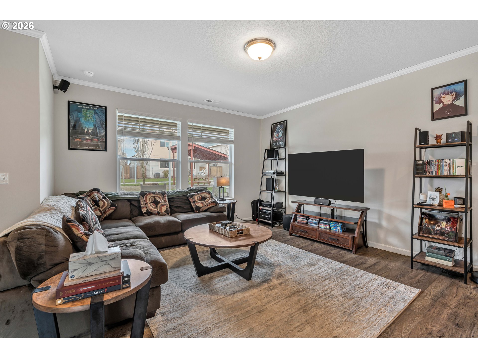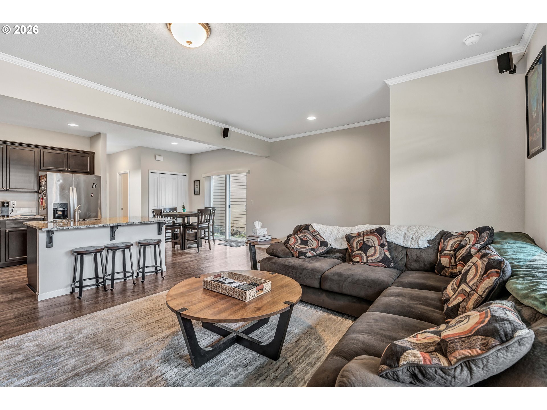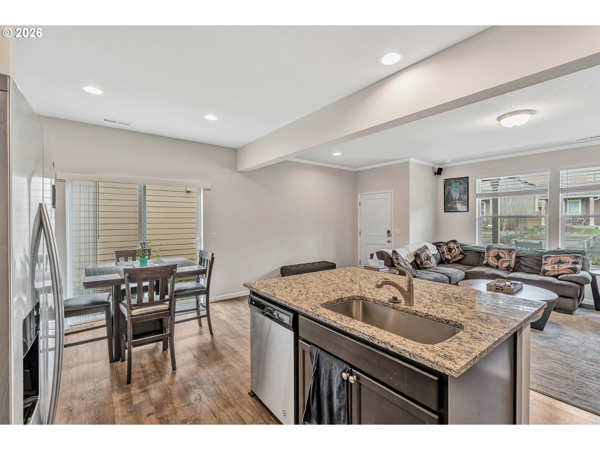 (503) 893-8874Experience comfortable, modern living in this beautiful two-level home featuring 3 bedrooms and 2.5 baths. The lower level boasts an open-concept layout with vinyl flooring, seamlessly connecting the living, dining, and kitchen areas for a bright and spacious feel. The huge kitchen is a chef’s dream, complete with a large island and eat-in bar, granite countertops, and oversized windows that fill the space with natural light. Sliding doors from the dining area open to the backyard, perfect for entertaining, while the convenient laundry room adds functionality.Upstairs, all bedrooms feature wall-to-wall carpet, with the primary suite offering a walk-in closet and ensuite bathroom with double sinks. Outdoor living is enhanced by a charming front porch and a fenced backyard, while energy-conscious buyers will appreciate that the solar panels will be fully paid off at closing. This home perfectly combines style, space, and modern convenience.