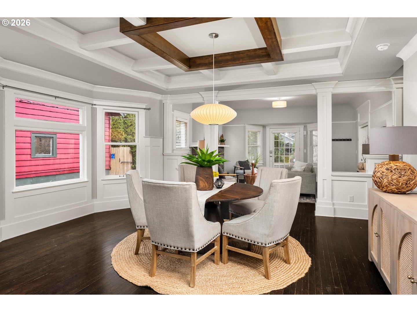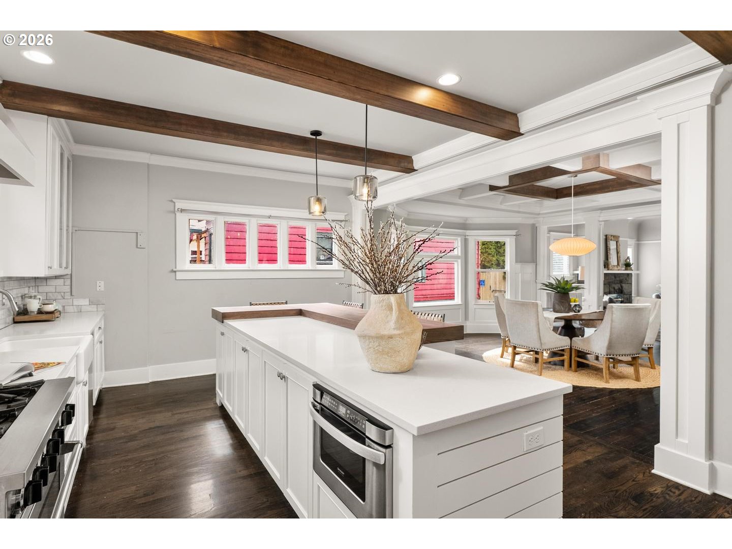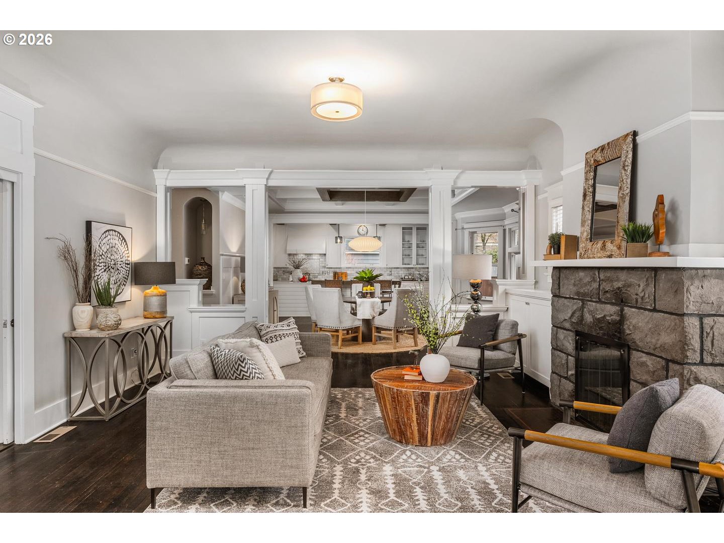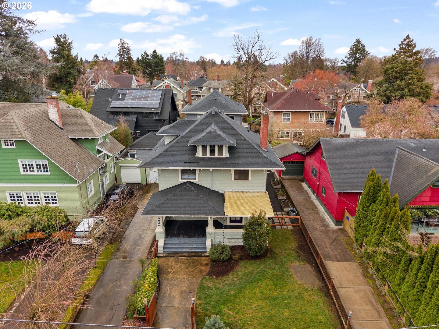 Timeless Irvington charm meets modern comfort at 2216 NE 21st Avenue. This beautifully updated 1907 Craftsman sits on one of Irvington’s picturesque tree-lined streets and blends historic character with thoughtful upgrades throughout. The main level features hardwood floors, original built-ins, and classic box-beam ceilings, creating warm and inviting living spaces. The living and dining rooms flow into an updated chef’s kitchen with marble tile, an eat-in island, and a professional-grade BlueStar range, making it ideal for both everyday living and entertaining.With five bedrooms, four full bathrooms, and multiple flexible living areas, the home offers space for modern lifestyles. The upper level includes a spacious primary suite with private bath along with additional bedrooms and a full bathroom. The finished attic provides a versatile space perfect for an office, studio, or bonus room. The fully finished lower level includes a family room, bedroom, full bathroom, laundry, and its own exterior entrance—offering great flexibility for guests, extended living, or potential separate quarters. Outside, enjoy a welcoming front porch and yard with mature trees, including established apple trees along the driveway. Updates include: new interior paint, new multi-zone HVAC, tankless water heater, updated kitchen/bathrooms. Located just blocks from restaurants, cafés, parks, and less than a block from the Irvington Club, this home offers excellent walkability in one of Portland’s most sought-after neighborhoods. A rare opportunity to own a classic Irvington Craftsman with space, character, and an unbeatable location. [Home Energy Score = 3. HES Report at https://rpt.greenbuildingregistry.com/hes/OR10215422]