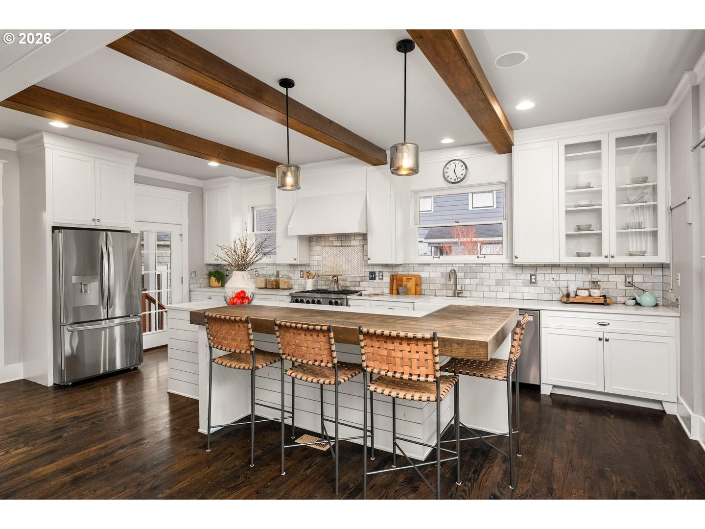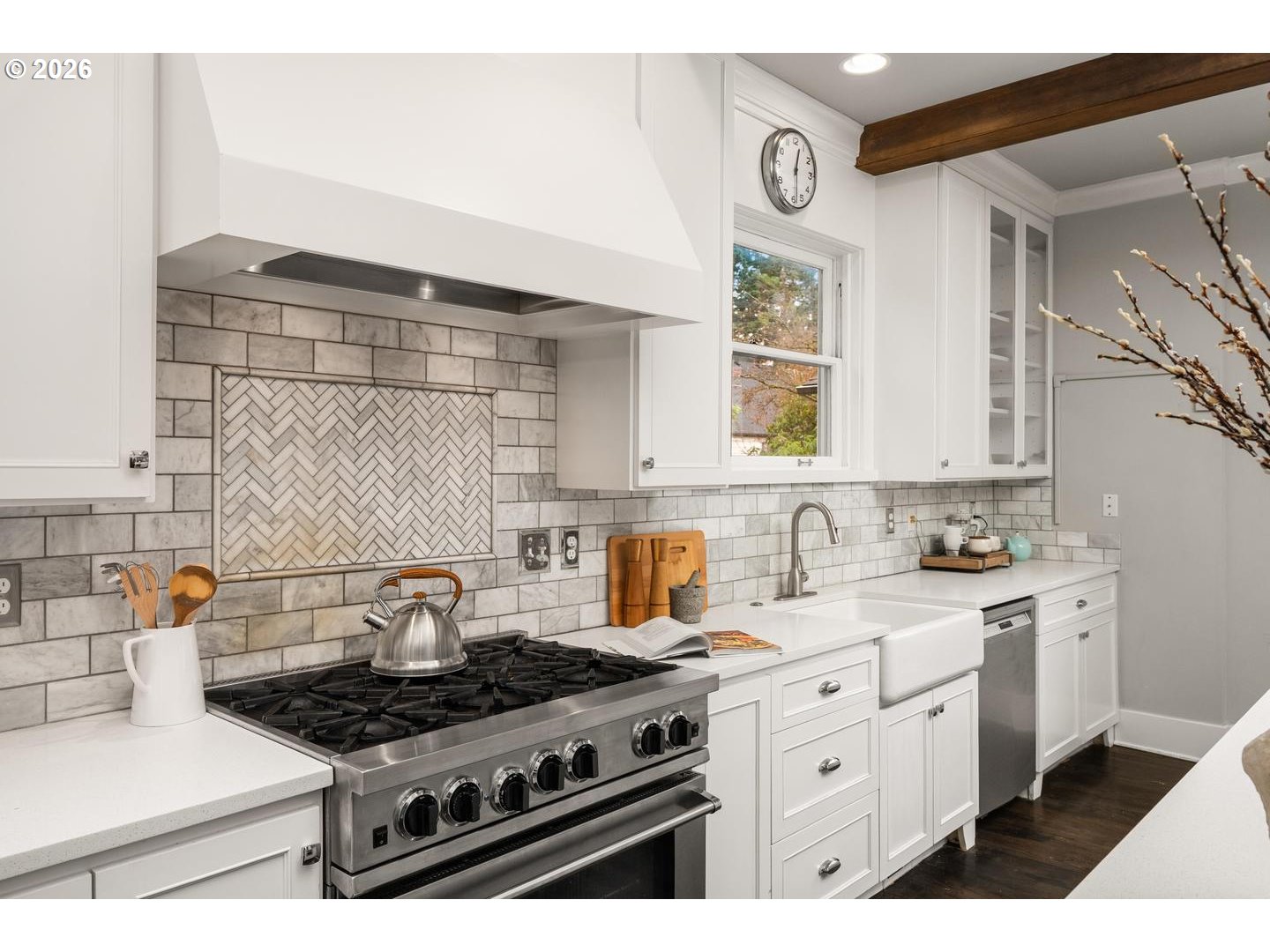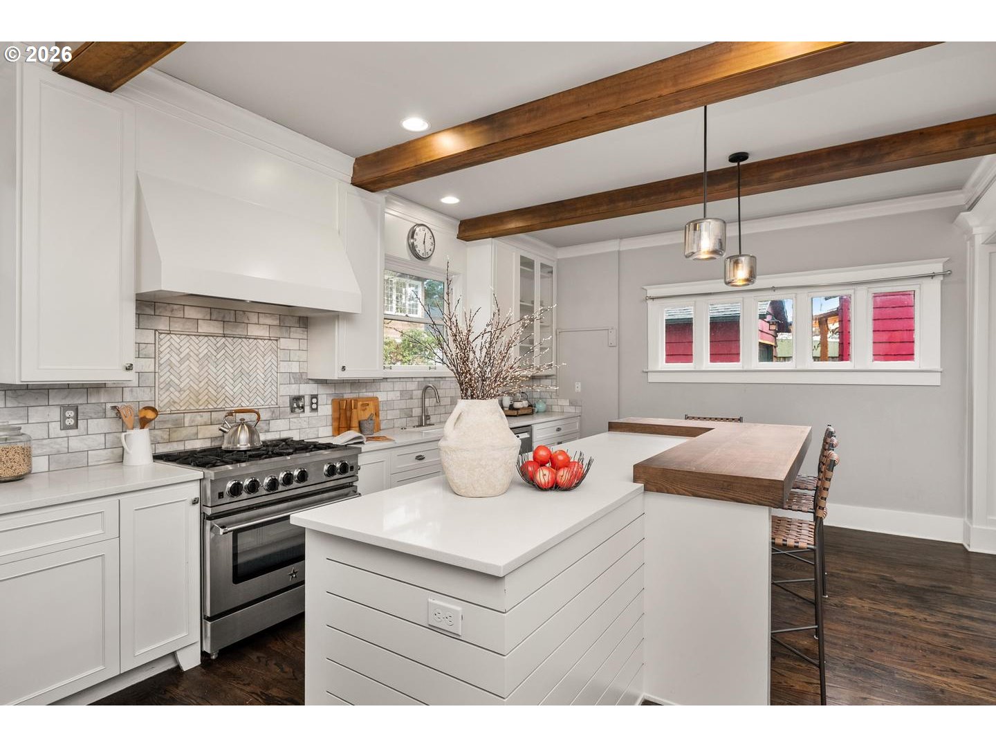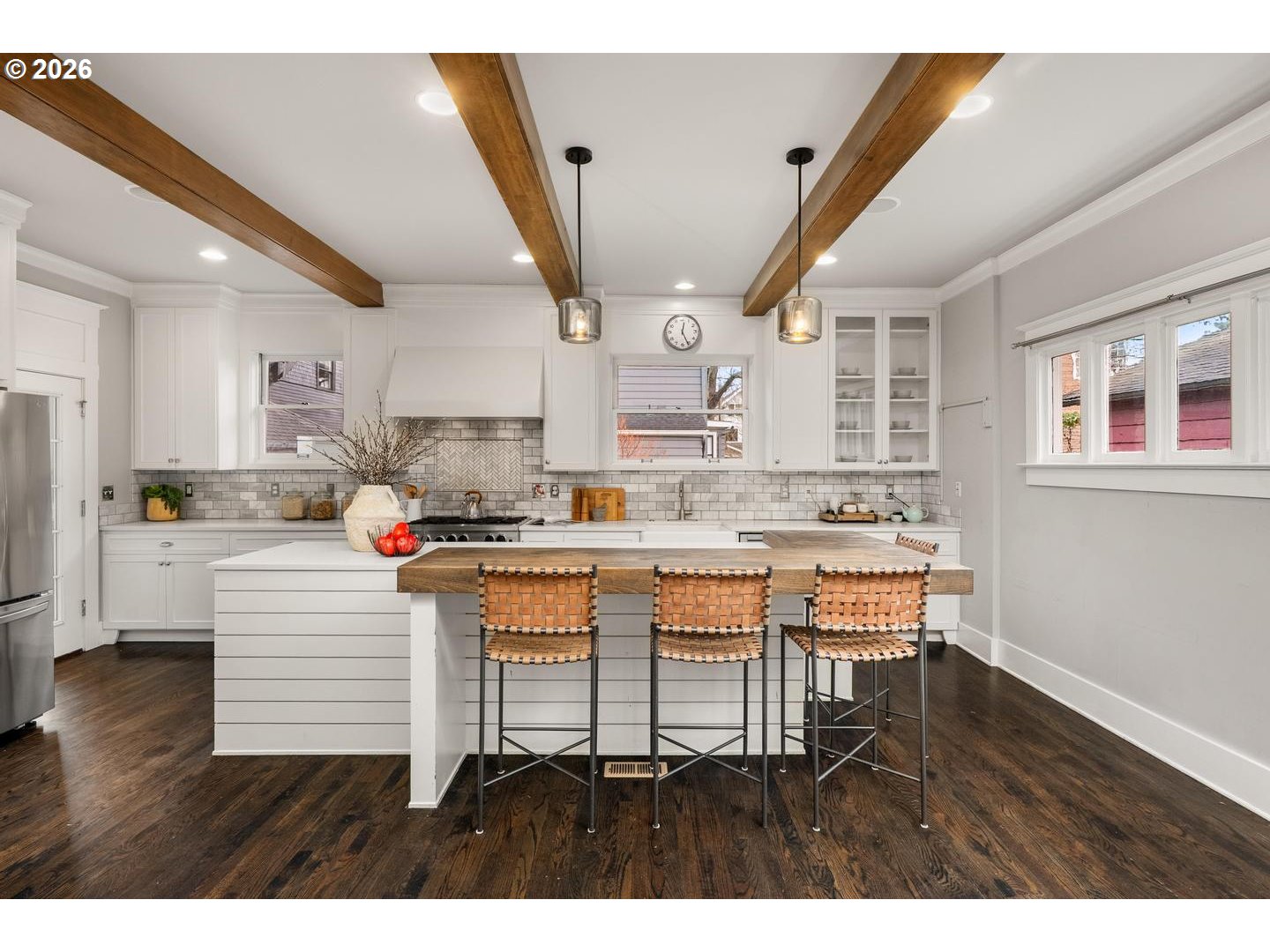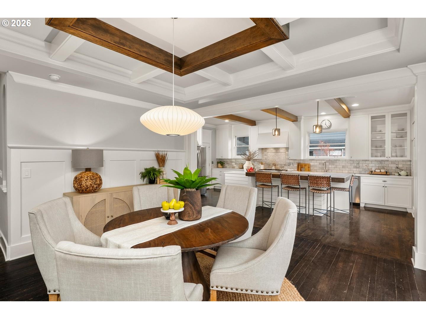 Timeless Irvington charm meets modern comfort at 2216 NE 21st Avenue. This beautifully updated 1907 Craftsman sits on one of Irvington’s picturesque tree-lined streets and blends historic character with thoughtful upgrades throughout. The main level features hardwood floors, original built-ins, and classic box-beam ceilings, creating warm and inviting living spaces. The living and dining rooms flow into an updated chef’s kitchen with marble tile, an eat-in island, and a professional-grade BlueStar range, making it ideal for both everyday living and entertaining.With five bedrooms, four full bathrooms, and multiple flexible living areas, the home offers space for modern lifestyles. The upper level includes a spacious primary suite with private bath along with additional bedrooms and a full bathroom. The finished attic provides a versatile space perfect for an office, studio, or bonus room. The fully finished lower level includes a family room, bedroom, full bathroom, laundry, and its own exterior entrance—offering great flexibility for guests, extended living, or potential separate quarters. Outside, enjoy a welcoming front porch and yard with mature trees, including established apple trees along the driveway. Updates include: new interior paint, new multi-zone HVAC, tankless water heater, updated kitchen/bathrooms. Located just blocks from restaurants, cafés, parks, and less than a block from the Irvington Club, this home offers excellent walkability in one of Portland’s most sought-after neighborhoods. A rare opportunity to own a classic Irvington Craftsman with space, character, and an unbeatable location. [Home Energy Score = 3. HES Report at https://rpt.greenbuildingregistry.com/hes/OR10215422]