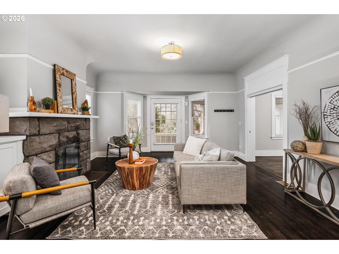 LivingBayWindow, Fireplace, HardwoodFloors