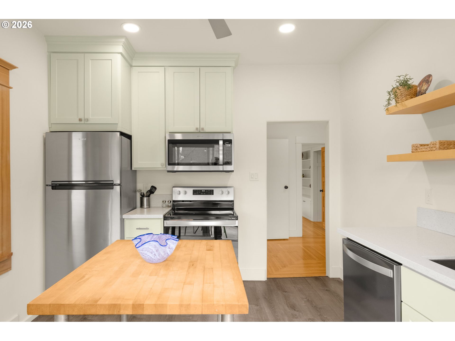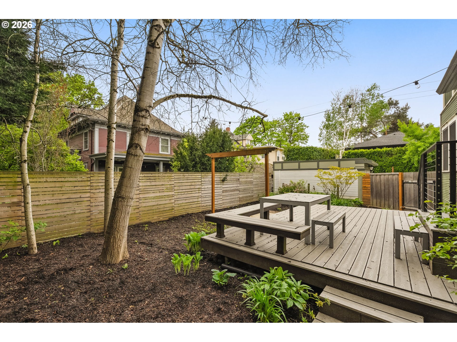 Tucked on a tree-lined street in Sullivan's Gulch, 2220 NE Clackamas St is the kind of Portland home you don't stumble across every day. Step through the front door into a welcoming foyer that flows naturally into a large living room and generous dining room — the kind of layout that just makes sense. Light pours in through large windows throughout, and the gas fireplace on the main level makes the whole floor feel like exactly where you want to be.With a walk score of 92, NE Broadway's restaurants, shops, and cafes are genuinely just a few blocks away. This is a neighborhood you actually live in, not just sleep in.Original oak floors with inlaid detail grace the main level, setting the tone for the rest of the home. Six bedrooms and three fully remodeled bathrooms give everyone room to breathe. The generous main-level bedroom works beautifully as a primary suite. Upstairs, three more well-sized bedrooms, a second kitchen, and laundry open onto a private balcony with lovely views. The fourth floor offers a versatile bonus/bedroom room, and the finished basement rounds things out with a legal bedroom and remodeled bath.Out back, a newer deck anchors a well designed backyard that is as easy to enjoy as it is to maintain. The front yard is equally tidy — manicured, low-maintenance, and welcoming from the moment you pull up.If you've been waiting for a Portland home with real size, real charm, and a location you'll never want to leave — this is the one.