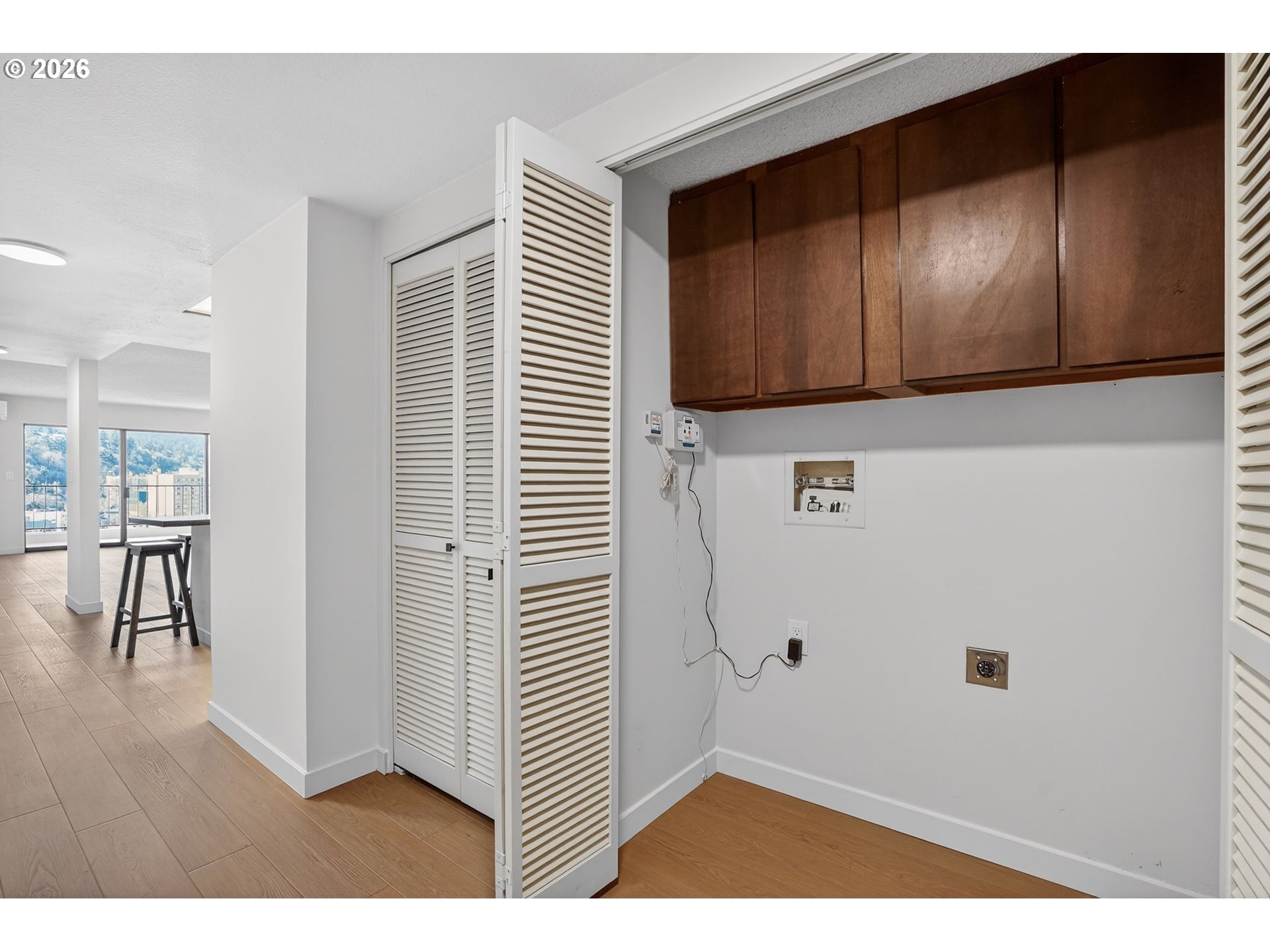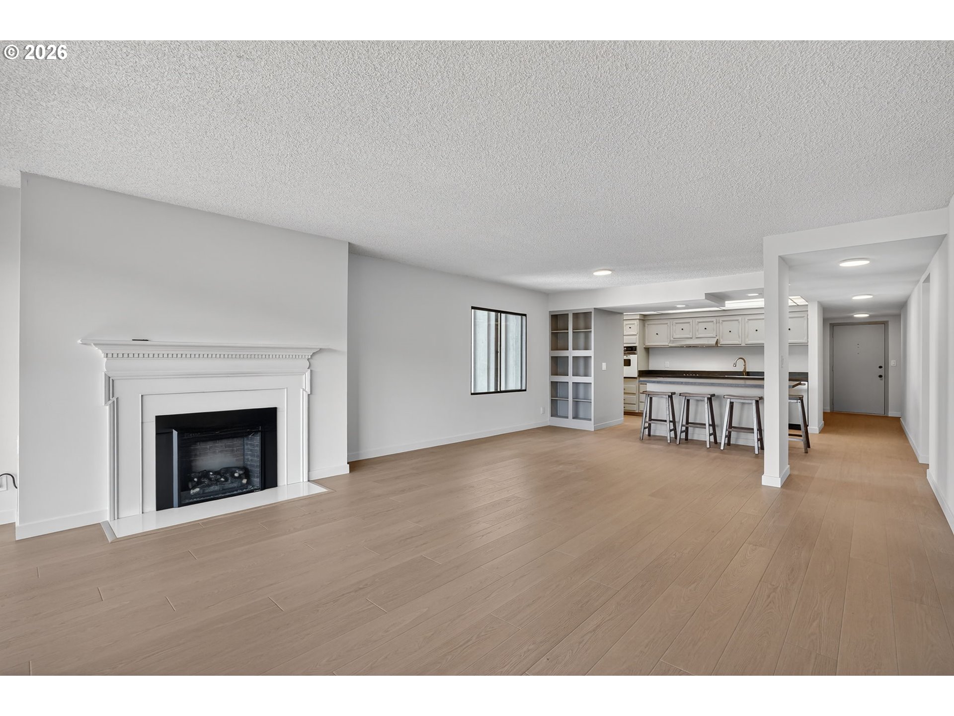 This two bedroom and one and a half bath condo is centrally located in South Downtown Portland. This bight and light condo with a great room concept has been recently refreshed with all new Luxury Plank vinyl flooring thoughout, new paint and baseboards. Kitchen has been opened up to Living and dinning area to create an open and light floorplan great for entertaining. Views of the Willamette River and Mt. St Helens from the dining area. Twinkling City lights and West hills views from the living room and the covered balcony great to enjoy peaceful sunsets. . New cozy electric fireplace, new hot water heater. Primary bedroom with bath right across the hall. The second bedroom is versatile and can serve as a guest room, home office, or cozy den. A convenient half bath completes the layout, ideal for guests. This condo also offers access to fantastic amenities, including 2 workout rooms, 2 community lounges. Enjoy the indoor saltwater pool with jacuzzi and sauna or take dip in the outdoor pool during summer months. 53 Guest parking spaces unheard of downtown. Light rail and bus line outside your door, the street car is one block north. Stroll the Halprin sequence to dining, and entertainment just steps away, you’ll enjoy all that city living has to offer. Don’t miss your chance to own this stylish urban retreat! Close to OHSU and Portland state