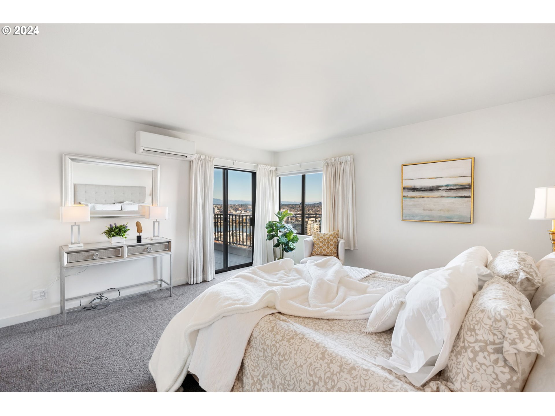 (503) 893-8874This beautifully remodeled condo showcases an open and airy layout that perfectly complements its breathtaking panoramic views of Mt. Hood, Mt. St. Helens, and the Willamette River. Whether it's the twinkling city lights at night or the serene sunrises in the morning, this property offers a stunning backdrop for daily living. The total remodel features a gourmet kitchen with custom cabinets and stainless steel appliances, an eating bar and family room with new slider that opens to large west facing deck with city and west hills views. The spacious living and dining areas seamlessly transition to an expansive east-facing deck, ideal for entertaining or simply enjoying the incredible mountain and river views. The primary suite is a true retreat, offering deck access through a private slider, a walk-in closet, and a beautifully renovated bath complete with a walk-in shower. The second bedroom is equally inviting, equipped with its own west-facing balcony and a dedicated remodeled bath.This condo's amenities extend beyond its walls. Residents can enjoy access to a brand new saltwater indoor pool, jacuzzi, and updated locker rooms in the Sivers Center. HOA includes two community rooms leading to patios and pools designed for social gatherings, plus workout facilities, 24 hour concierge and 53 guest parking spaces unheard of downtown, conveniently located on the Max line and bus routes, just a short walk from the streetcar one block north, close to OHSU and Portland State. Stroll the Halprin Park Sequence to the Downtown Cultural center or RiverPlace Esplanade shops and restaurants. Vibrant city living at its best.